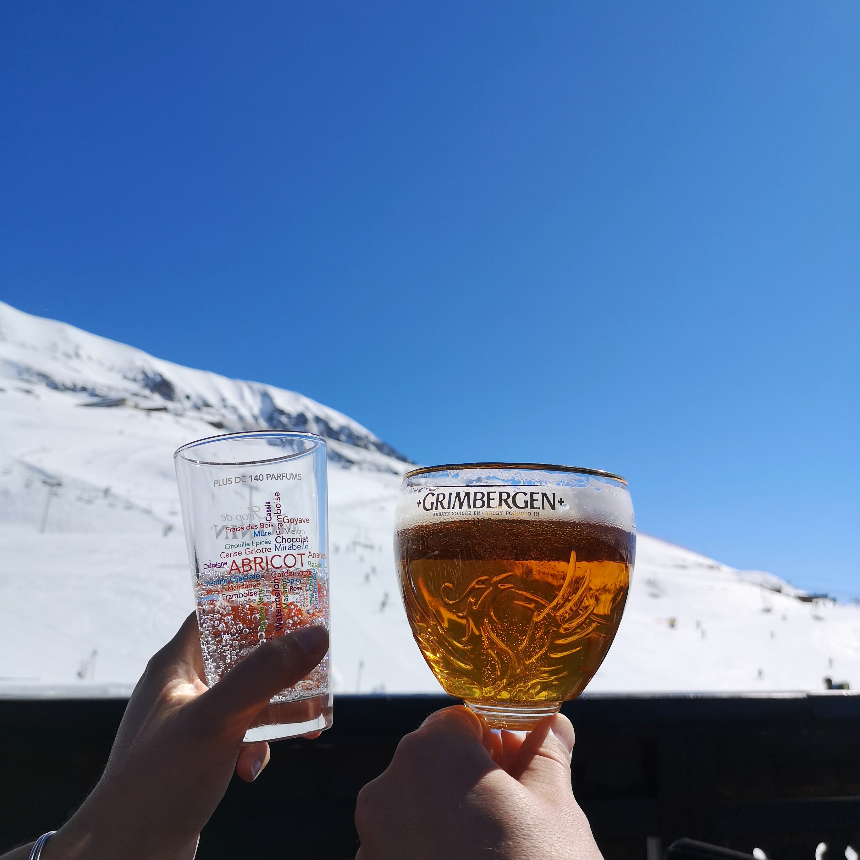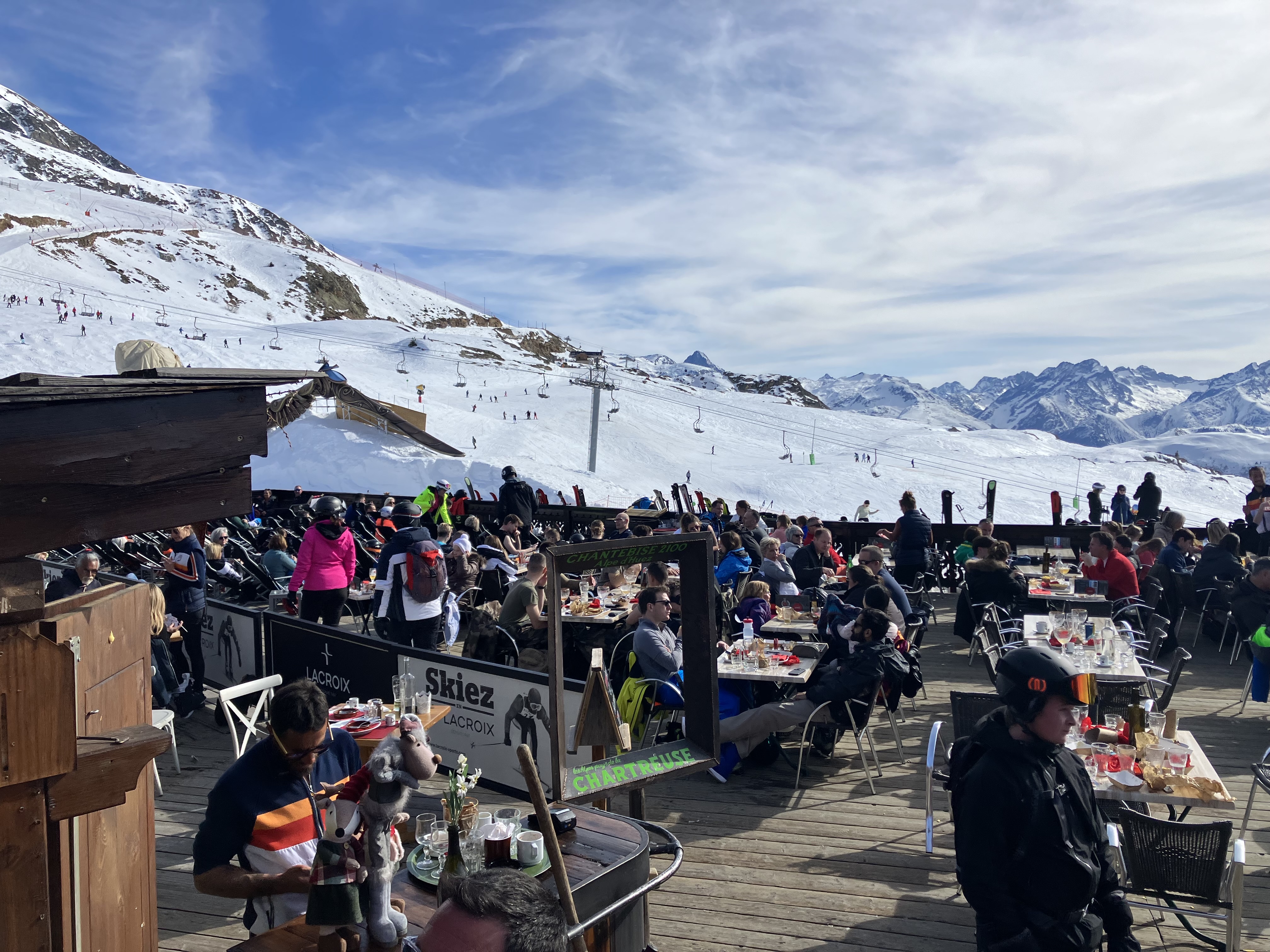 Super de s'asseoir au soleil sur les transats en buvant une bière après un peu de ski. Ils viennent prendre votre commande, donc pas besoin d'aller au bar. À moins que vous vouliez un jeton pour les toilettes qui se trouvent en bas. Prenez-en un au bar :-)