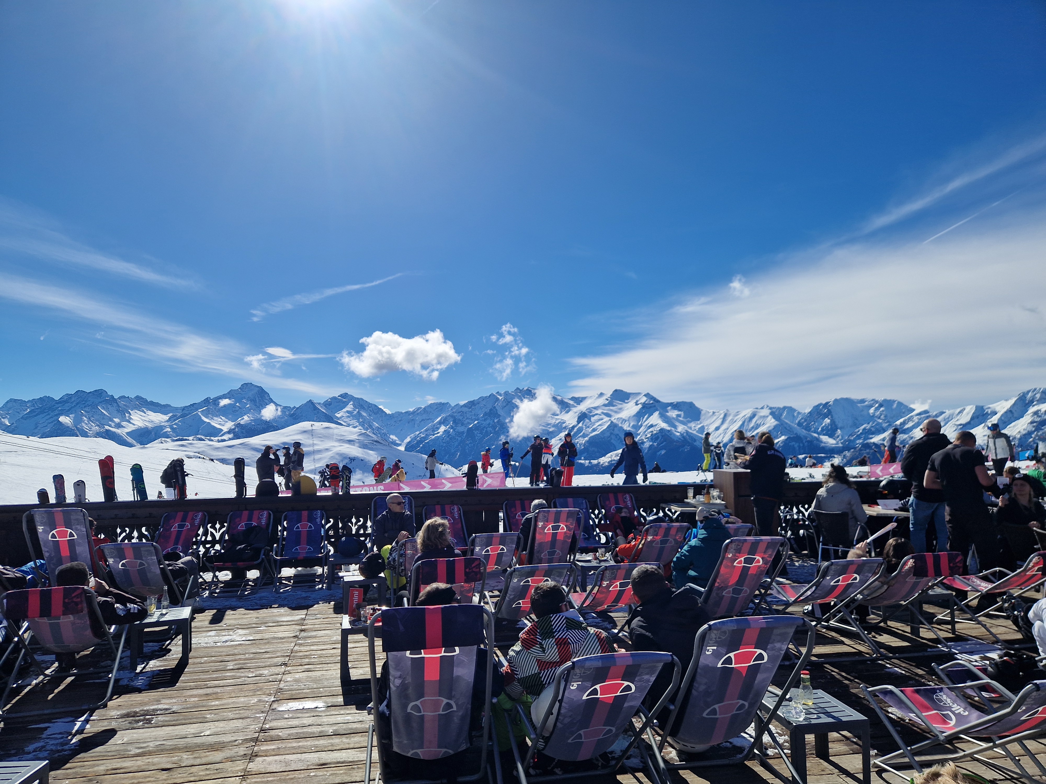 Très bon emplacement. Moins cher qu'à la cabane et meilleur service. Transat très confortable en terrasse. Juste dommage la rembarde en bois qui cache la magnifique vue sur les pistes. Sinon très bien 👏