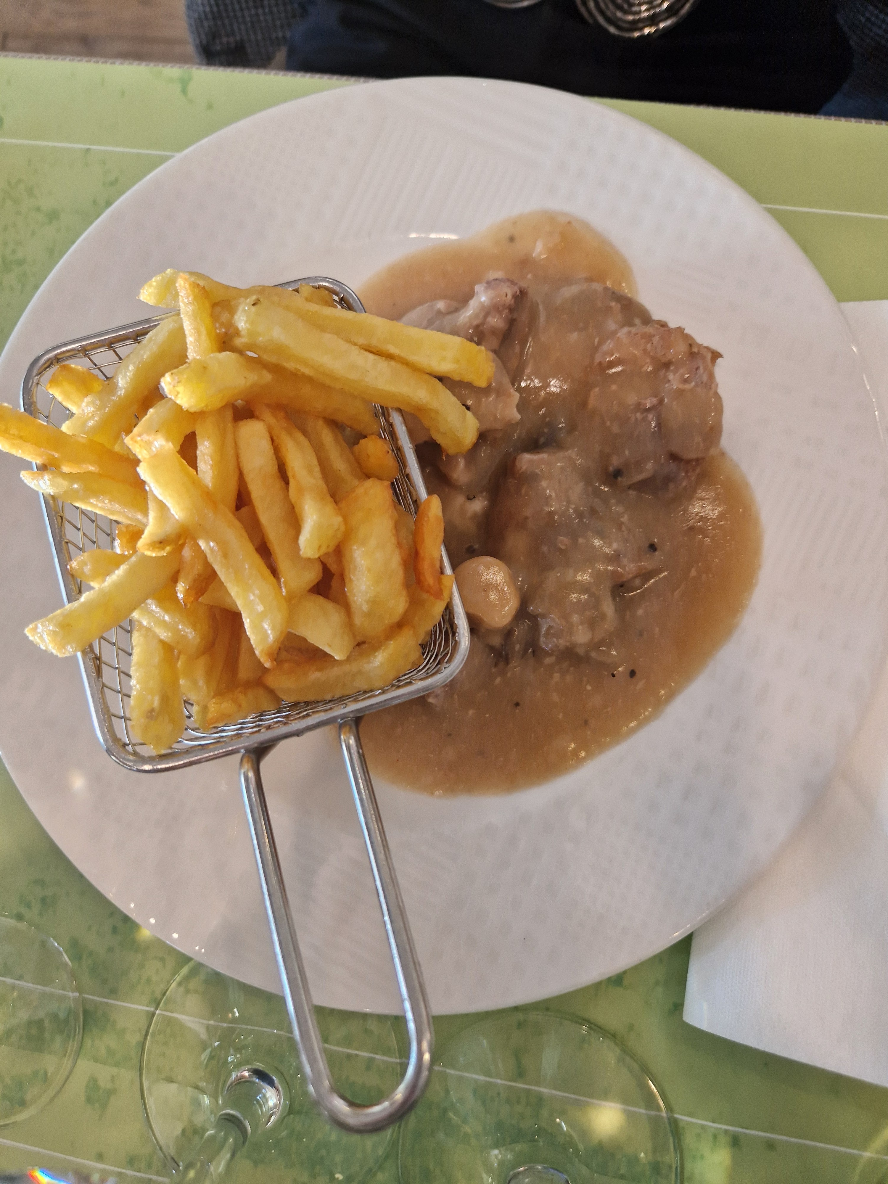 Frites presque froide, escalope de poulet sauce pas appetissante. Nous ne retournerons pas dans ce restaurant.