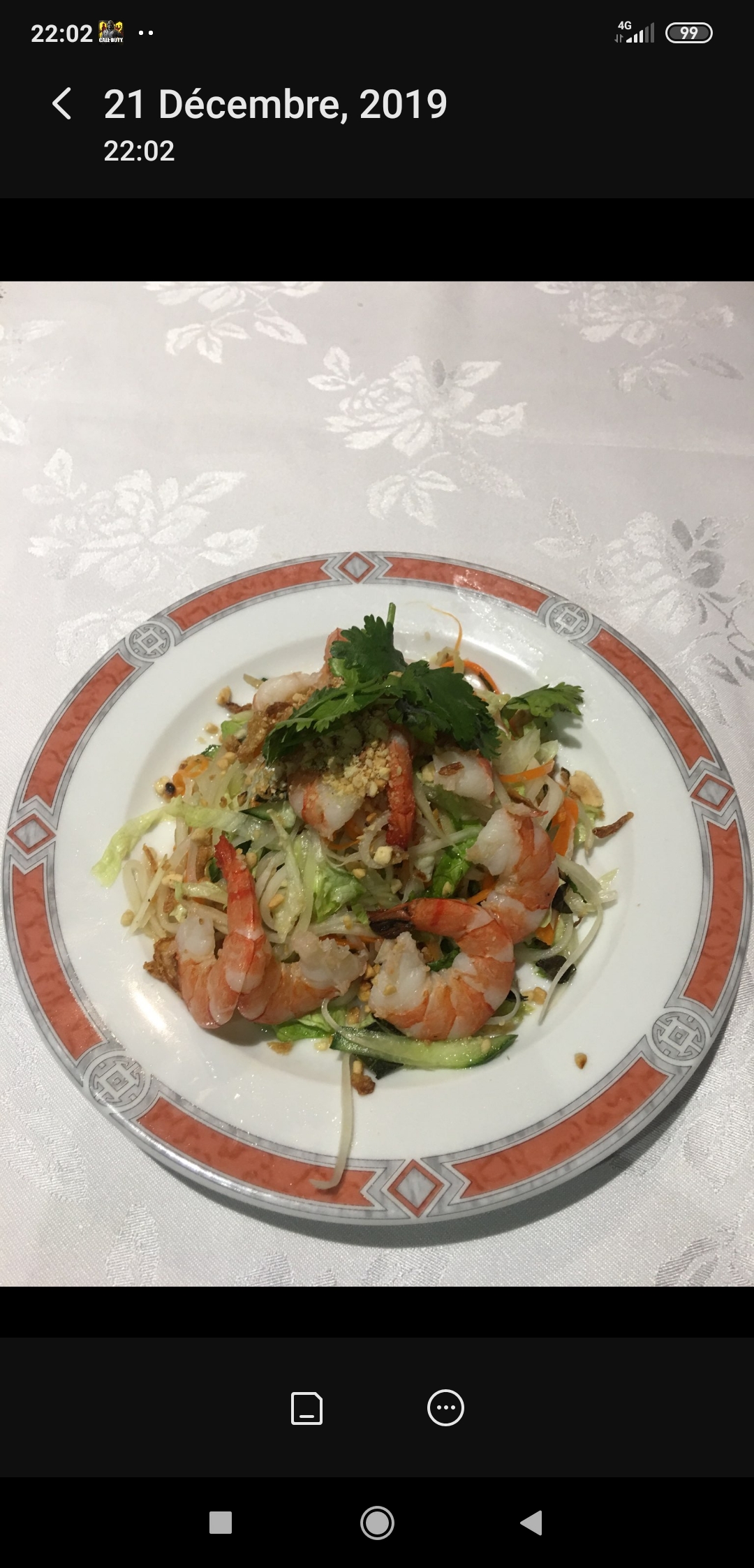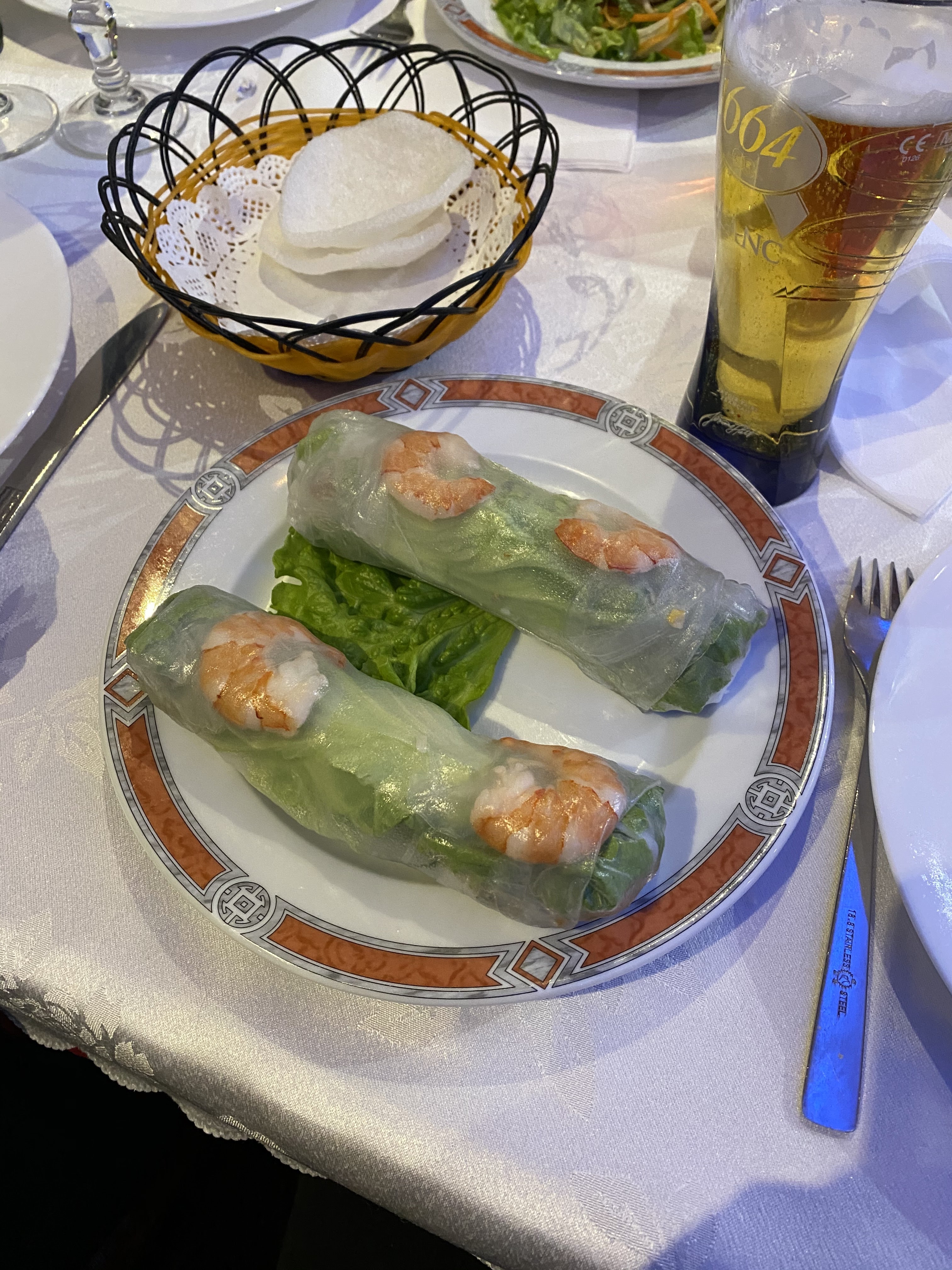 Nourriture pas assaisonné. Les beignets de crevettes et les nems avait un arrière goût d'huile déjà utilisé. Les beignets, le boeuf Luc lac, les nouilles fruits de mer n'avaient aucun goût ni les nems. Le prix est exorbitant 40€20 pour une nourriture très fade. Ils sont très radin en sauce pour les nems et beignets.