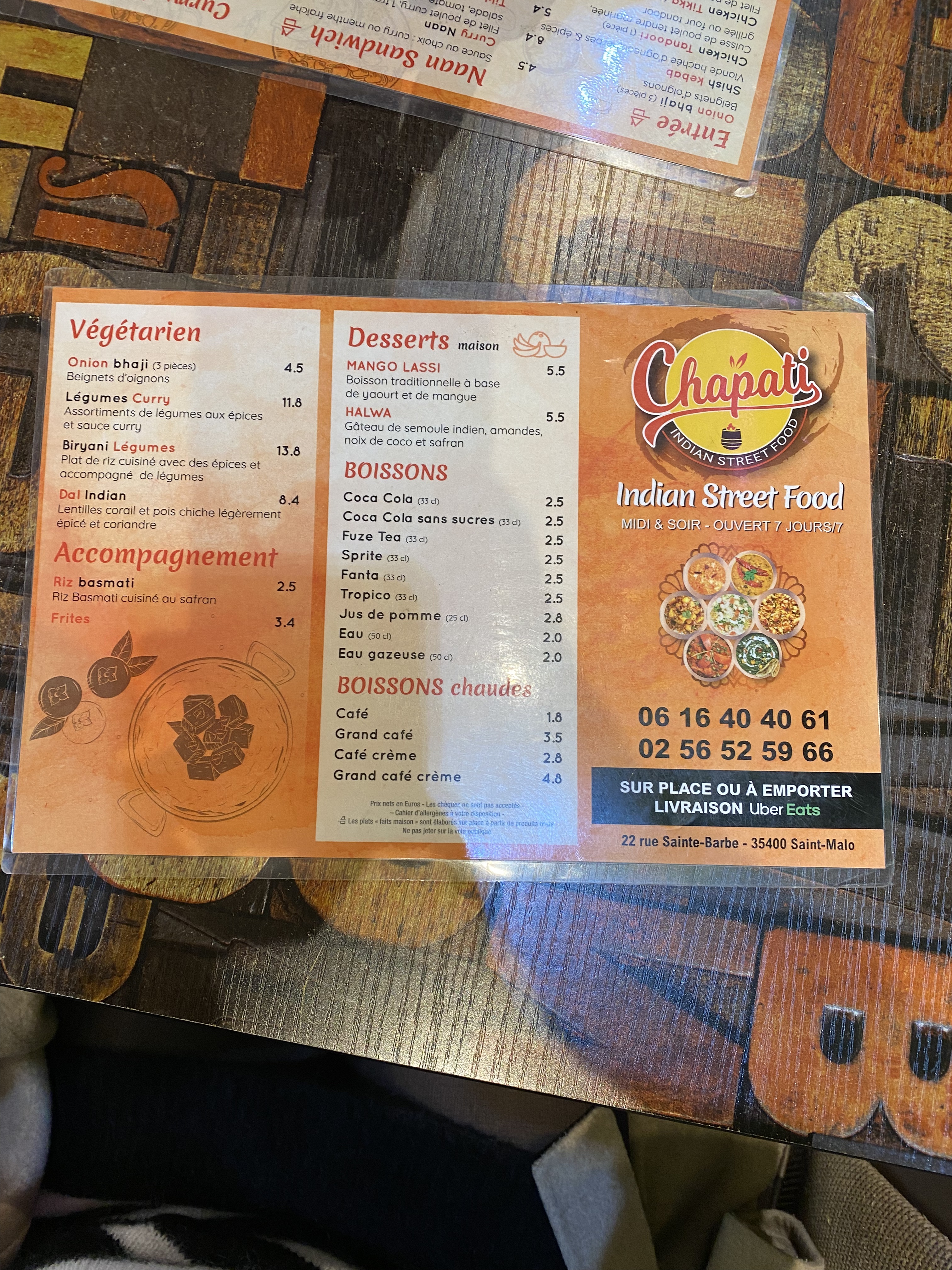Très bon restaurant indien à Saint Malo🫶de reviendra