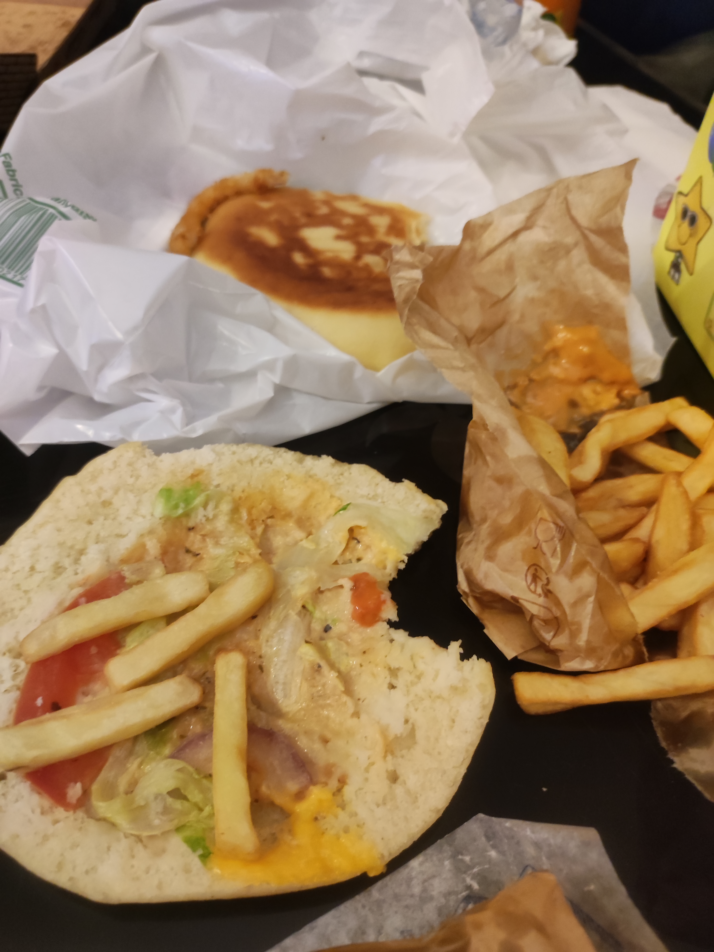 Bon 4 étoiles pasque Helass on a oublié la viande dans mon sandwich après je peu comprendre fin de service etc… 😭 C’est tombé sur moi lol je l’accepte. Mais bon c’est quand même très bon je pense qu’avec la viande ça aurait été parfait !