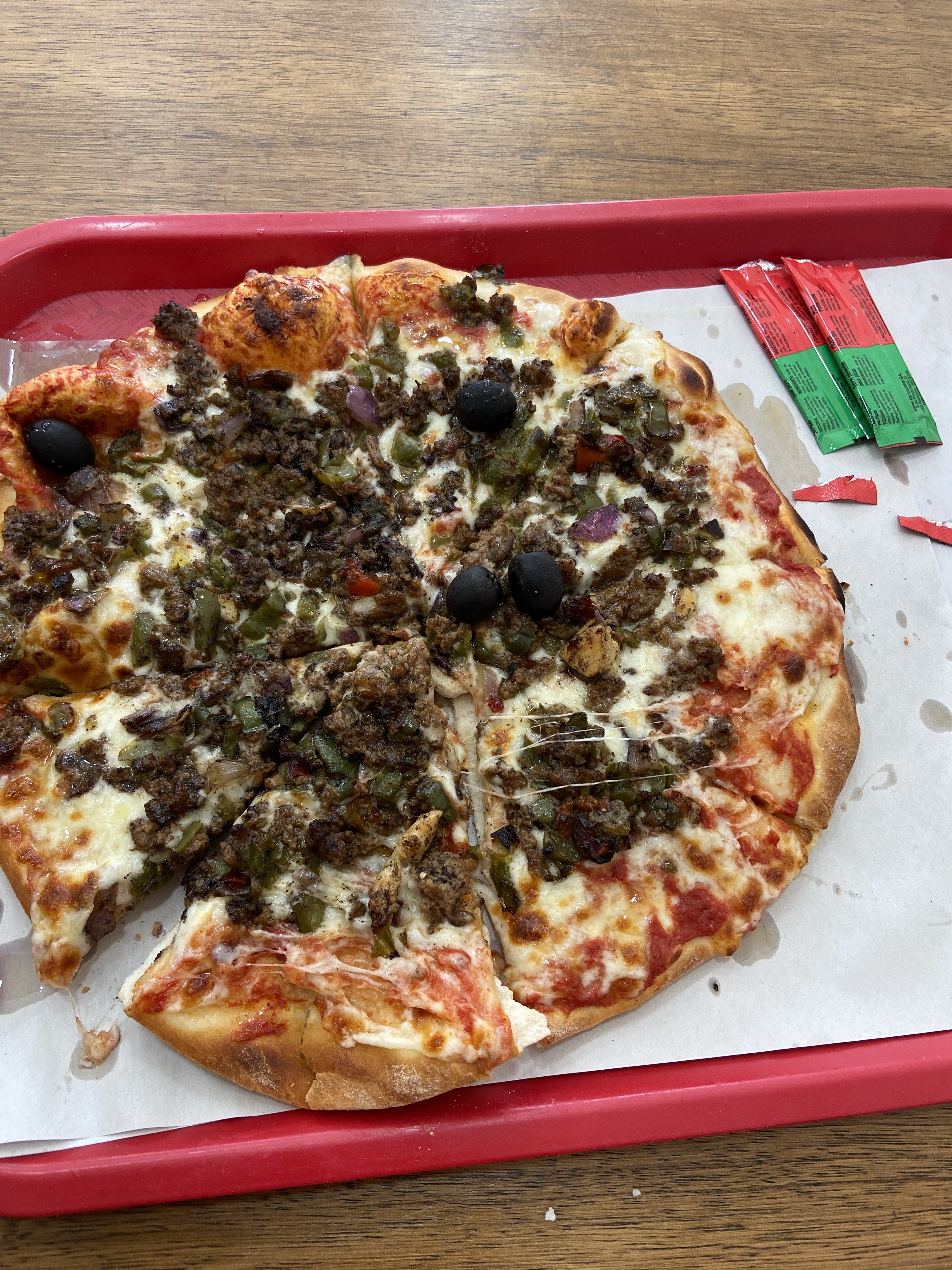 Un commande qui a mis 2h05min pour arriver. ( sans nous appeler une fois c'était nous qui relançons notre commande ). Un burger arrive avec des cornichons alors que nous avons demandé sans.. Un fanta orange au lieu d’un fanta citron et biensur.. Aucun geste commercial.