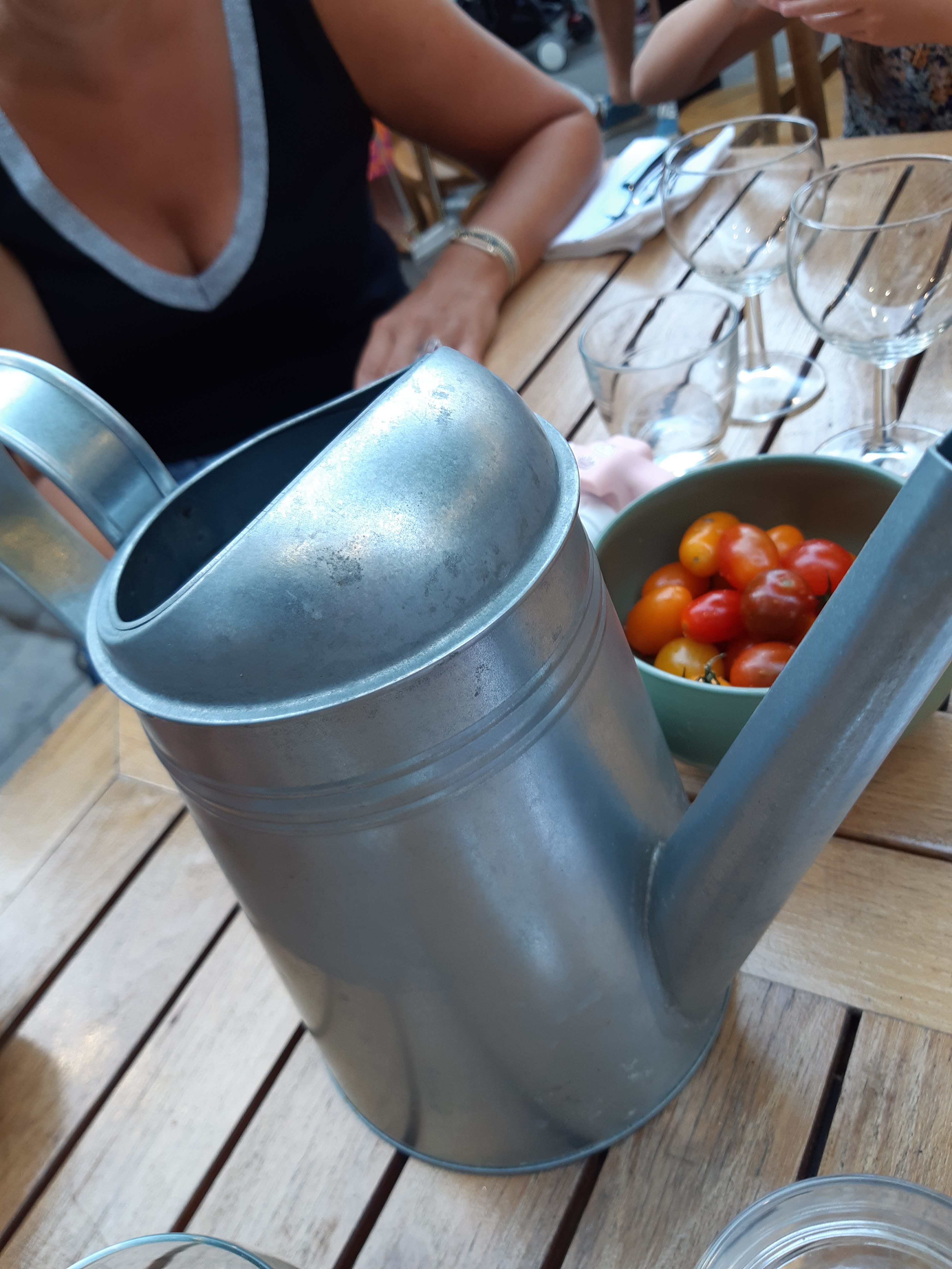 Un petit restaurant atypique et qui a du charme, une terrasse agréable. Le pichet d'eau qui est un arrosoir ça surprend!!!!! Le Rinquinquin (l'apéritif) est très bon et l'aïoli provençal une tuerie!!!!! Sans oublier le clafoutis aux cerises!!!!!! L'intérieur du restaurant est superbe également.