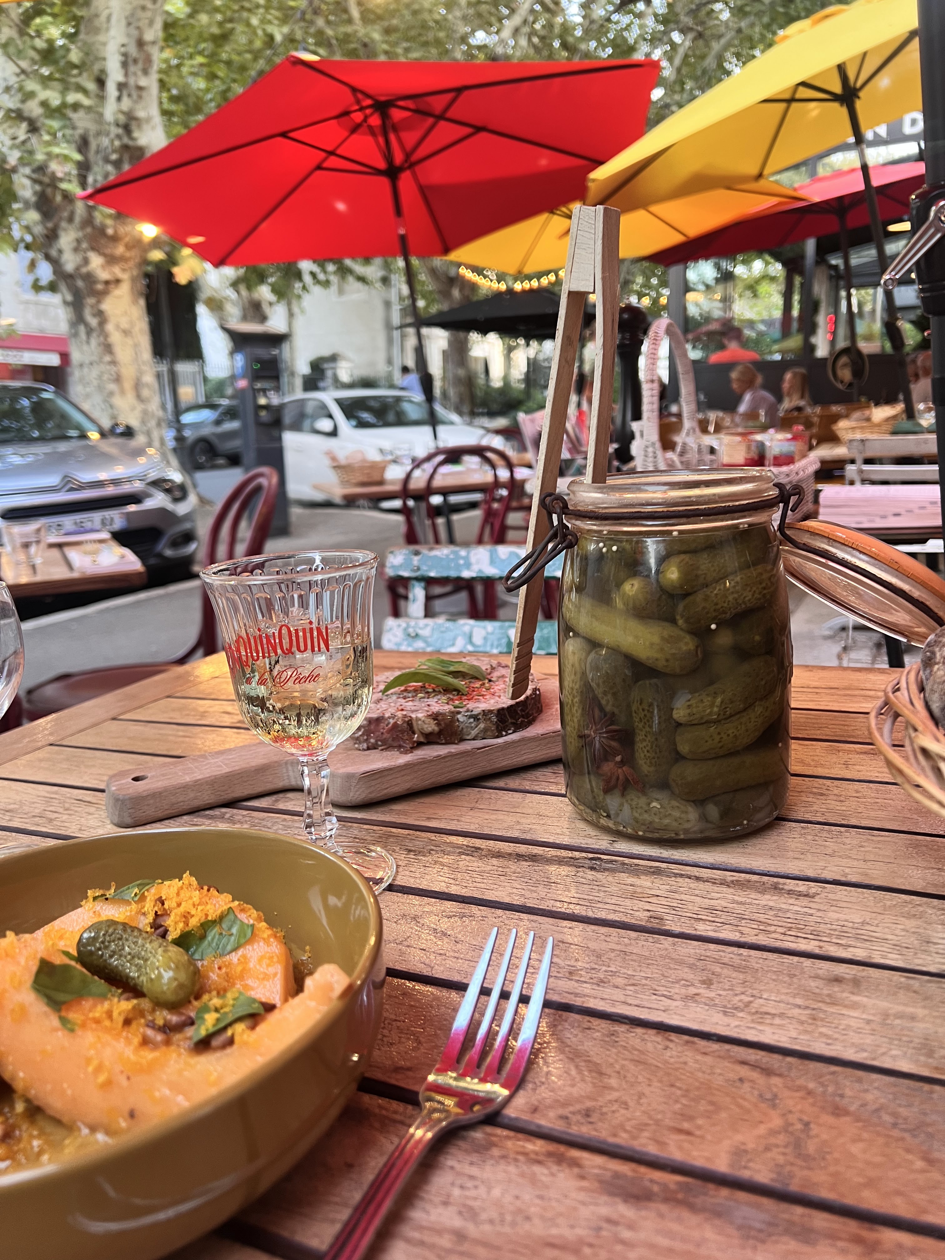 Petit bistrot provençal super cozy, que ce soit en terrasse ou à l'intérieur. Une cuisine locale et originale. Des ingrédients locaux, ça fait plaisir! Le menu change régulièrement, c'est toujours un plaisir de découvrir les nouveaux plats du jour. Le pain fait à l'ancienne pour la petite touche parfaite. Des serveurs au petits soins, que dire de plus je mettrais 6 étoiles si je pouvais ;)
