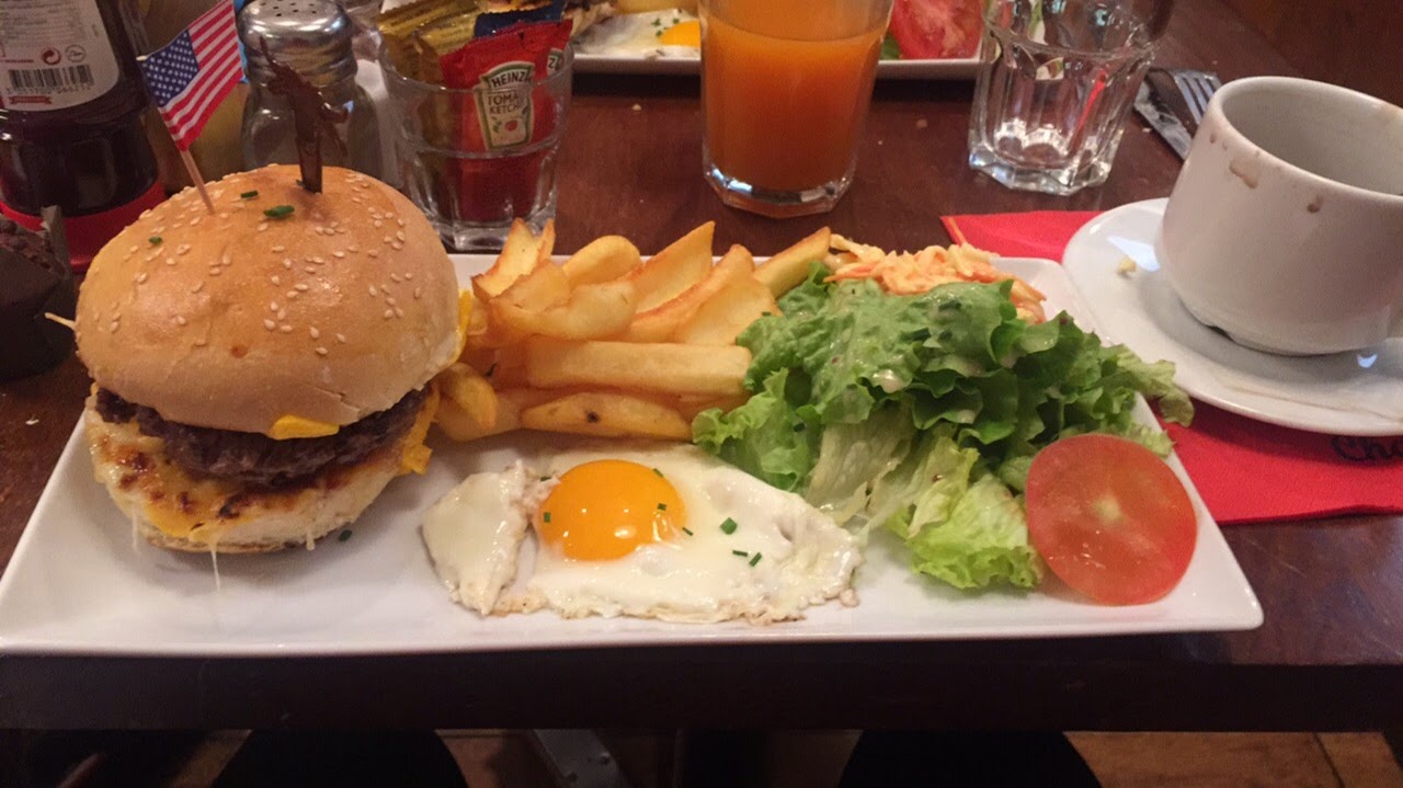 Bon Burger. Les salades un peu chiche. Bonne viande. Service rapide. Les desserts ne sont pas trop chers (5 euros) en tout à midi.