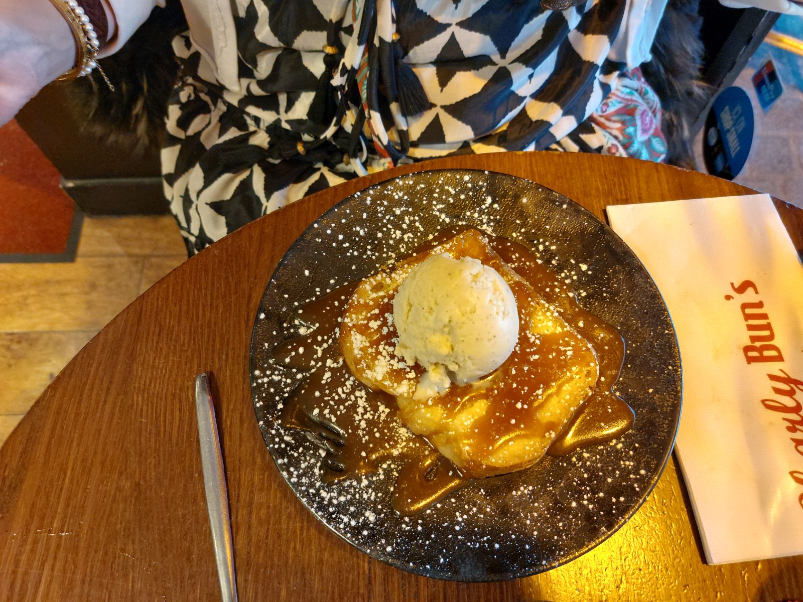J y suis allée un dimanche pour bruncher La formule est à 30€. Le service y est agréable Pour le plat pour avez le choix entre un Burger un bagel des oeufs brouillés ou des oeufs benedicte. Et le buffet sucre est illimité Le buffet sucre est excellent. Les plats sont plus décevants On regrette aussi le manque de jus frais Malgré cela le charly buns reste une adresse agréable pour bruncher en ter asse lorsqu il fait beau