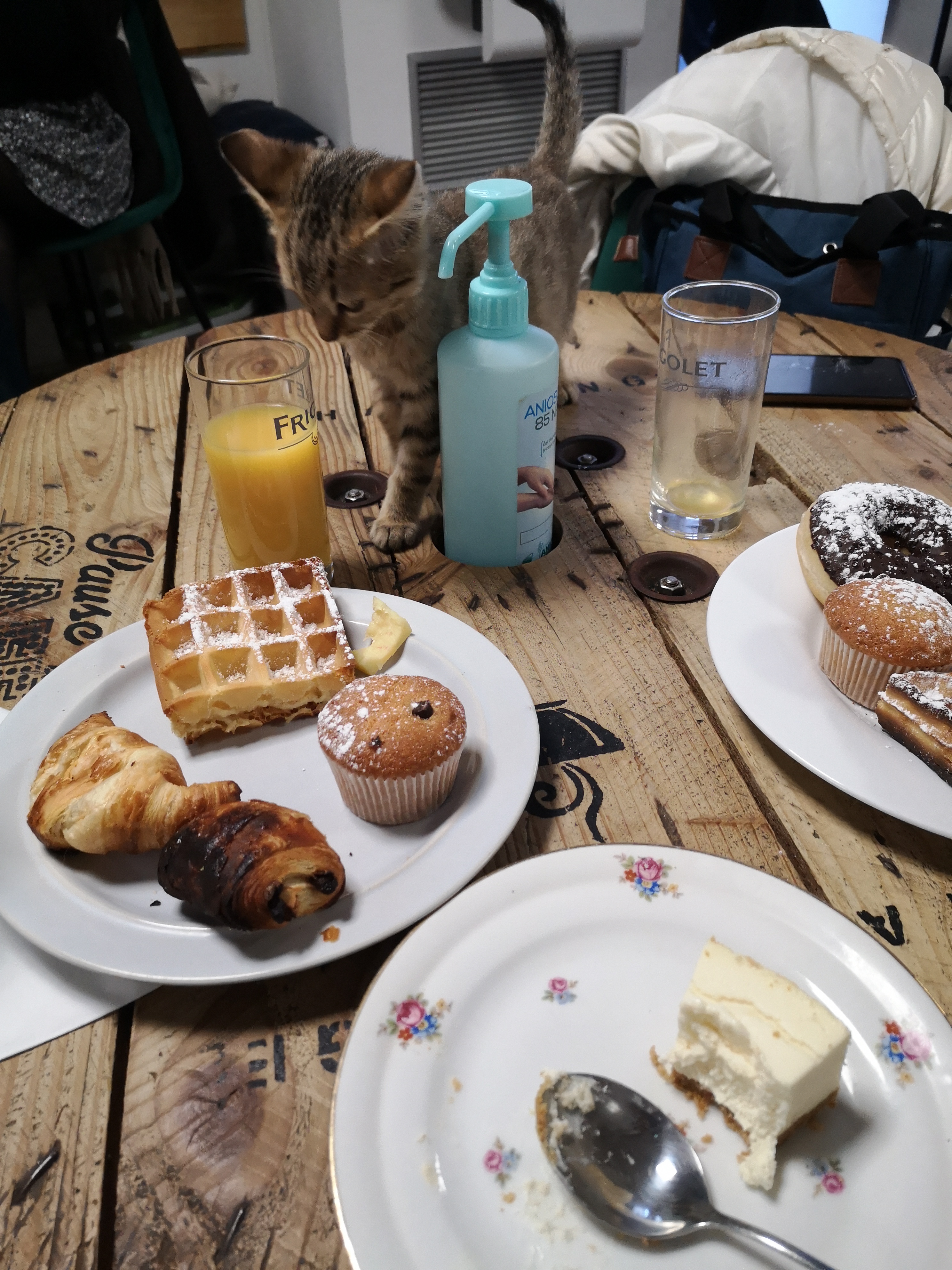 Petit brunch du dimanche matin...très agréable...très copieux...nous avons passé un très bon moment...établissement cosy ou les chats sont Rois...nous reviendrons avec grand plaisir bruncher en compagnie des minous ....!!! Bonne continuation à toute l'équipe...!!!