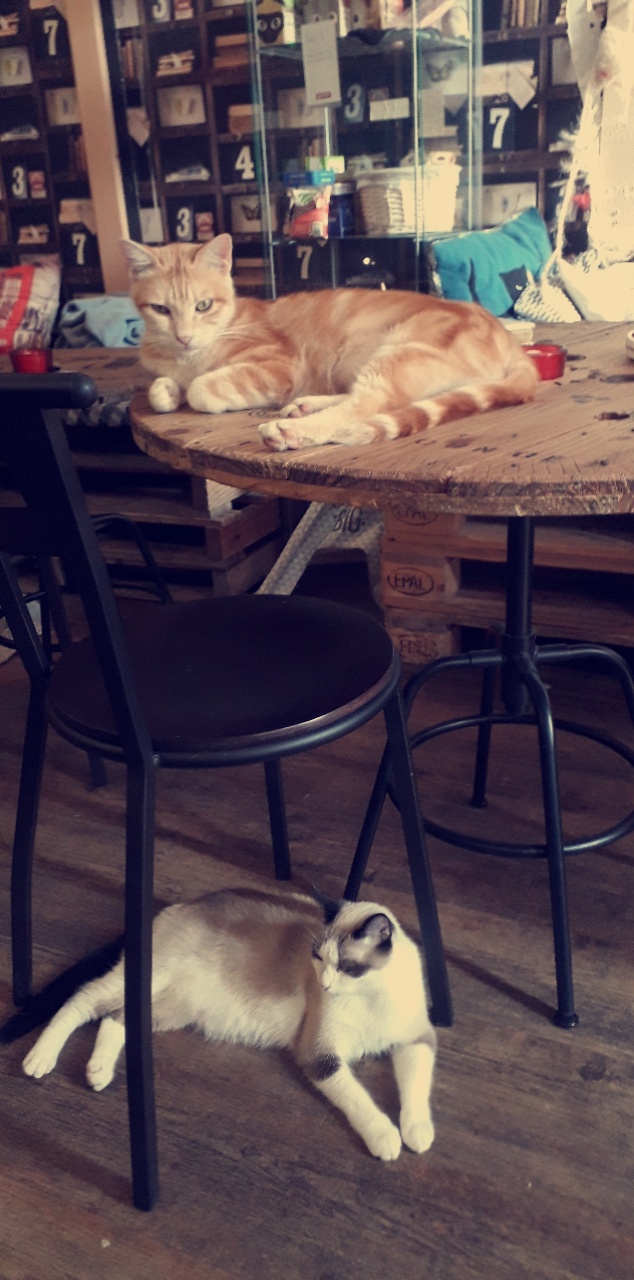 Endroit juste parfait pour se retrouver, se ressourcer ! Les chats sont très avenants, gourmands aussi ! L'odeur peut être derangeante lorsque l'on rentre dans l'espace dédié aux chats mais vite oublier par leurs présences.