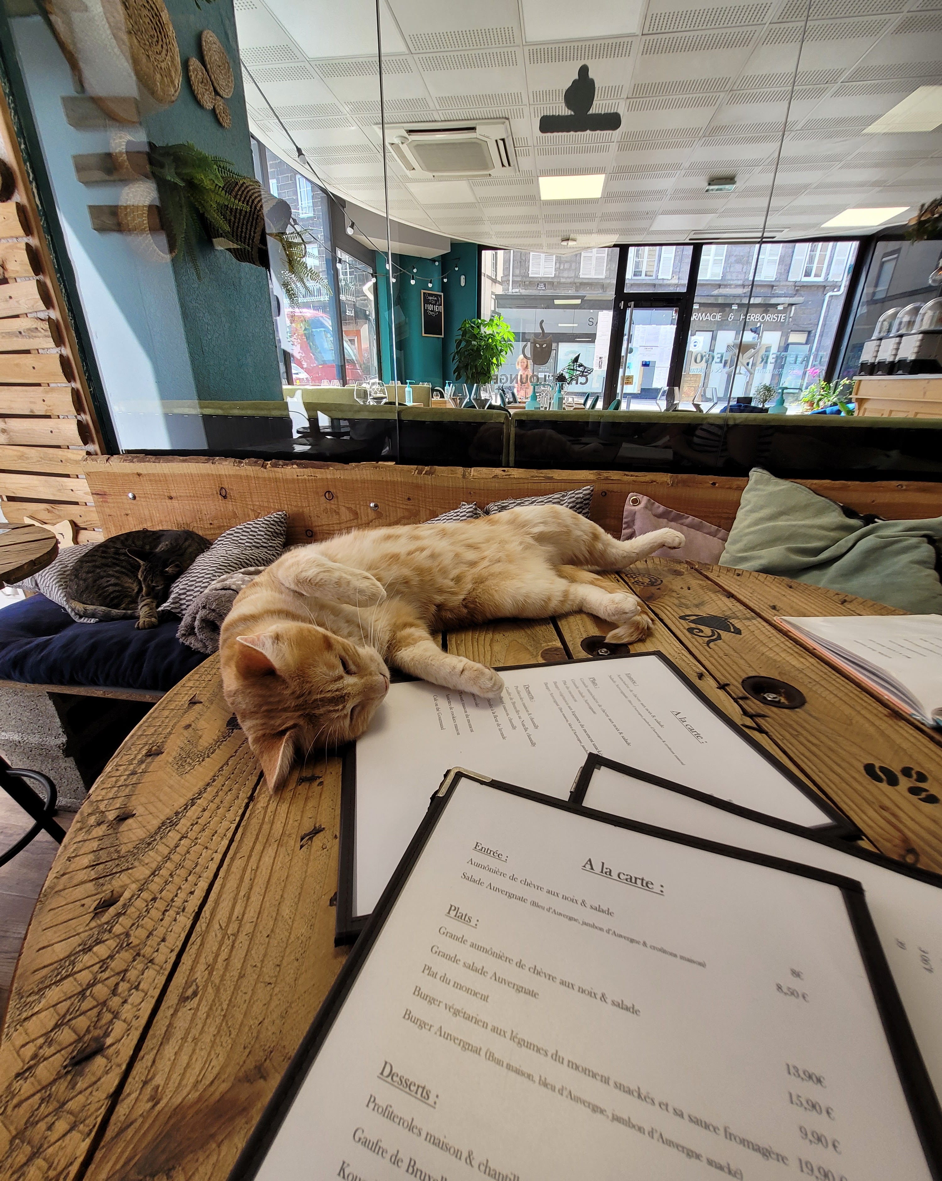 Super endroit, nous avons aimé le concept, nous sommes arrivé à 6 sans réservation un samedi mais on a quand même su nous trouvé une table. Super accueil venant de l’équipe et même des chats J’ai pris un burger et je ne m’attendais pas à ce que ce soit aussi fournit 😻😻😻, les desserts avait l’air top ! Je recommande +++