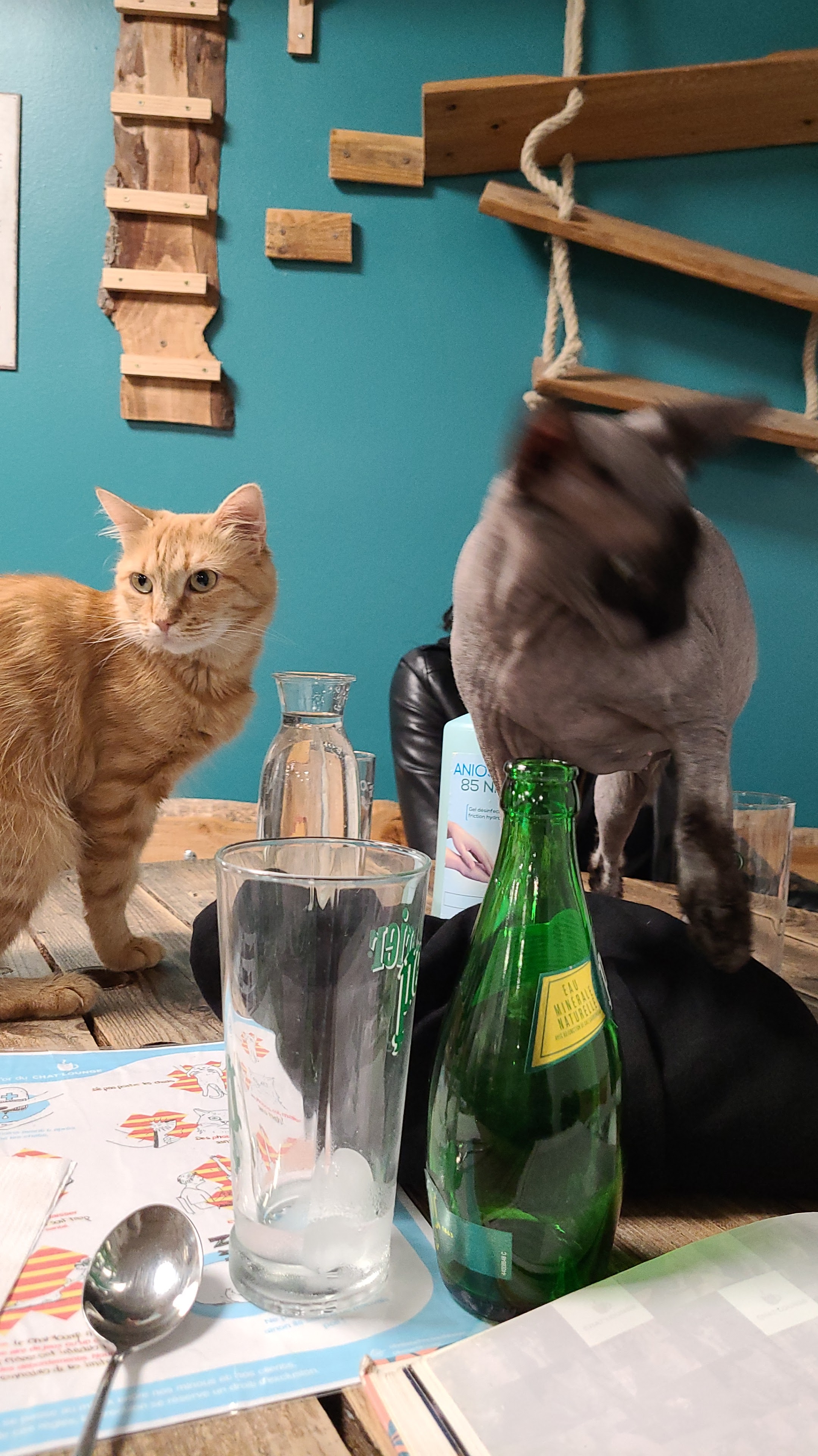 Nous sommes venu à 10, et les commandes sont arrivés très vite ! Un plus sachant que c'était excellent ! Les chats tenteront de lechouiller les boissons, mais repoussez les gentillement. Un QR code est dispo avec une description des chats. J'ai une Petite préférence pour les Sphinx qui sont magnifiques. A bientôt !