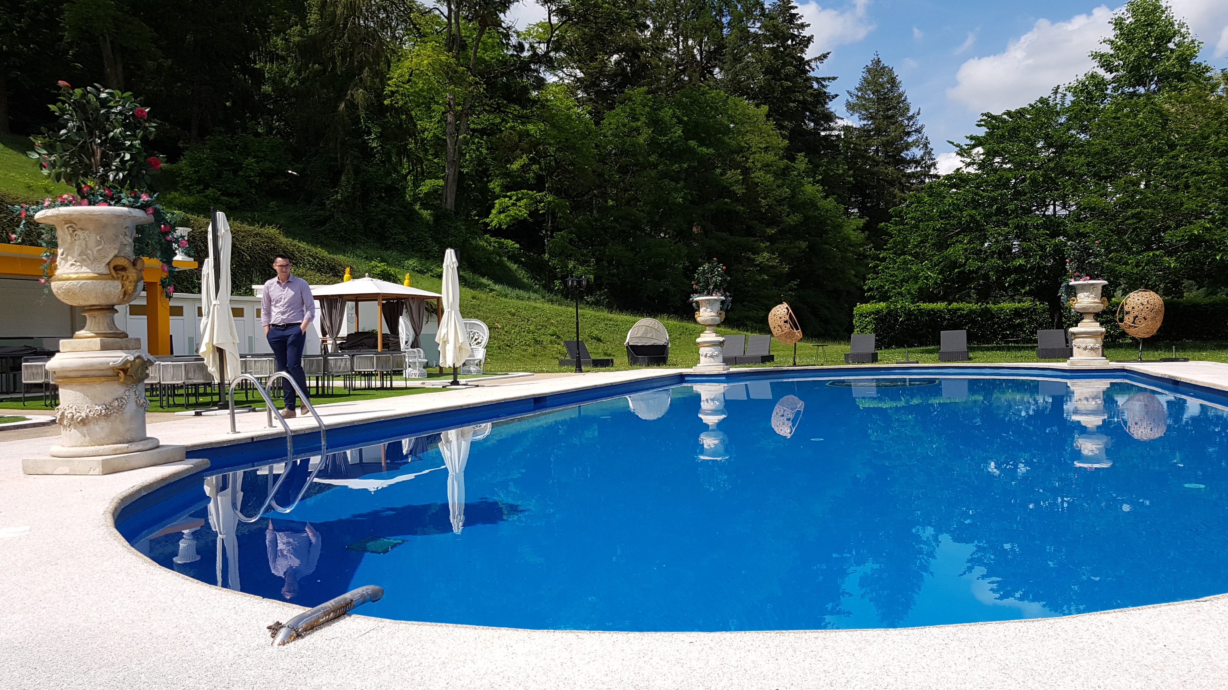 Lieu exceptionnel dans un cadre de verdure très reposant. Accueil chaleureux et personnel au petit soin, très professionnel et très agréable. Chambre impeccable et personnel de chambre réactif satisfaisant toutes vos demandes. Le restaurant n'est pas en reste. Qualité et raffinement des plats servis par des serveurs et serveuses hors pairs et sympathiques. Nous revenons dès que possible. Quand à la piscine : magique et superbe que du bonheur. Un des meilleurs sinon le meilleur Qualité prix de la région. Bravo l'équipe