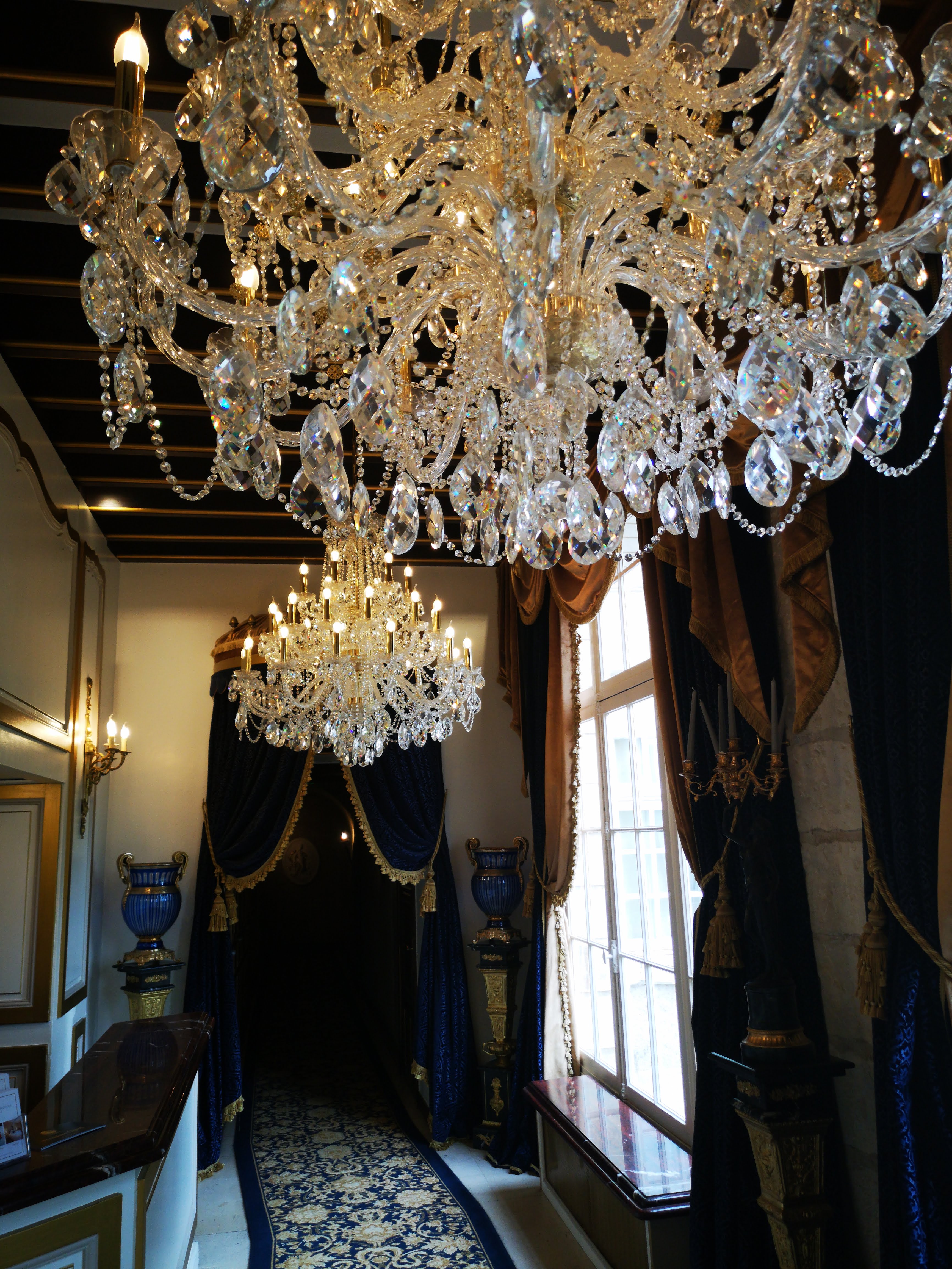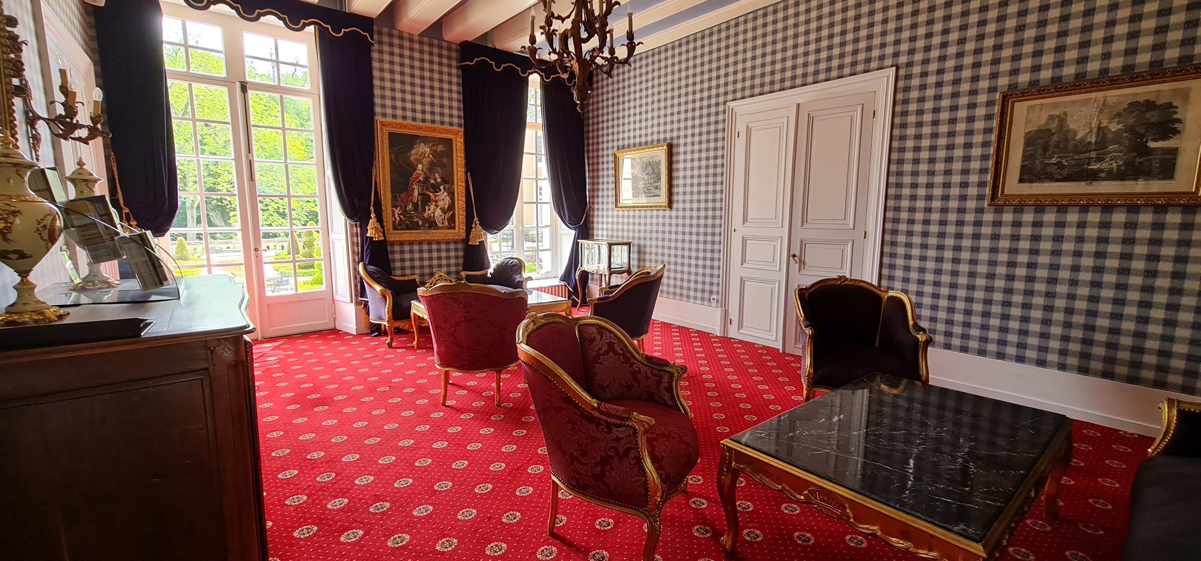 C'est un lieu qui en met plein la vue. Les lustres brillent, le portrait de Louis XIV accueille chaque visiteur, les bijoux, les œufs de Fabergé... Vous êtes dans la galerie des glaces mais, on redescend vite. Le personnel subit sa présence dans les lieux ! Le bonjour est forcé, aucune intention Avez vous fait bon voyage ? Avez vous bien dormi ?... Les bases de l'accueil en hôtellerie et qui ne dépend pas du nombre d'étoiles. (Le jeune qui a fait le check in était bien plus chaleureux que ses collègues). Le petit déjeuner ne manque de rien. Tout le monde peut y trouver son bonheur La WiFi ne fonctionne pas. La literie est exceptionnelle mais, ils prennent un très gros risque. Le matelas est dur, perso j'adore mais je sais que peu de gens apprécient des matelas aussi durs. Le couloir sent l'humidité mais pas les chambres. Heureusement. Le fait qu'il n'y ait pas de clim ne m'a pas spécialement posé problème (en été j'aurais peut-être eu une autre opinion) , le problème réside plus dans le fait qu'ils aient mis un ventilateur vraiment bas de gamme. Je ne leur demande pas un Dyson mais tout de même, ce ventilateur ne correspond pas au standing du lieu ! (cela s'applique également au papier toilette) Le lieu est calme. C'est très agréable. Le jardin est très beau. L'expérience aurait cependant pu être formidable mais, à cause du personnel, elle laisse un goût amer