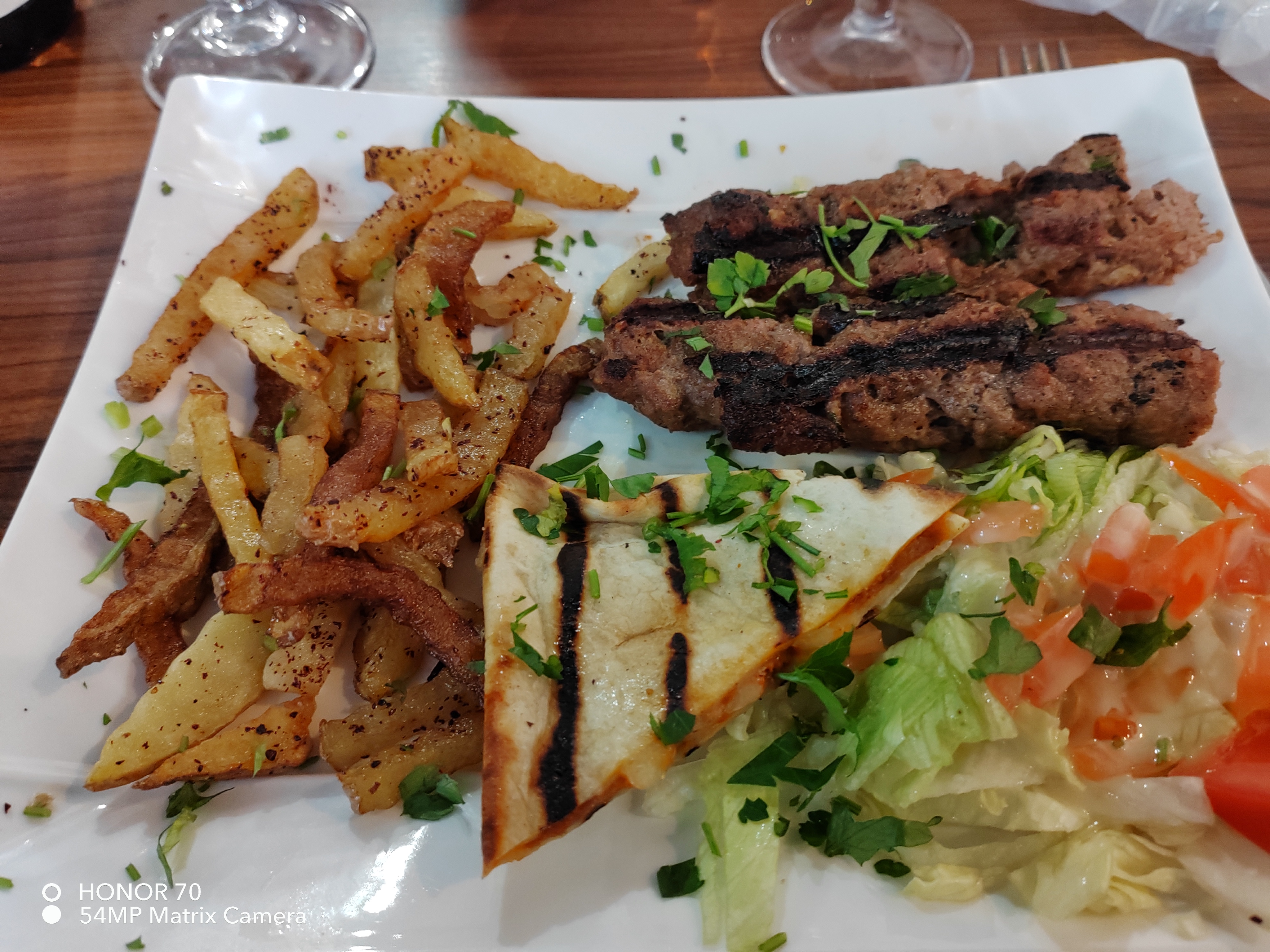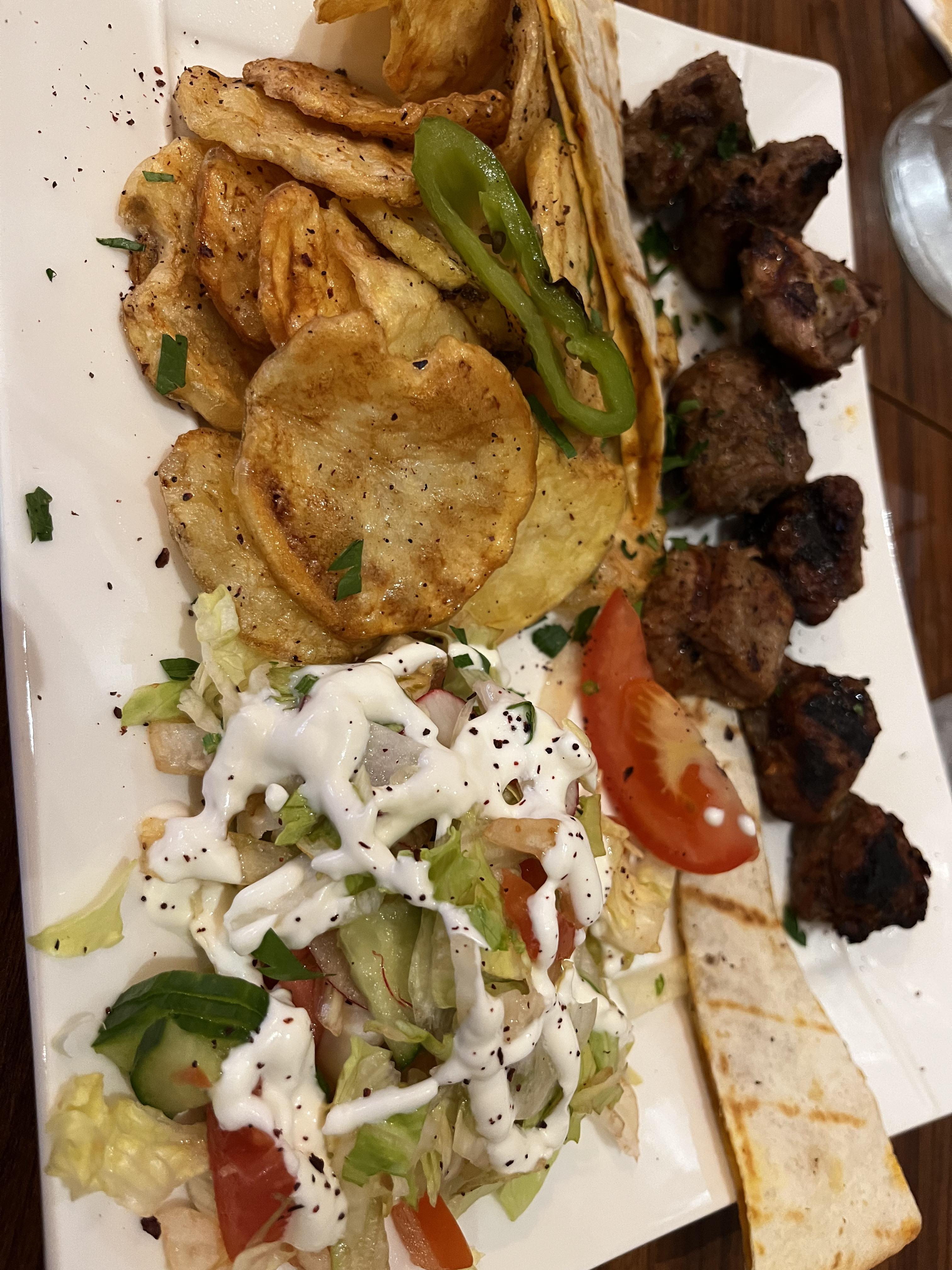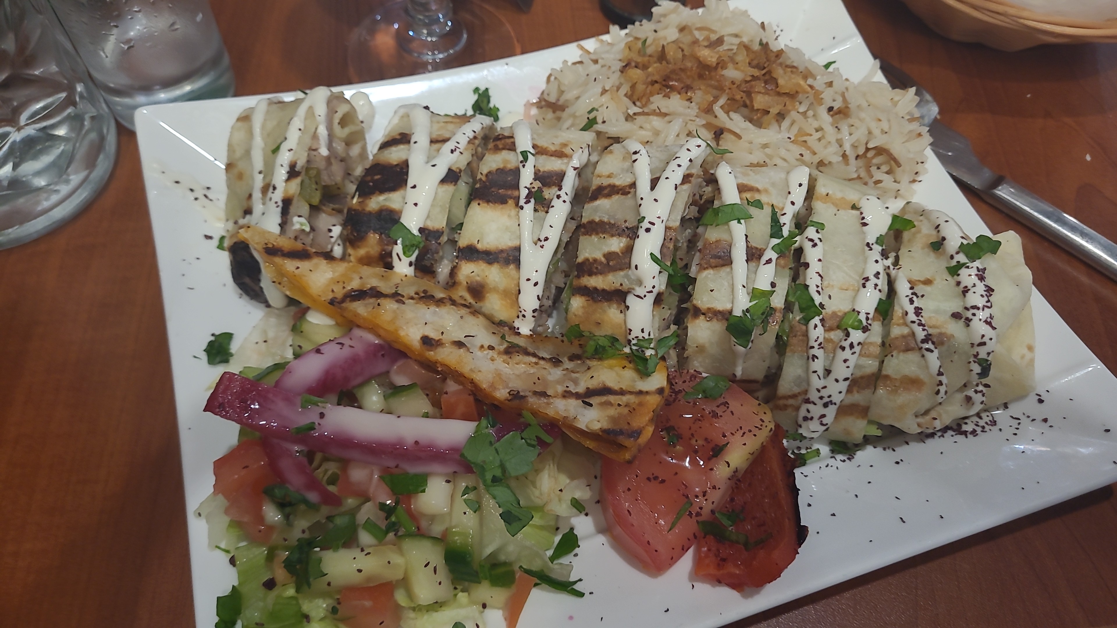 Buffet de mezze froids délicieux, tout était goûteux et bien assaisonné. Nous avons été surpris de voir arriver les assiettes de grillades, si généreuses que nous pensions ne jamais finir… mais c’était tellement bon qu’on n’a même pas eu à se forcer. Dommage qu’on n’ait pas de 2e estomac on en aurait bien repris! En plus de ça le service était particulièrement adorable et efficace. Bonne continuation à toute l’équipe nous avons bien voyagé avec vous et nous serions ravis de revenir!