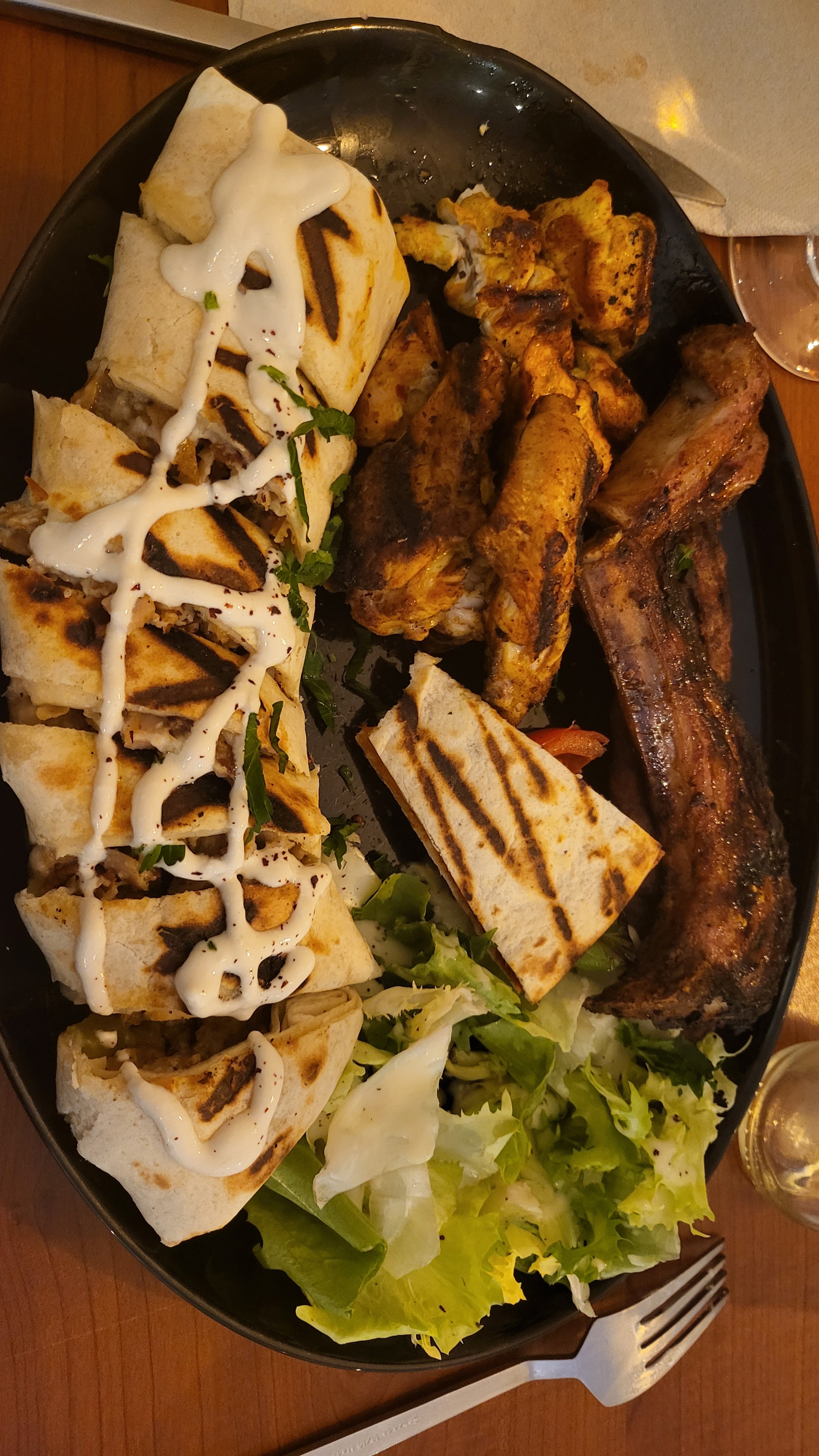 Nous avons été très bien accueilli par notre serveuse très sympathique et amicale. De plus, le plat de grillades pour 2 personnes est excellent et copieux. Je recommande ce restaurant !