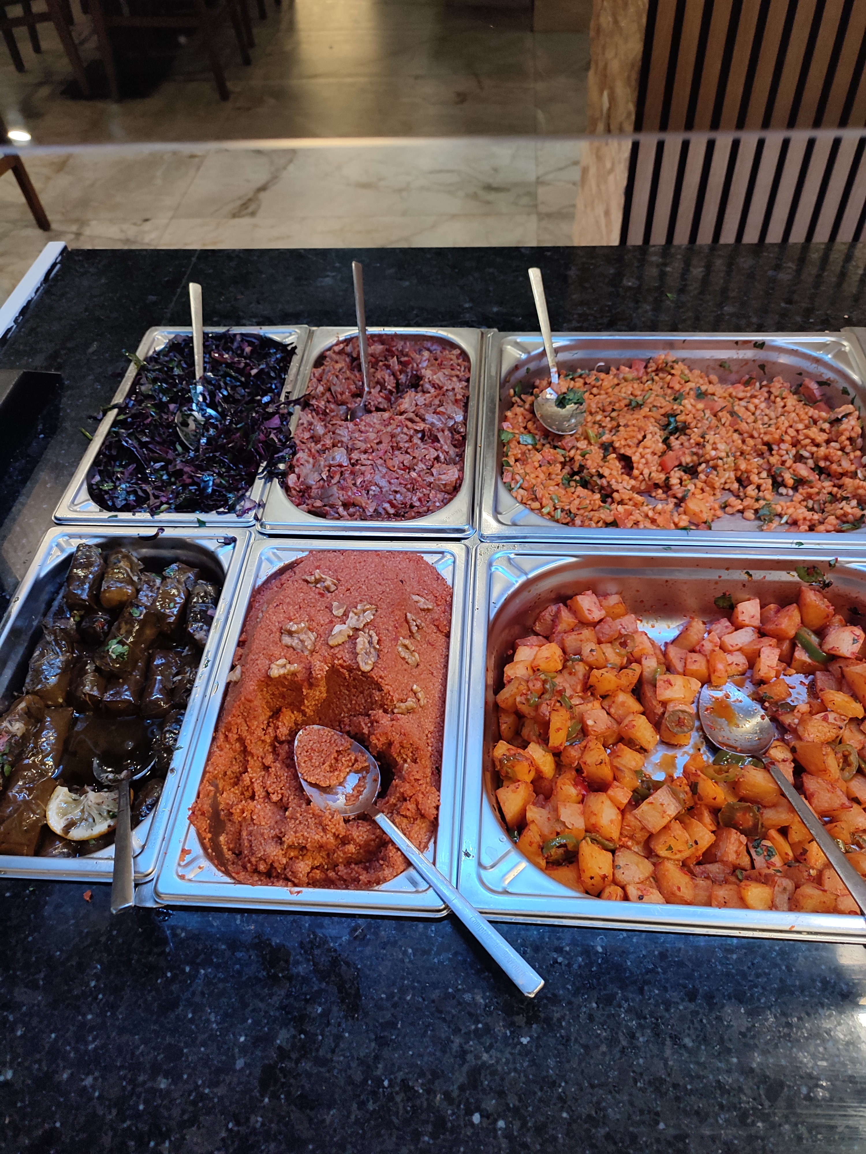 Bof ! Je ne sais pas si le restaurant etait débordé par une trop grande frequentation mais l'experience n'est pas concluante. Un buffet de Mezzés à volonté ce serait bien...si les Mezzés etaient là. Les bacs vides etaient rarement rechargés. Quand aux grillades arrivées après 3/4 d'heure d'attente , elles etaient bien trop cuites. Vraiment decevant