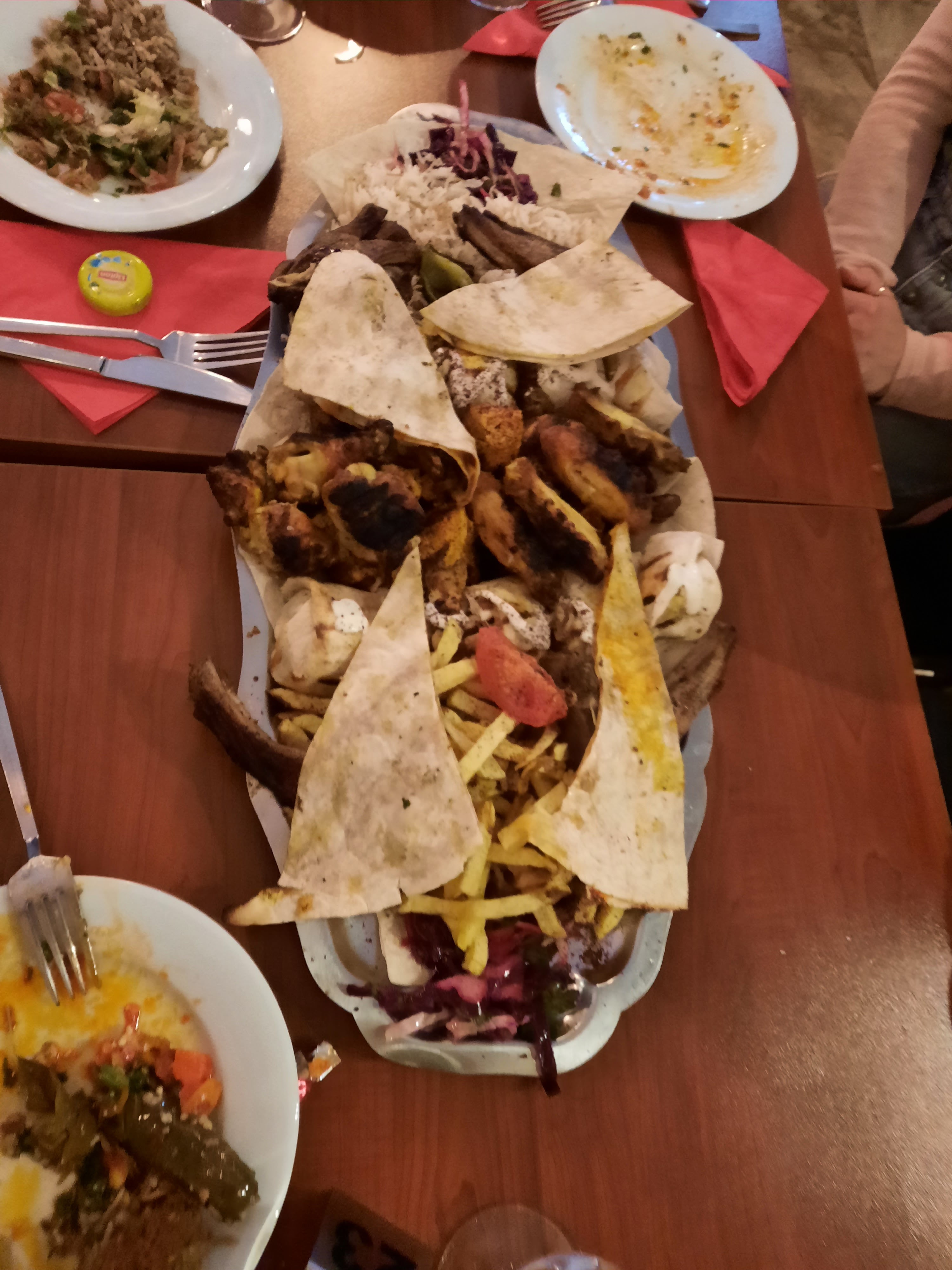 Buffet des mezzés à volonté est excellent. Je vous préconise de prendre que sa. Les plats sont un peu décevant, c'était mieux avant. Plus de frite en lamelle maintenant on vous sert des frites classique pleine d'huile. On ne vous sert plus la crème d'ail. Les viandes pour celui de ma femme et le mien étaient carbonisé. Je reviendrai seulement pour le buffet sinon le personnel est très bien