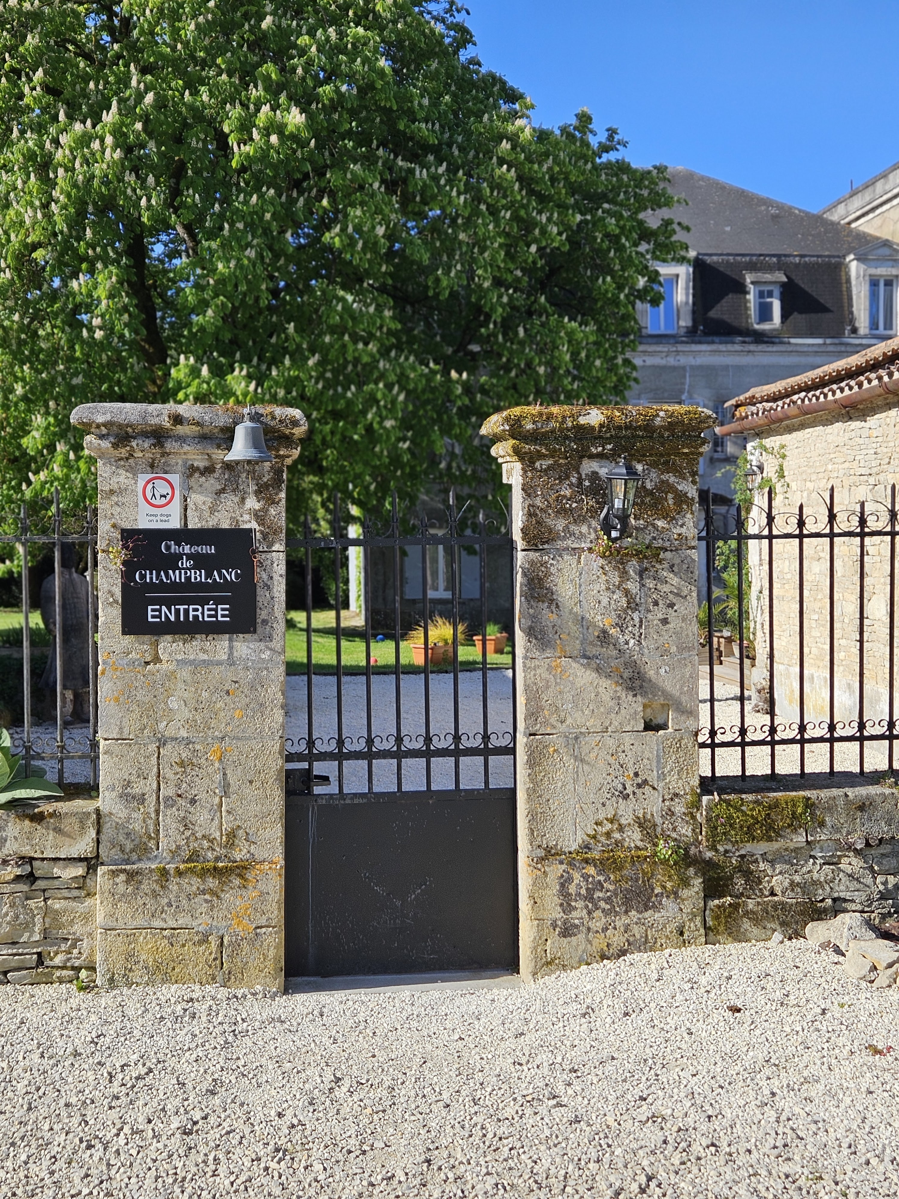 Nous étions un groupe de 13 personnes, et avons pu profiter de l'ensemble des chambres de Château Champblanc rien que pour nous-mêmes. Toutes ont leur style distinct et sont dotées d'un excellent confort. Karine et Sébastien ont su allier confort moderne à l'ancien et avec grand goût. Rien ne manque. Nous y avons également pris le dîner... À-re-co-mman-der fortement ! Karine est une Cheffe, nous a préparé un très bon dîner, et Sébastien nous a régalé de l'apéritif au mémorable Cognac final. Ce court séjour fut un des points forts de notre périple. Merci encore, Karine, et Sébastien. Belle saison, et on espère à une prochaine fois. D & M