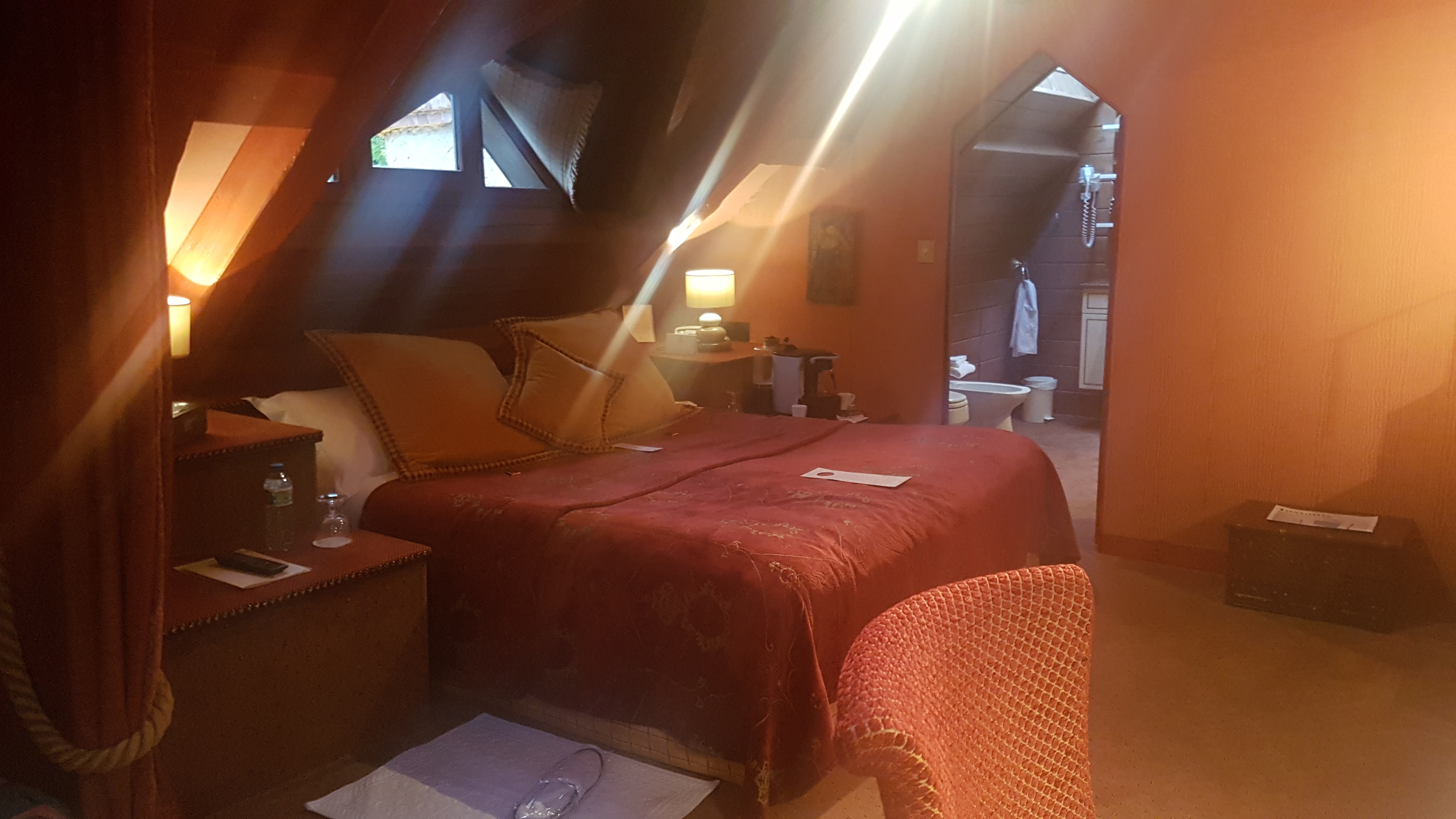 Personnel attentionné très serviable mais pas servile qualité de la table majesté du décor point par contre le jacuzzi est un peu ringard et les toilettes sont dans la salle de bain