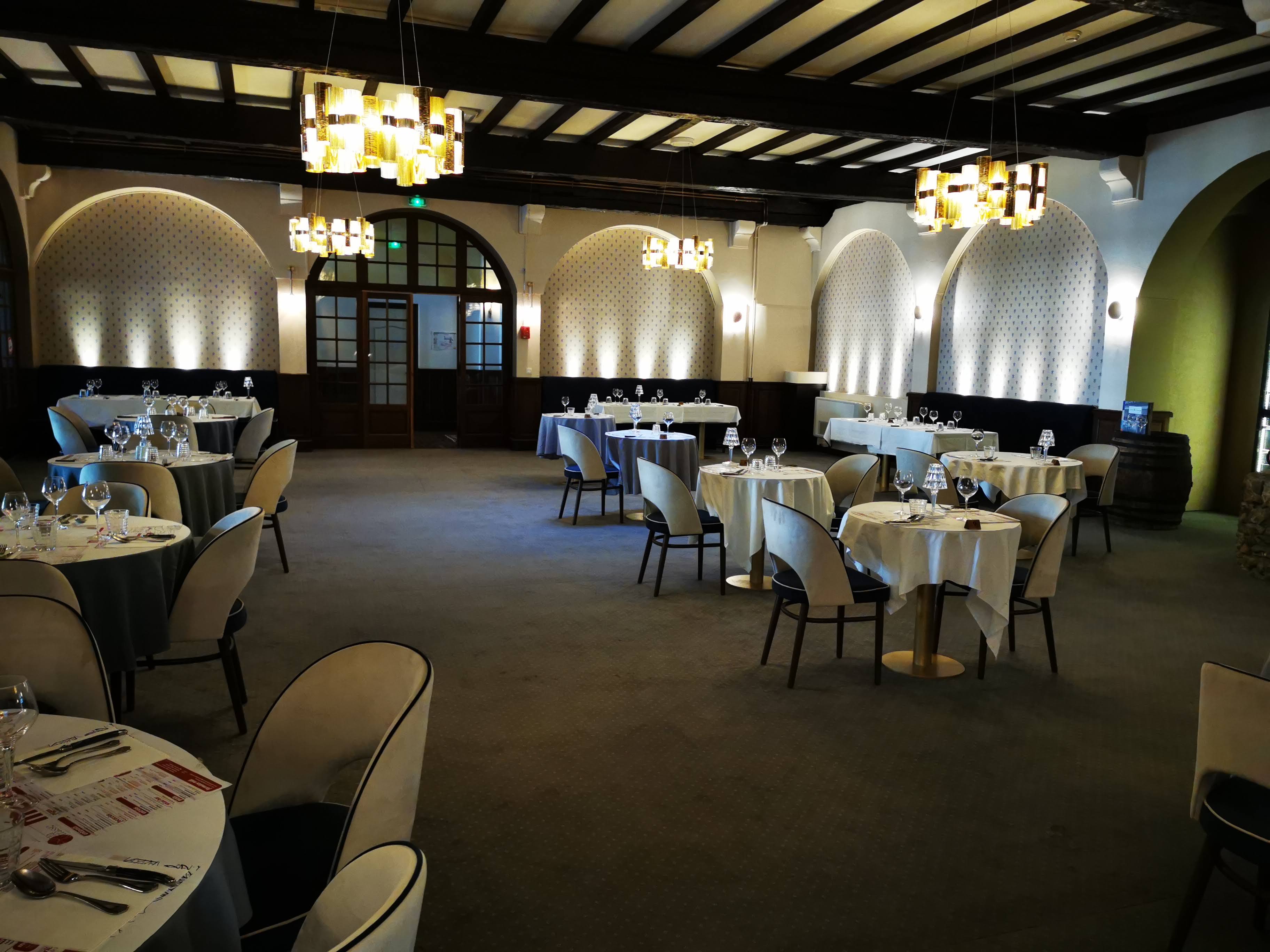 J’ai déjeuné ce midi au restaurant « la terrasse du château » mais en intérieur. Je me suis régalé avec une bavette et un très bon dessert. L’endroit est juste dépaysant, raffiné et très beau. J’ai déjà dîner cet été en terrasse. Je pense y retourner bientôt pour le restaurant « le chant de la source ». De plus le personnel est très agréable et m’as fait visiter le rdc du château. Il y a deux parking qui permettent de stationner au mieux son véhicule.