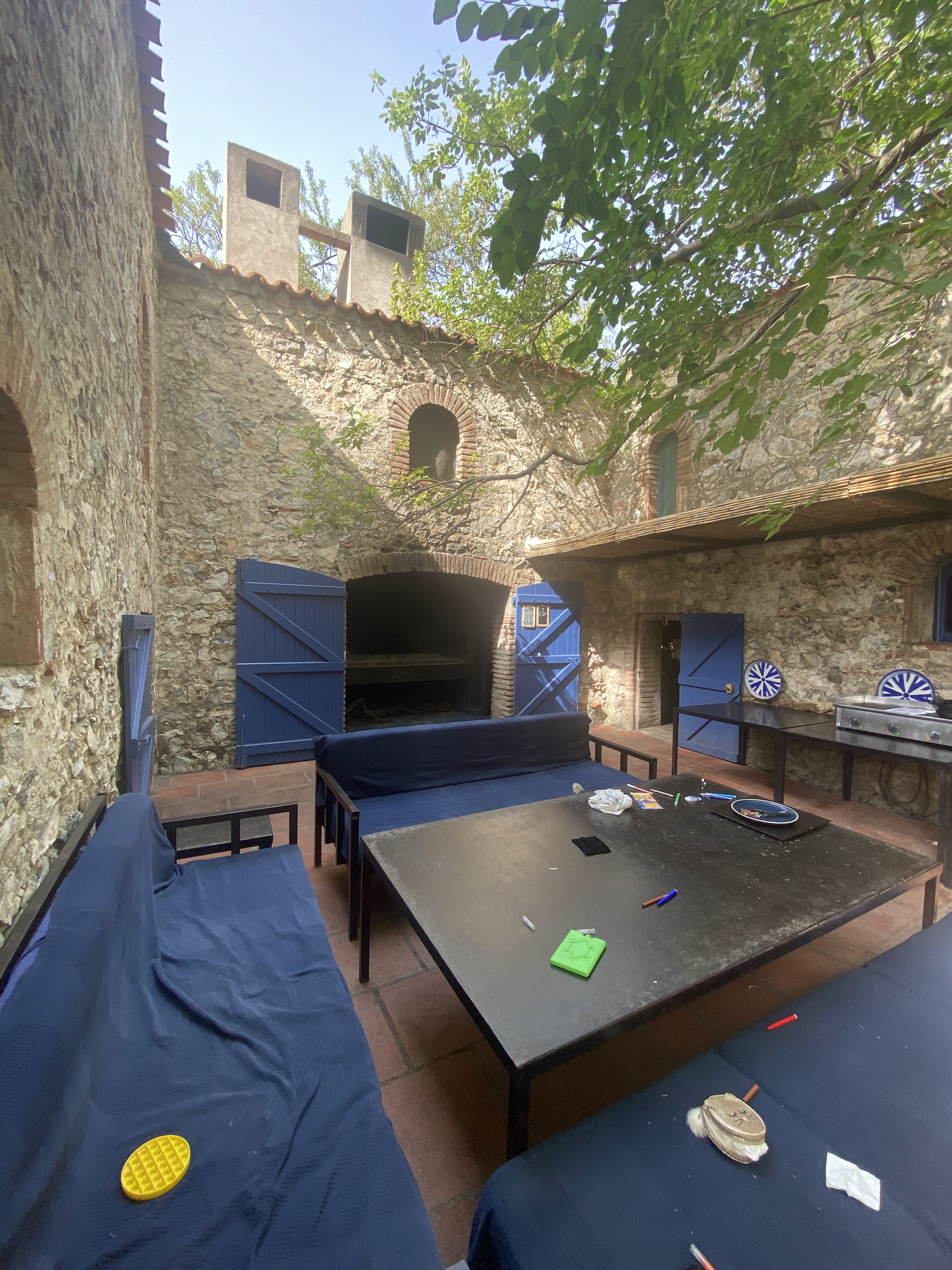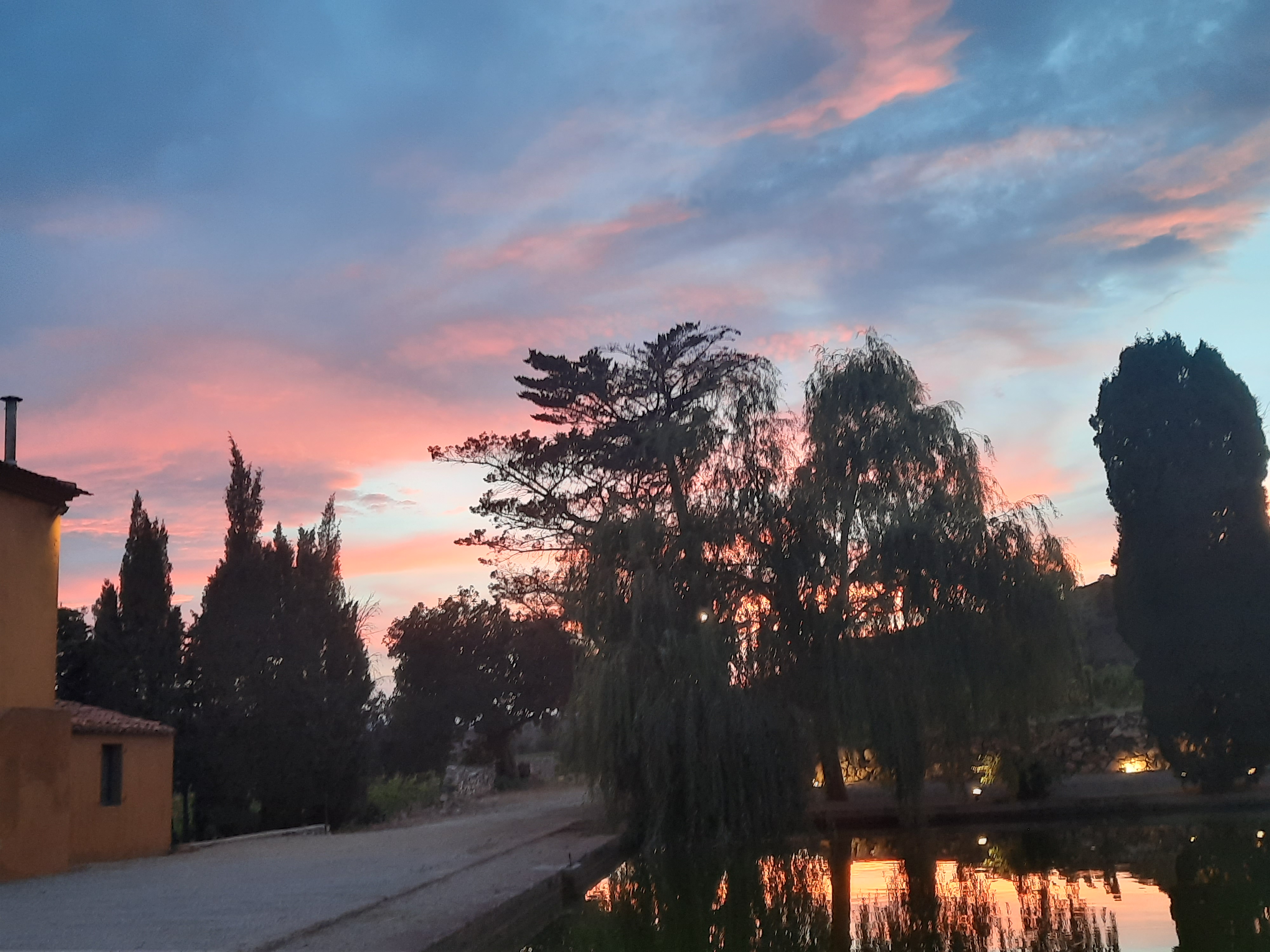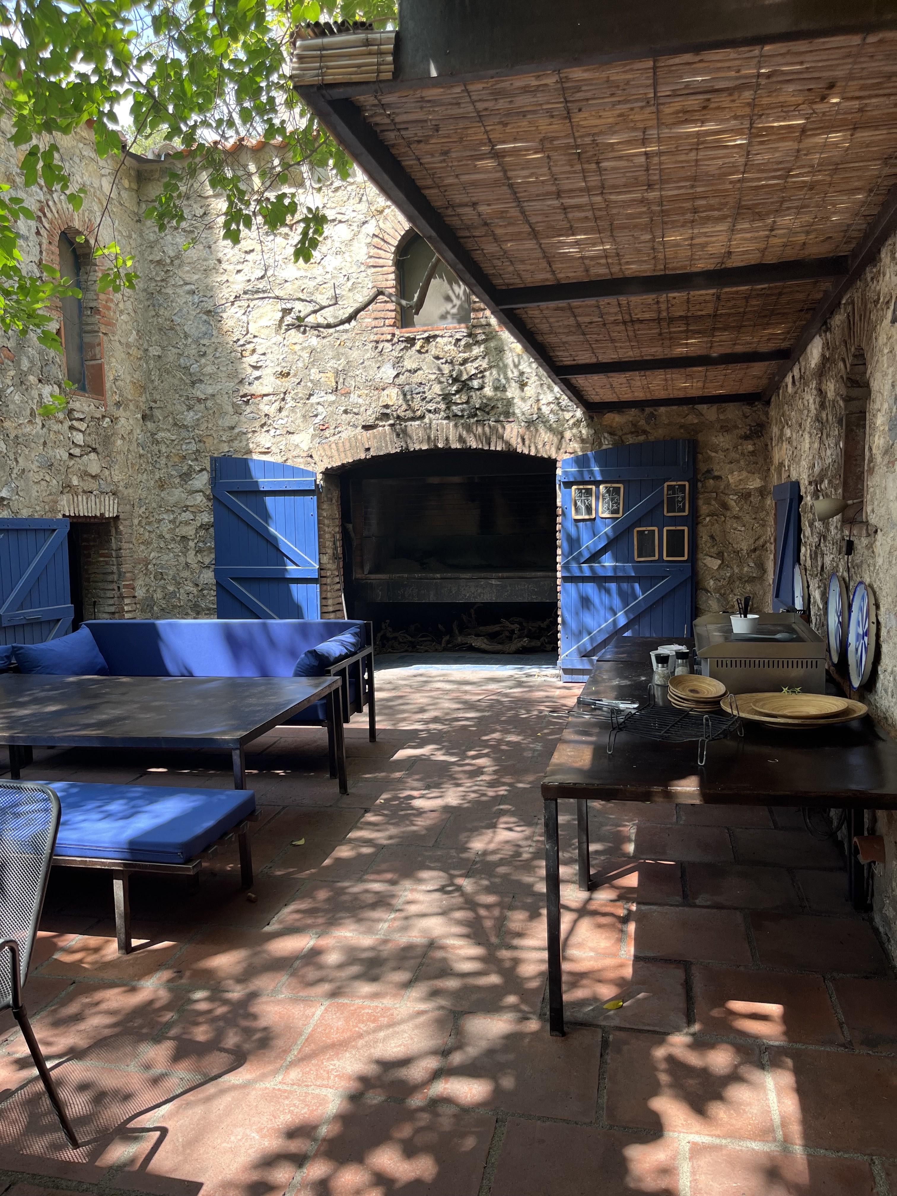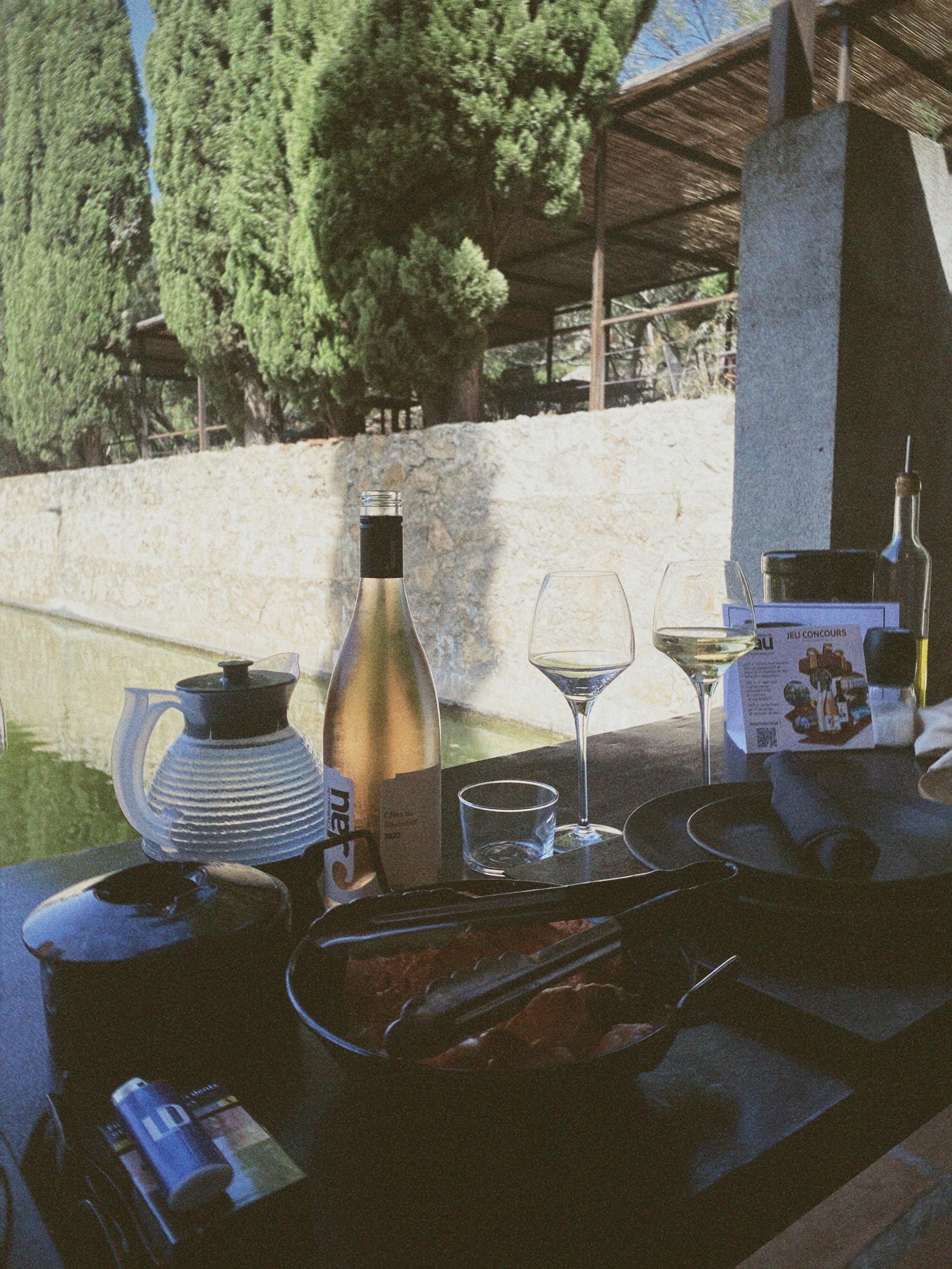 Très joli moment à cette table près du bassin, sous le murier multi centenaire, pour apprécier un repas de grillades typique catalan avec du temps pour découvrir et apprécier 8 des vins du chateau.