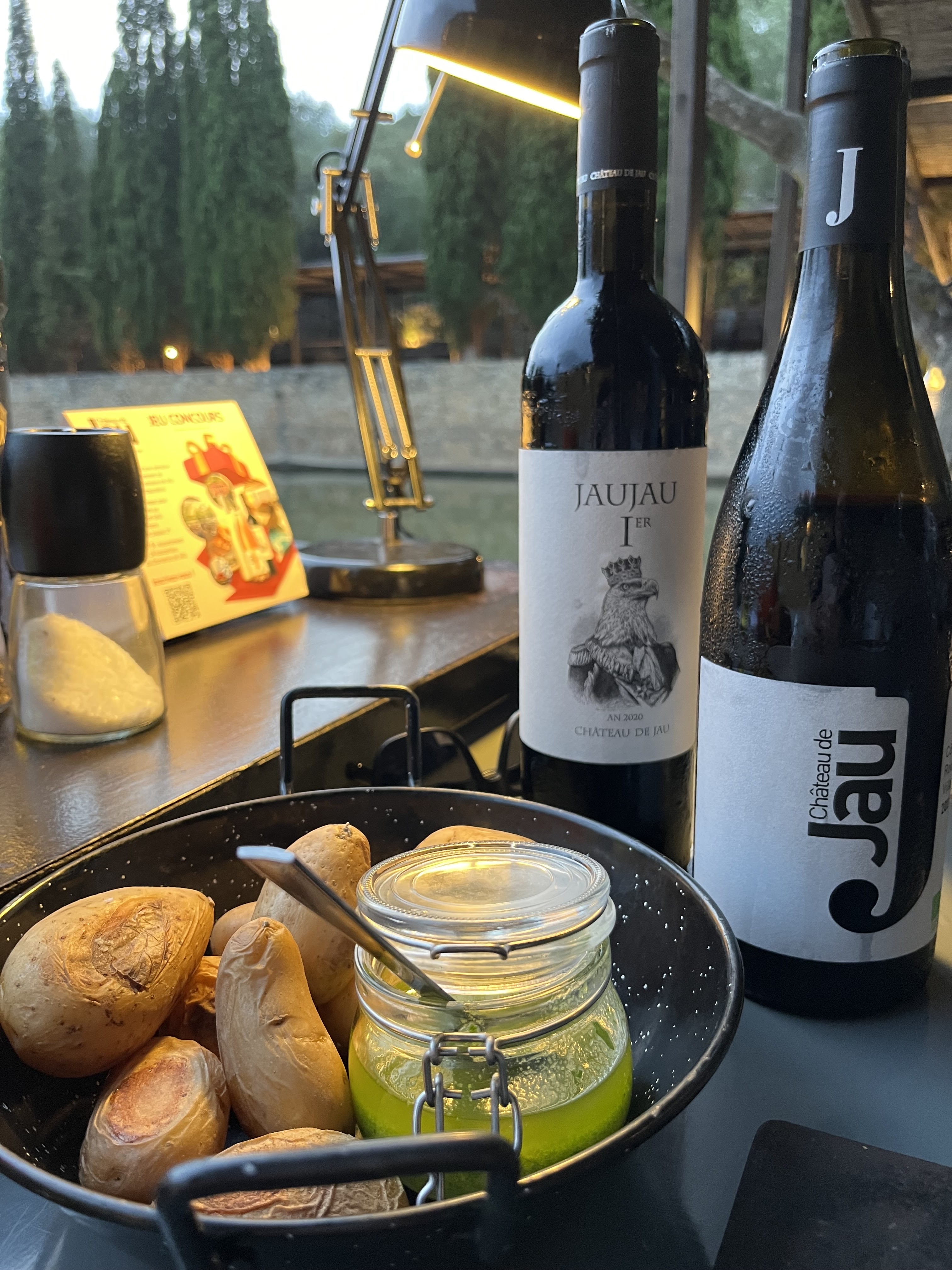 Tout simplement génialissime, il n'y a pas d'autre superlatif pour cette expérience. Tous les produits sont locaux et frais. La viande est cuite aux serments de vignes. C'est copieux et cerise sur le gâteau, c'est l'occasion de déguster les différents vins et millésimes du château de Jau, dans un superbe cadre. Au château de Jau il y a aussi une charmante galerie d'art.