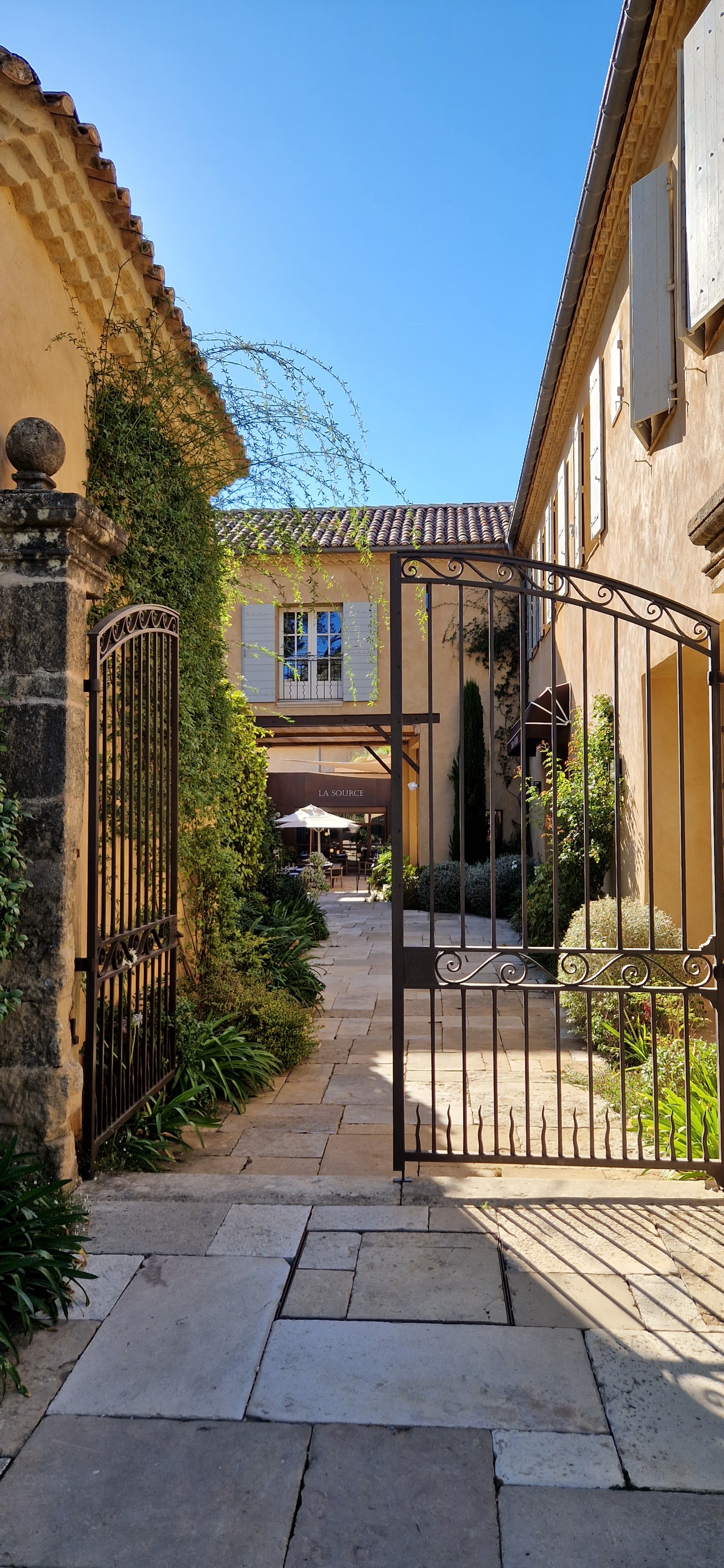Excellente table, très bel endroit sous de grands pins au pied d’une magnifique bastide provençale, avec une source incroyable. Grande tablée possible au restaurant La Source. Prix élevé tout de même mais magnifique domaine.