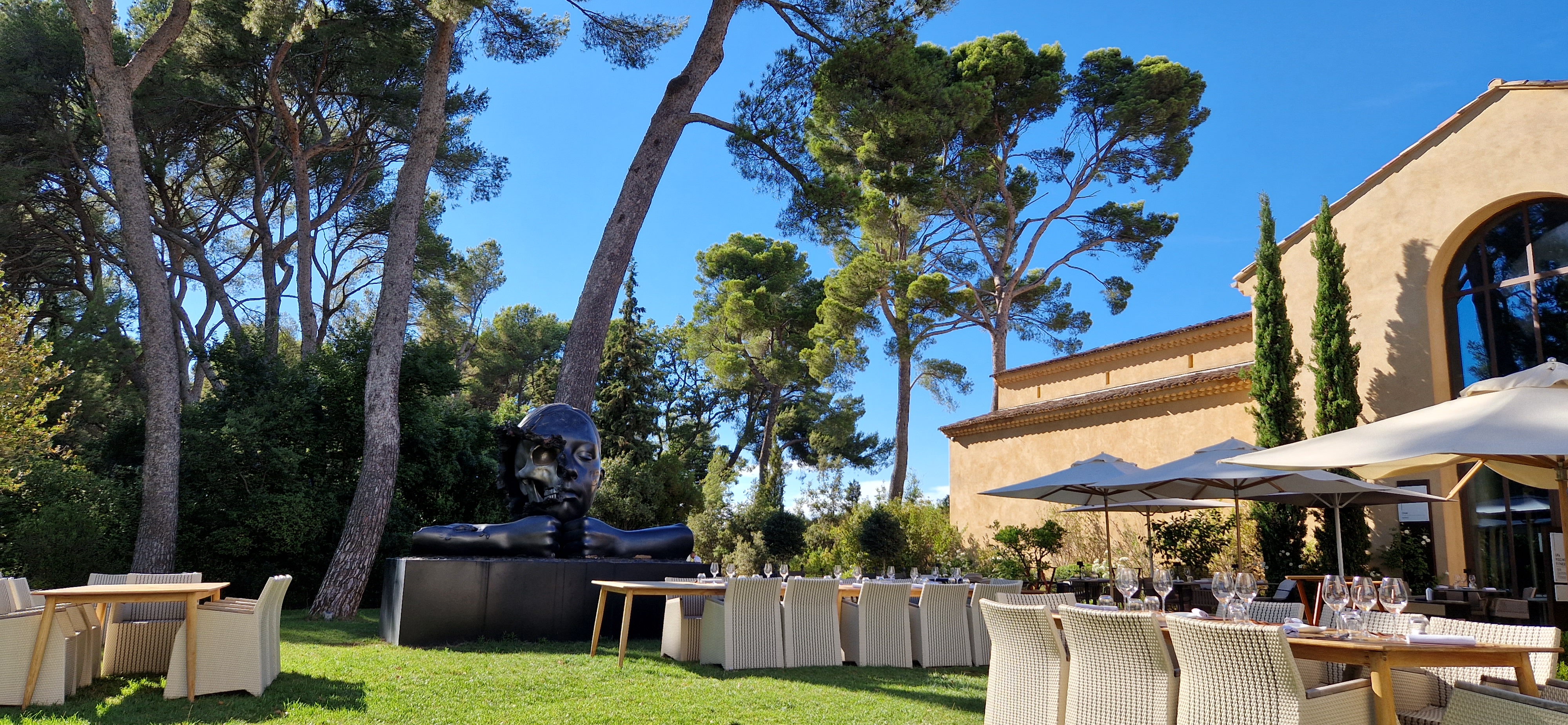 Très belle découverte récente à proximité immédiate d'Aix en Provence, un très beau site avec de belles sculptures monumentales, de magnifiques peintures; détour impératif par ce lieu pour les amateurs d'art. Un superbe jardin, le restaurant gastronomique, Le Art, étoilé, de beaux bâtiments restaurés, une cave à vin des plus intéressante par la qualité des vins proposés (quelques superbes verticales) en plus de ceux du domaine. Un seul conseil, y aller...