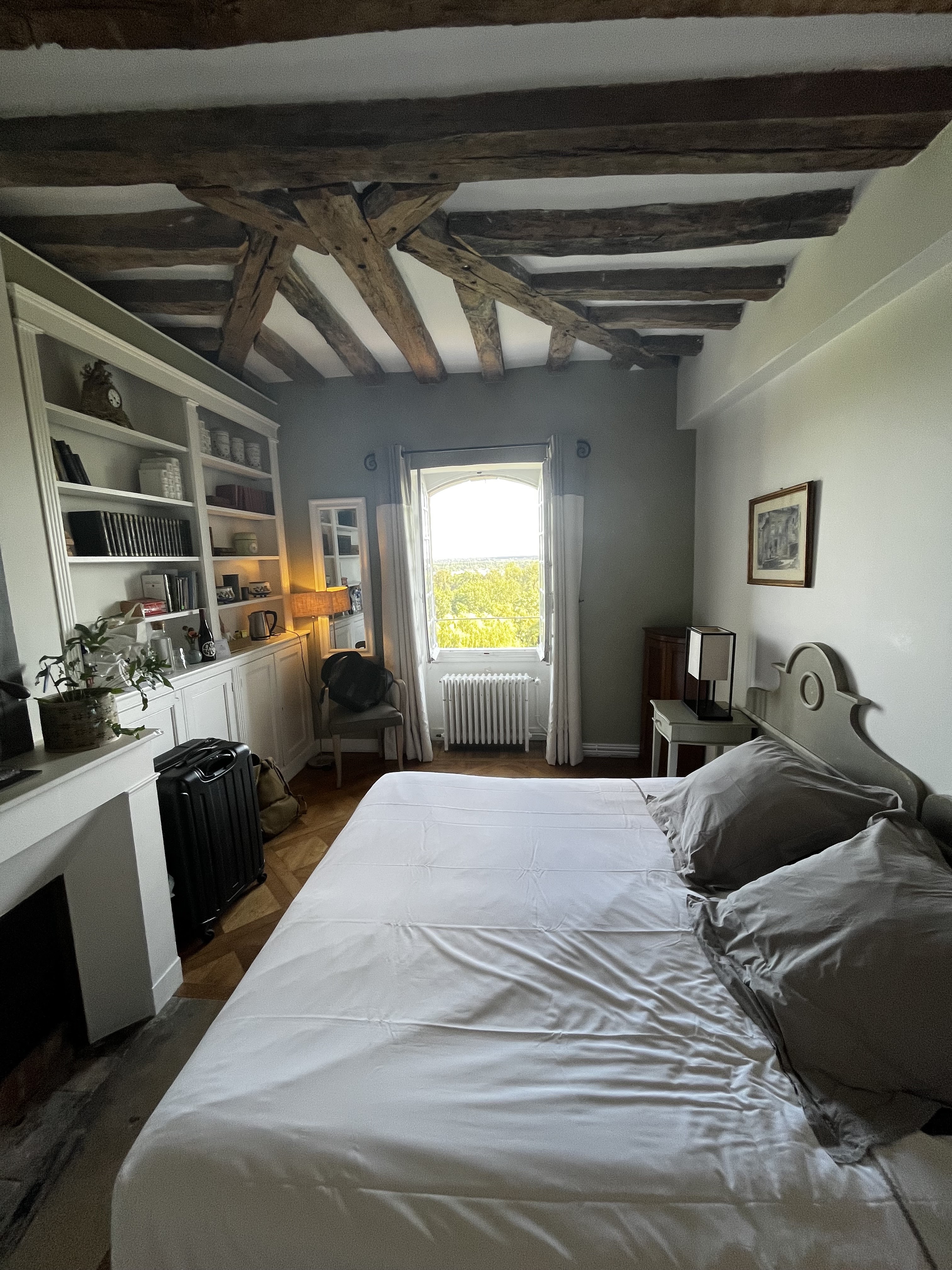 Bel endroit pour passer quelques nuits dans la vallée de la Loire. Bien sûr, la vallée est assez grande et il n'y a donc pas vraiment d'emplacement central parfait. Ce château est à environ 45 minutes de Cheverny et Chambord, 15 minutes du Château d'Amboise et 30 minutes de Chenonceau et du Château de Chaumont. Il dispose d'une piscine vraiment soignée et le château lui-même est authentiquement historique. Nous avions une chambre supérieure avec des murs en pierre. La douche et le lavabo étaient super, avec une pression d'eau excellente. Il y avait des dosettes d'espresso dans la chambre ainsi que de bons sachets de thé. Attention, seules de très petites voitures peuvent passer par l'ouverture de la taille d'une voiture donnant sur la cour. Il y a une épicerie à environ 10 minutes et une jolie petite boulangerie à environ 5 minutes à pied. Le château sert un bon petit-déjeuner européen avec du pain, du yaourt et du café pour 15 euros par personne.
