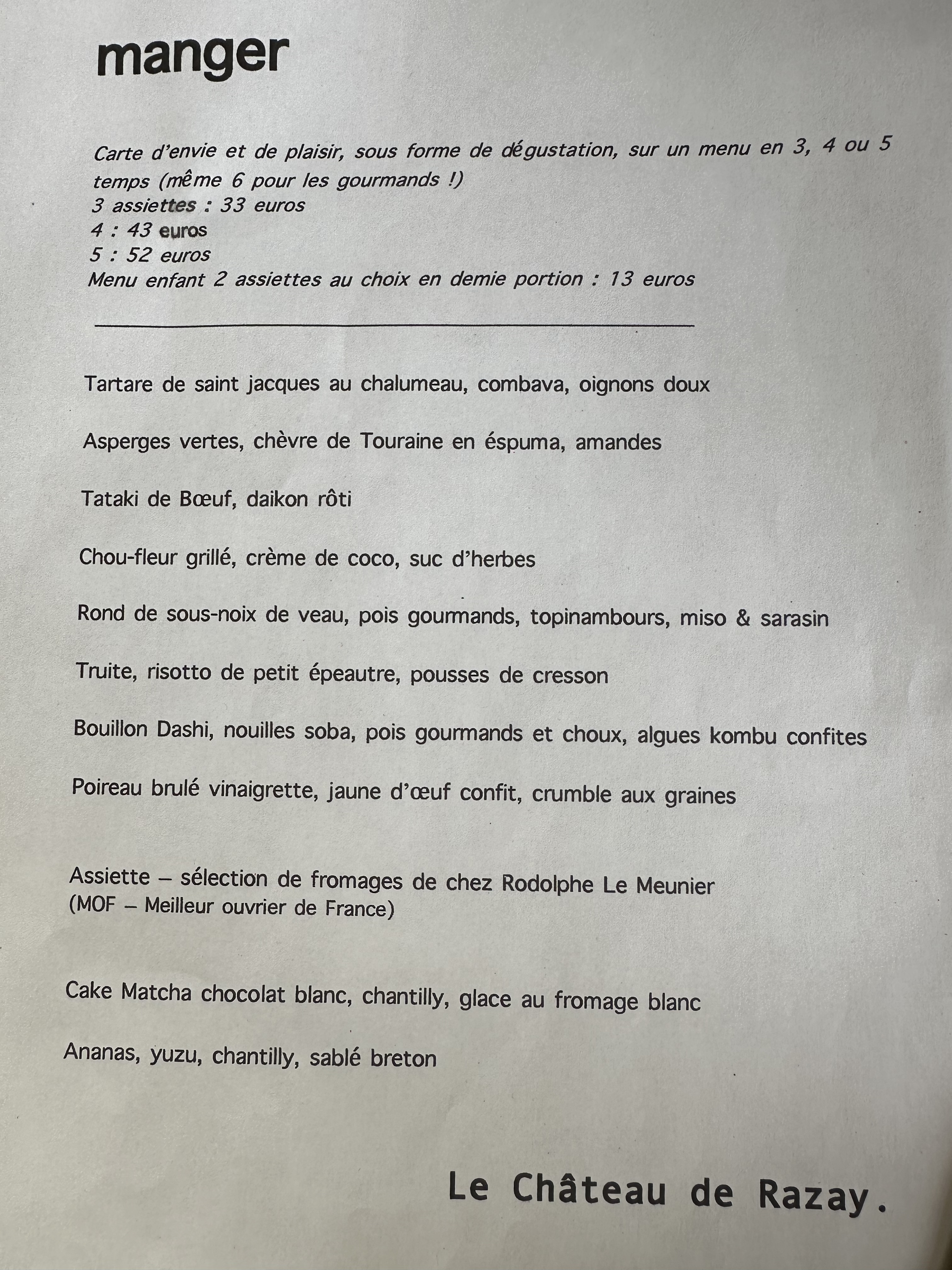 Nous sommes venus dîner au château de razay complètement par hasard mais le hasard fait parfois bien les choses ! Quel endroit merveilleux, service hyper agréable, cadre top, et alors tout ce que nous avons pu déguster était excellent, bref ce qu'on appelle un moment inoubliable ! Merci !