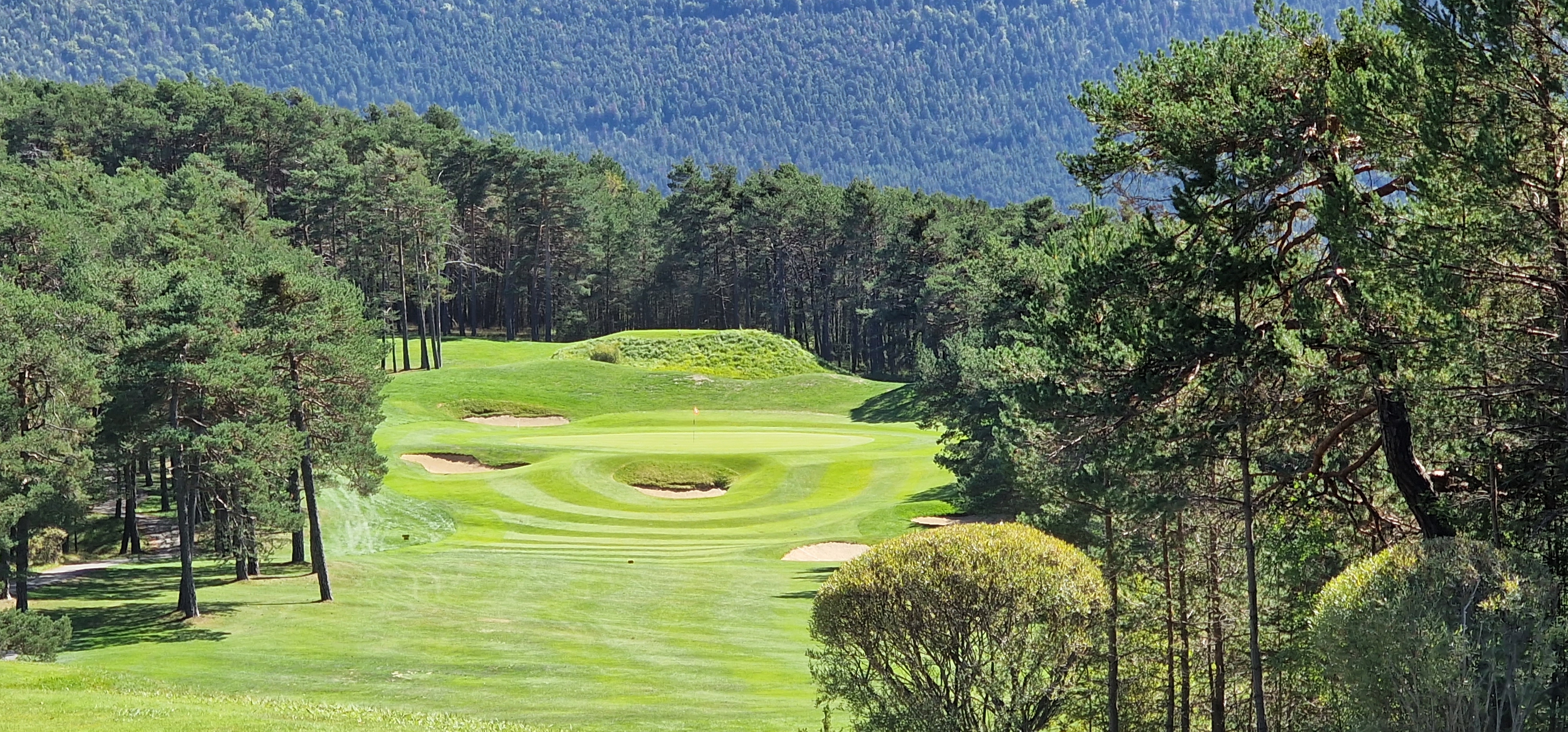 Magnifique golf à 1000m d altitude une moquette verte du début à la fin. Entretien impeccable ! Bistro moyen . Service fait par des amateurs , dommage....