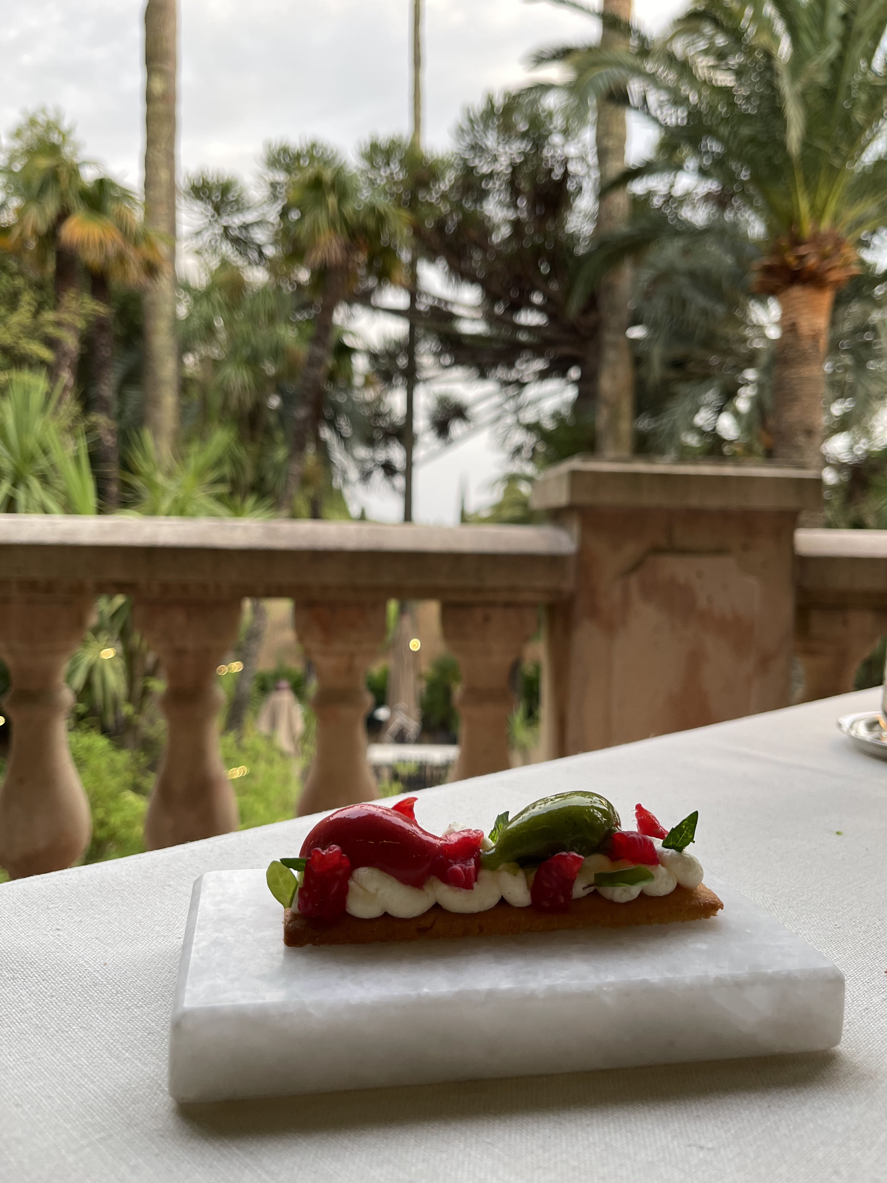 La Palmeraie est un excellent restaurant, une belle expérience vivement recommandée. En revanche l'expérience au bar la veille a été décevante. Habitué de cette adresse pour l'apéritif j'ai été surpris de constater une baisse de qualité pour le bar depuis ma dernière visite en 2019. Un Negroni grossièrement exécuté et servi dans un verre...IKEA. Pour un établissement de ce standing j'ai trouvé ça dommage. Envie d'un snack à 17h10... Monsieur le service snack ferme à 17h. Soit, mais il y a toujours le room service dans un hotel 5 étoiles ? Cette solution ne m'a pas été proposé. Je n'ai donc pu me restaurer aucune solution ne m'a été apportée. Avec l'arrivée de Lily Of The Valley à quelques minutes du Château j'espère une réaction de la part de Château Valmer pour que je puisse de nouveau prendre plaisir à passer prendre des apéritifs à cette adresse (sublime je le souligne) et dîner à la Palmeraie (encore une fois le restaurant était quant à lui impeccable).