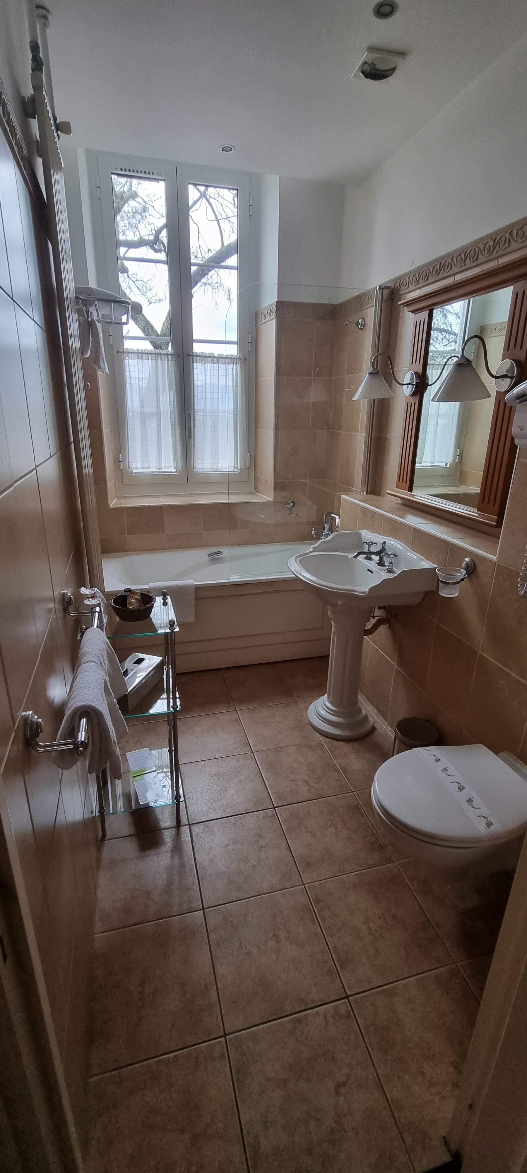 Très beau château, chambre confortable même si c'était 2 lits collés alors que c'est écrit grand lit, salle de bain peu faire mieux au niveau de la baignoire, petit déjeuner très copieux.