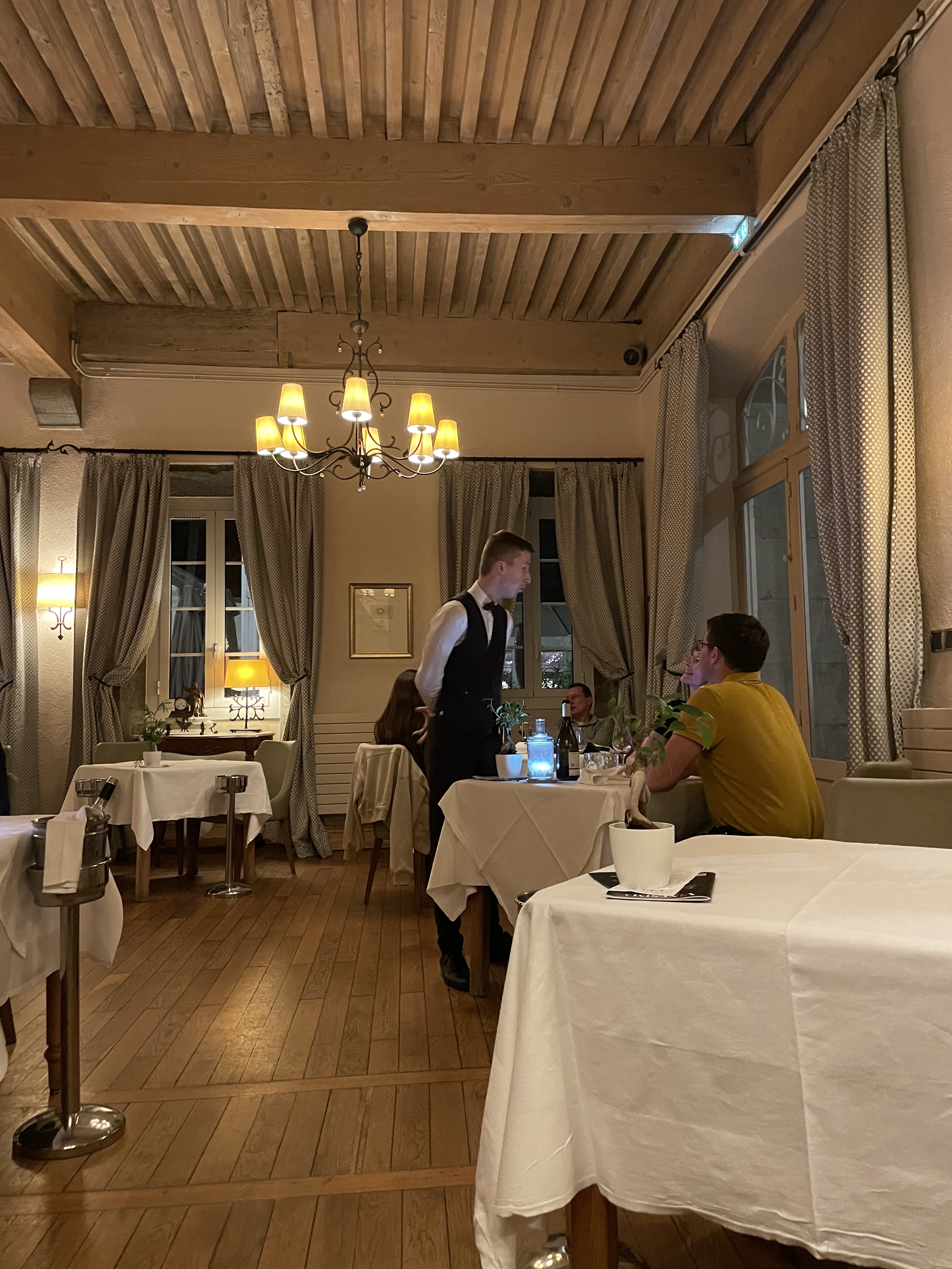 Pour fêter notre anniversaire de mariage et la fin de gros travaux, nous attendions avec appétit cette soirée. Arrivés à l’heure prévue, nous sommes restés 5’ debout avant d’être invités à nous asseoir. Les serveurs passent et repassent dans l’allée, le cadre est magnifique, mais 25’ sont passées et nous n’avons toujours pas commandé. Je vais voir un serveur qui marmonne de vagues explications. 10’ se passent toujours personne, et toujours pas de commande. Nous sommes repartis sans manger, déçus et frustrés. Le service n’était ce soir là pas du tout à la hauteur, les assiettes non plus d'après ce que j’ai pu voir à d’autres tables : petites portions et mal présentées. Le cadre ne suffit pas.