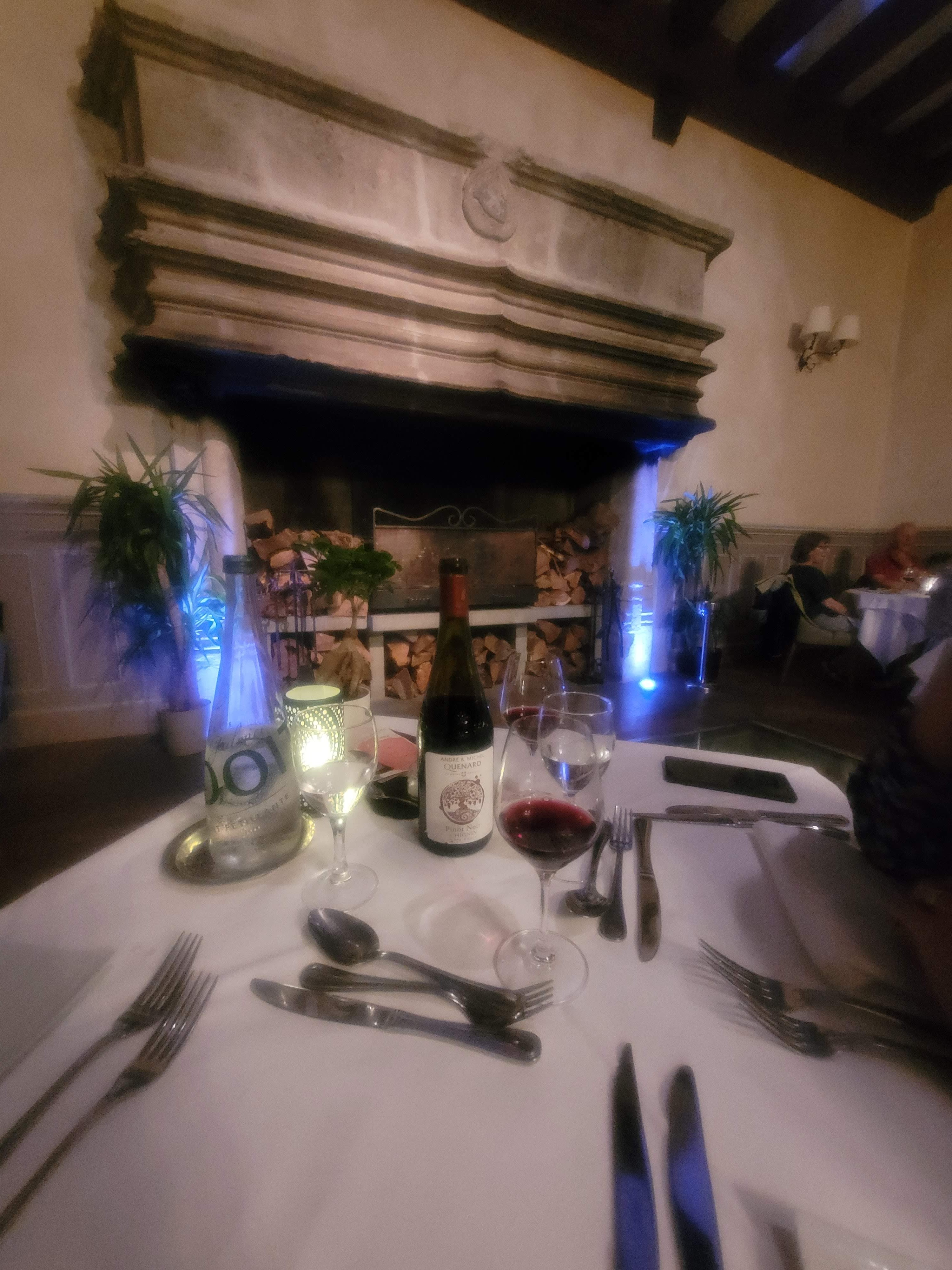Une très belle soirée partagée avec mon conjoint! Je recommande vivement la dégustation des vins dans la cave du château datant du 13e siècle. Le sommelier est passionné par son métier et cette dégustation/visite à été plus qu'enrichissante. Le restaurant est fantastique, une table en amoureux face à la cheminée rien de tel pour une soirée en amoureux. Les plats sont excellents, digne des plus grandes tables. Merci au personnel pour leurs délicates attentions.
