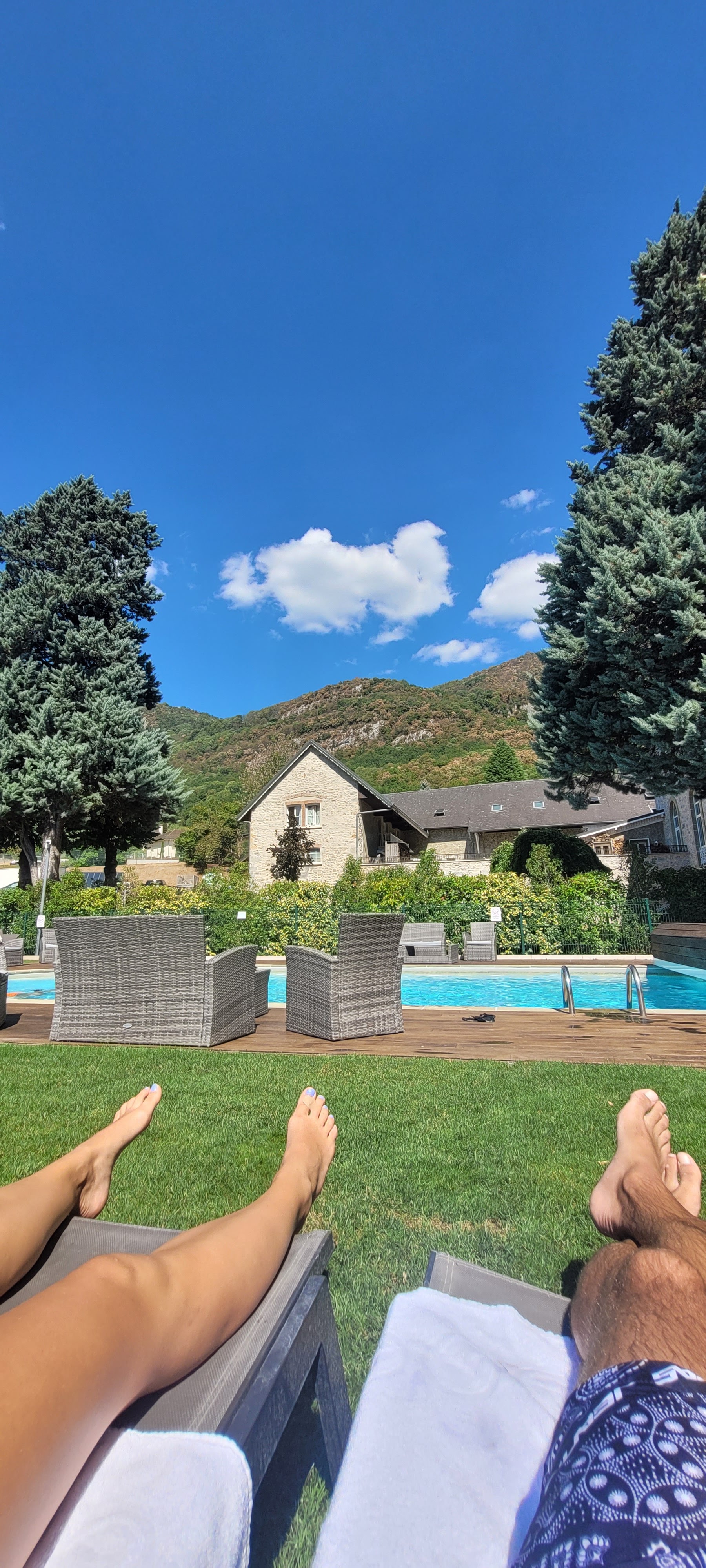 Très bon séjour. On a profité du magnifique parc et du restaurant. Petit regret pour la piscine qui n'est pas accessible aux non-nageurs. Nous avons pris du vin au verre: un blanc doux, un blanc sec et un vin rouge, les trois servis dans le même verre, dommage!