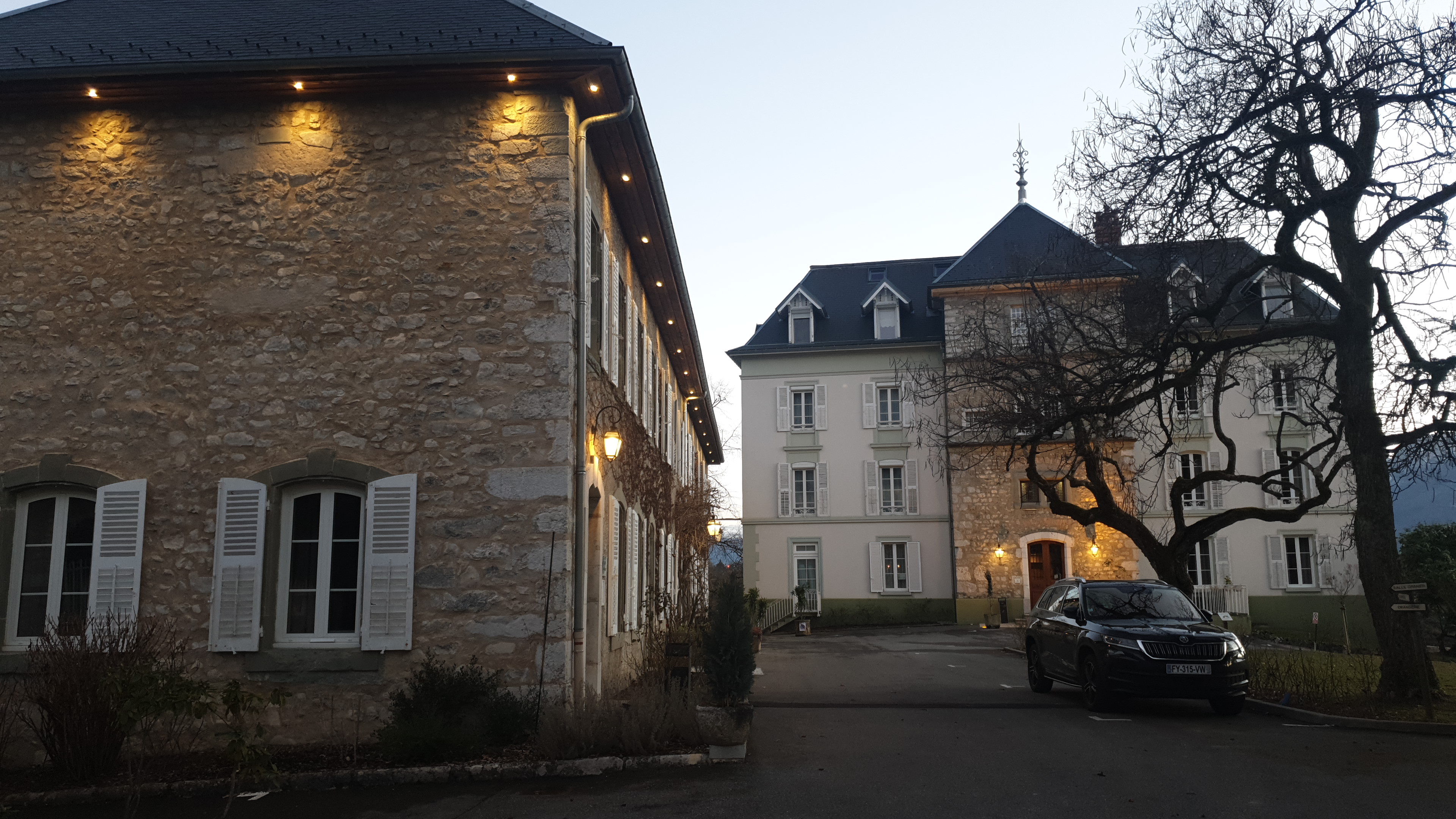 Nous avons réservé une chambre pour continuer la soirée offerte par une box. Cadre très sympathique. La cave est magnifique et la dégustation avec le sommelier a été très instructive ! Le repas ! Excellent ! D une finesse ! J ai encore le goût du homard dans la bouche ! Des quantités et qualités gastro mais avec la mise en bouche, l avant dessert, on sort sans faim du repas ! Une bonne balade nocturne vers les termes de Challes les eaux en contrebas est bienvenue ! La chambre est bien, lit kingsize trop grand j ai cherché ma chérie pendant la nuit ! Nuit très calme comme le site. Franchement je recommande ! Seul bémol. A 158 euros la nuit le petit déjeuner pourrait être compris. Mais une très belle expérience ! Merci