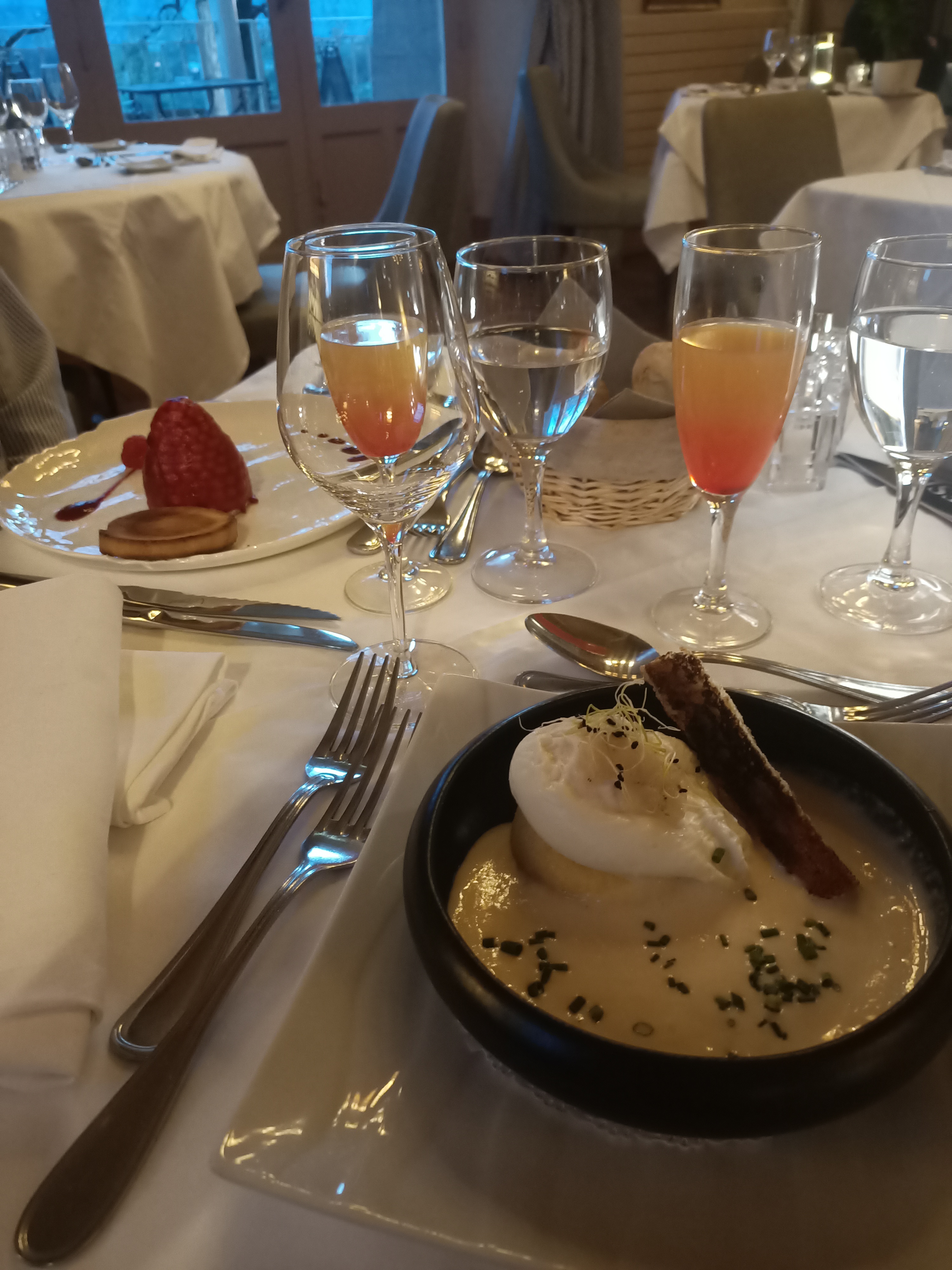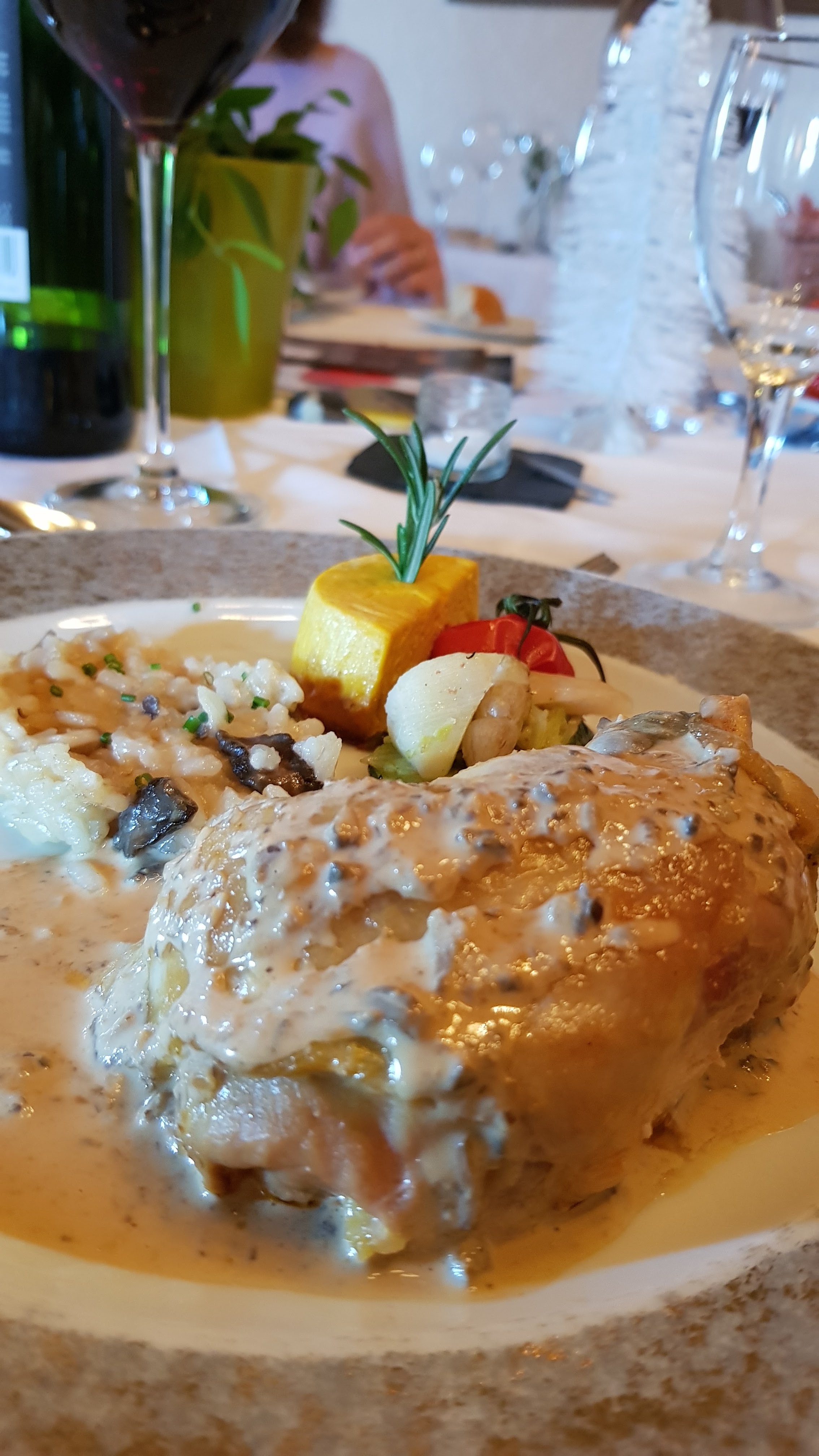 Très beau site avec une magnifique salle dédiée au restaurant habituel, avec une immense cheminé. Accueil aimable, service trop rapide pour un samedi soir, certains plats ne sont pas à la hauteur d'un Restaurant gastronomique. Assez déçus pour ce choix qui nous avez fait initialement rêver.