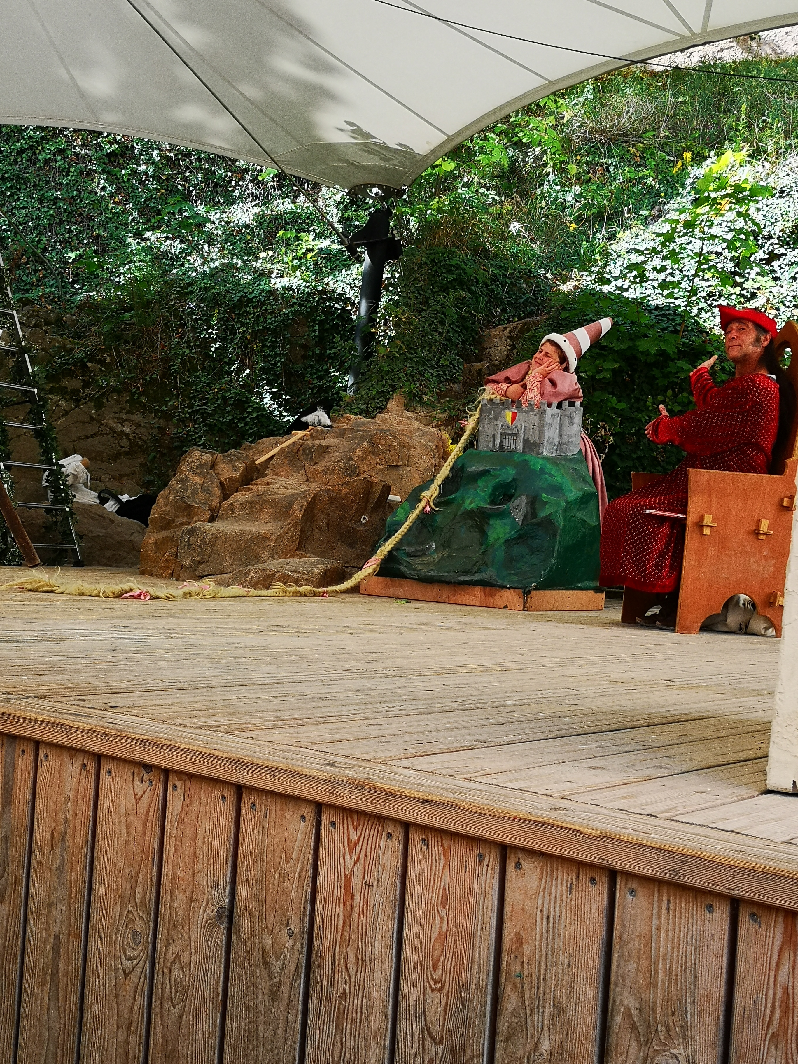 Vue superbe depuis le château. Equipe de comédiens dynamique, motivée et hyper ludique. De 6 à 60 ans, tout le monde a adoré. Spectacle au décors simple mais bon jeu d'acteurs, répliques qui font mouche et qui ont plusieurs niveaux de lecture de façon à plaire à toutes les tranches d'âge. Ne pas manquer les exposés pour apprendre la culture indienne et la conquête de l'ouest qui étaient geniales!