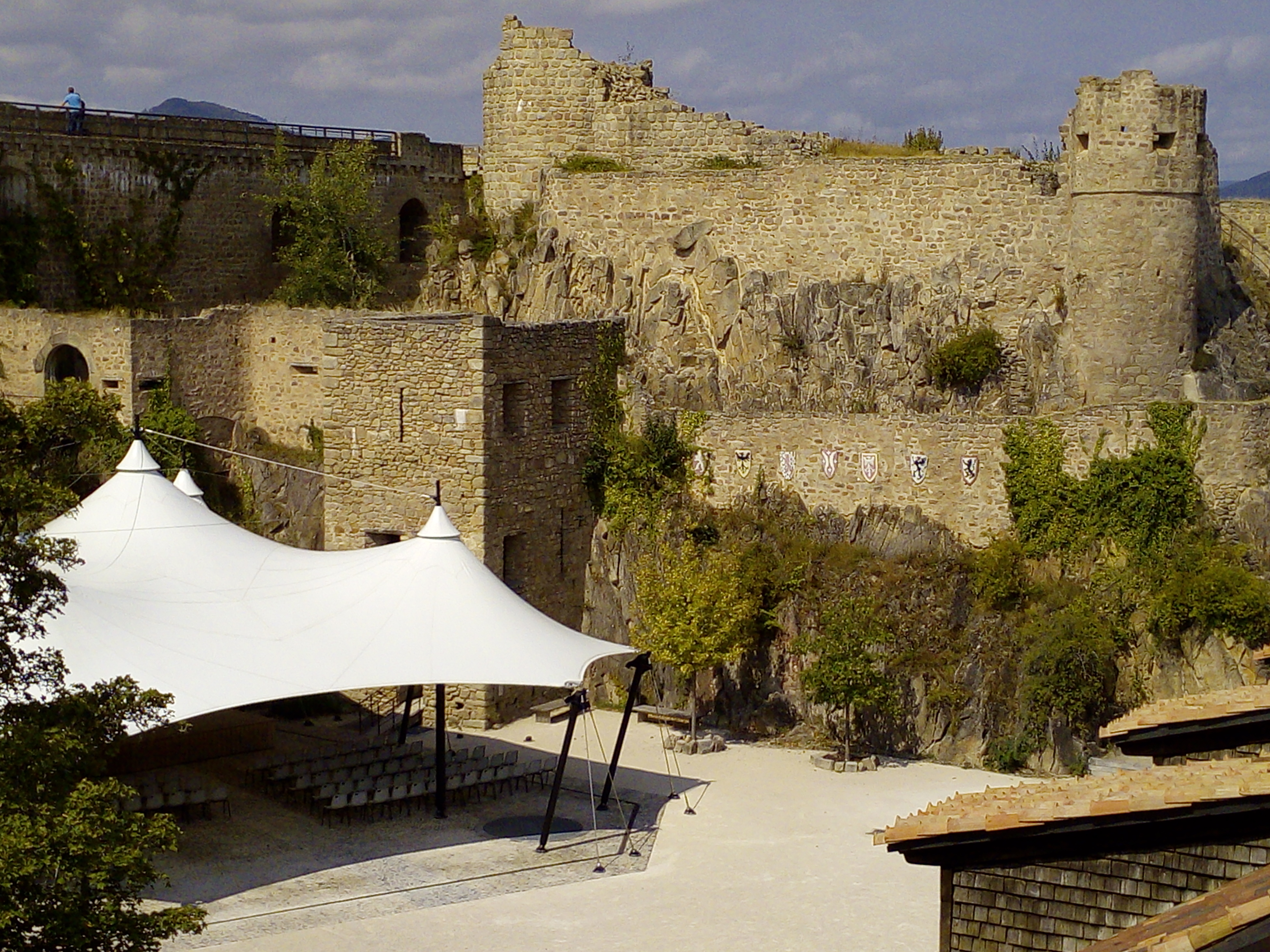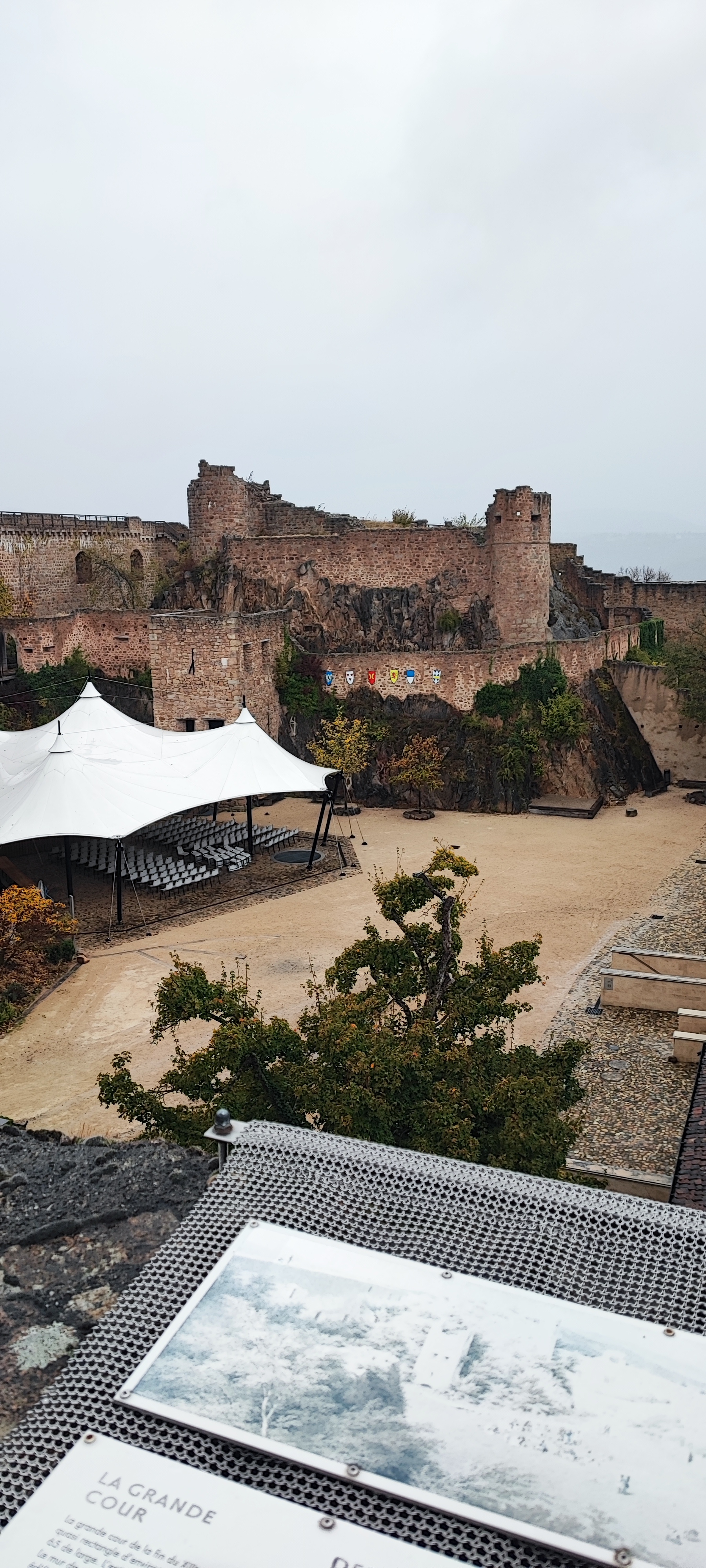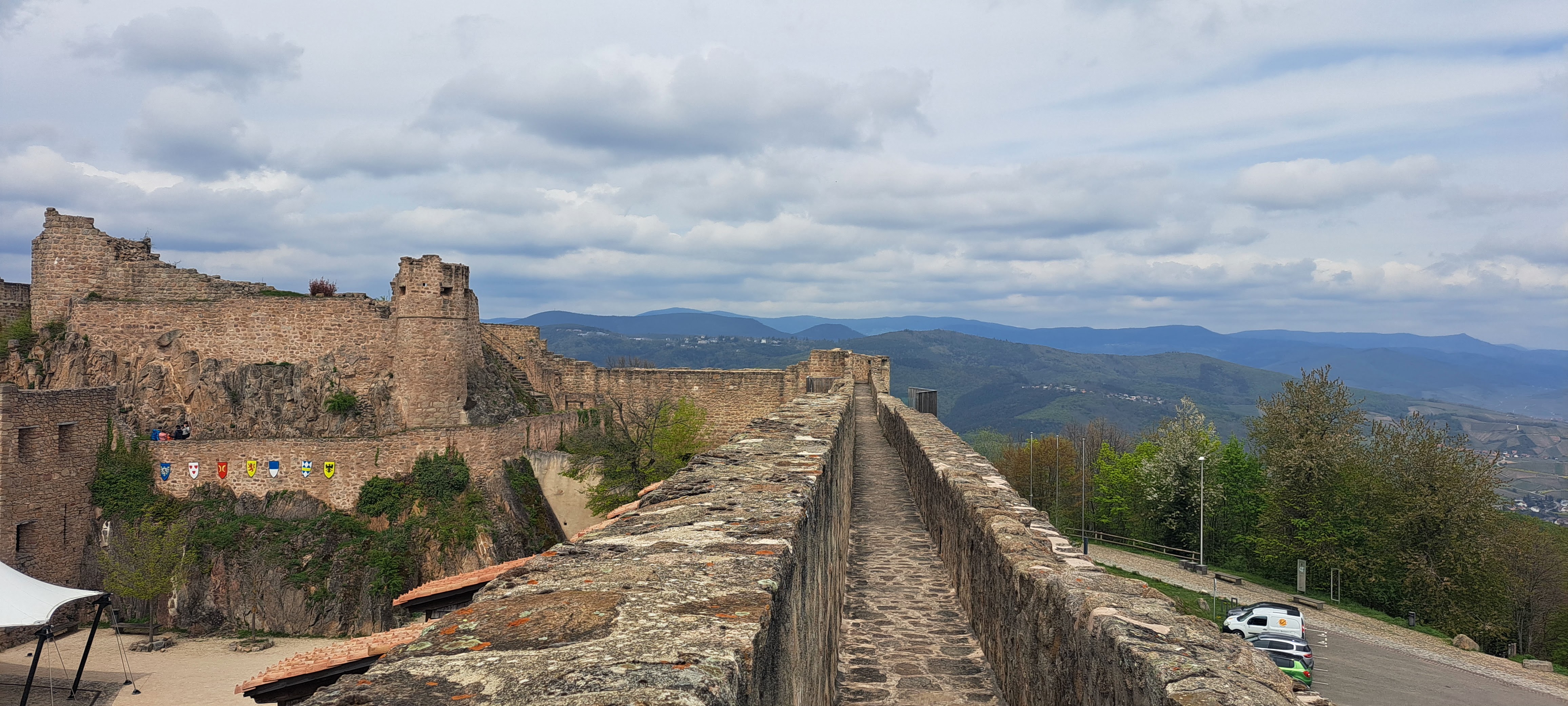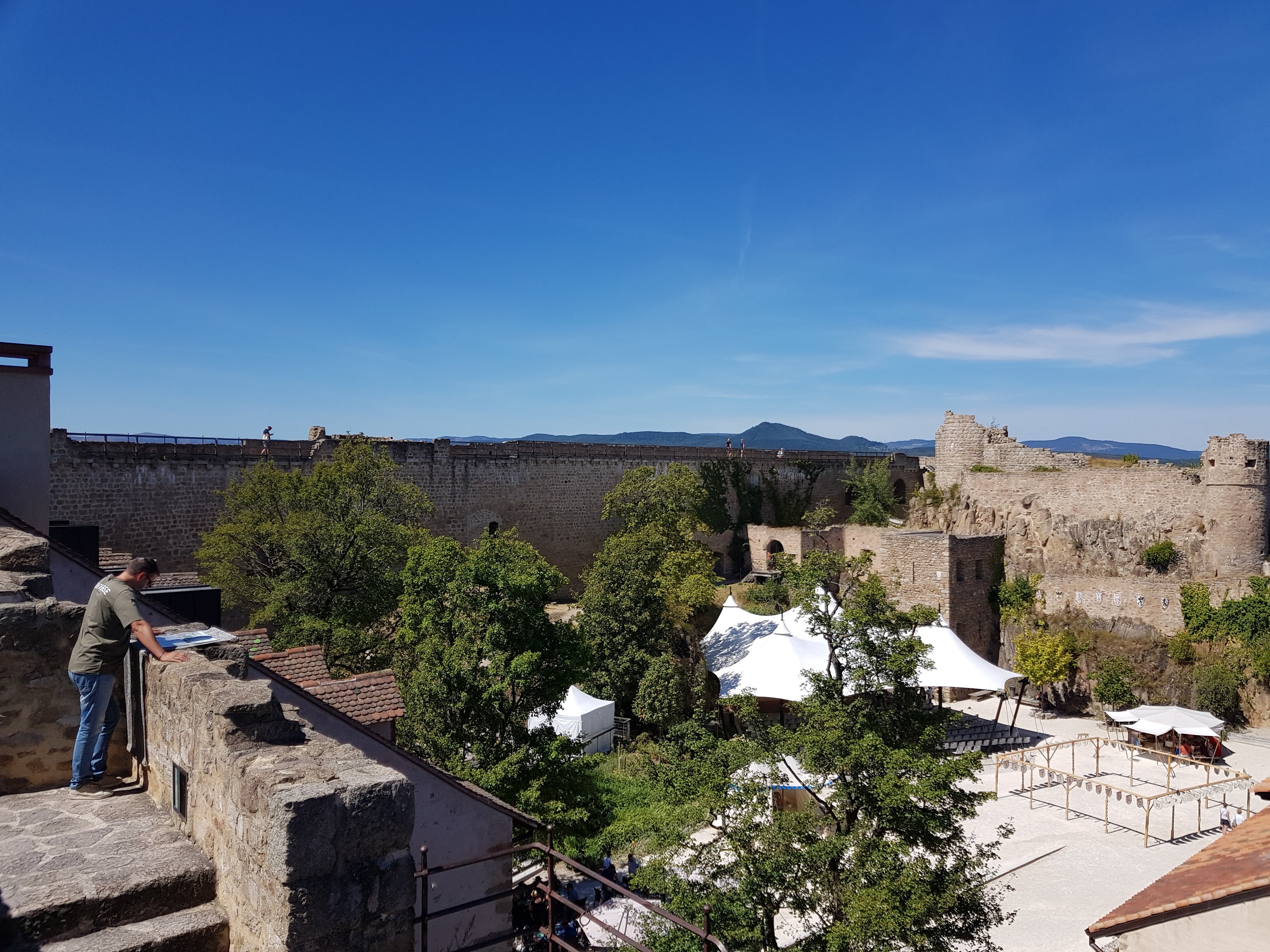 Joli panorama à 360 degrés depuis le château. Un bon moment grâce aux amis qui nous ont fait découvrir ce lieu . Il y a possibilité de se restaurer sur place dans la cour du château en saison. Ils ont un très beau chapiteau pour les spectacles.