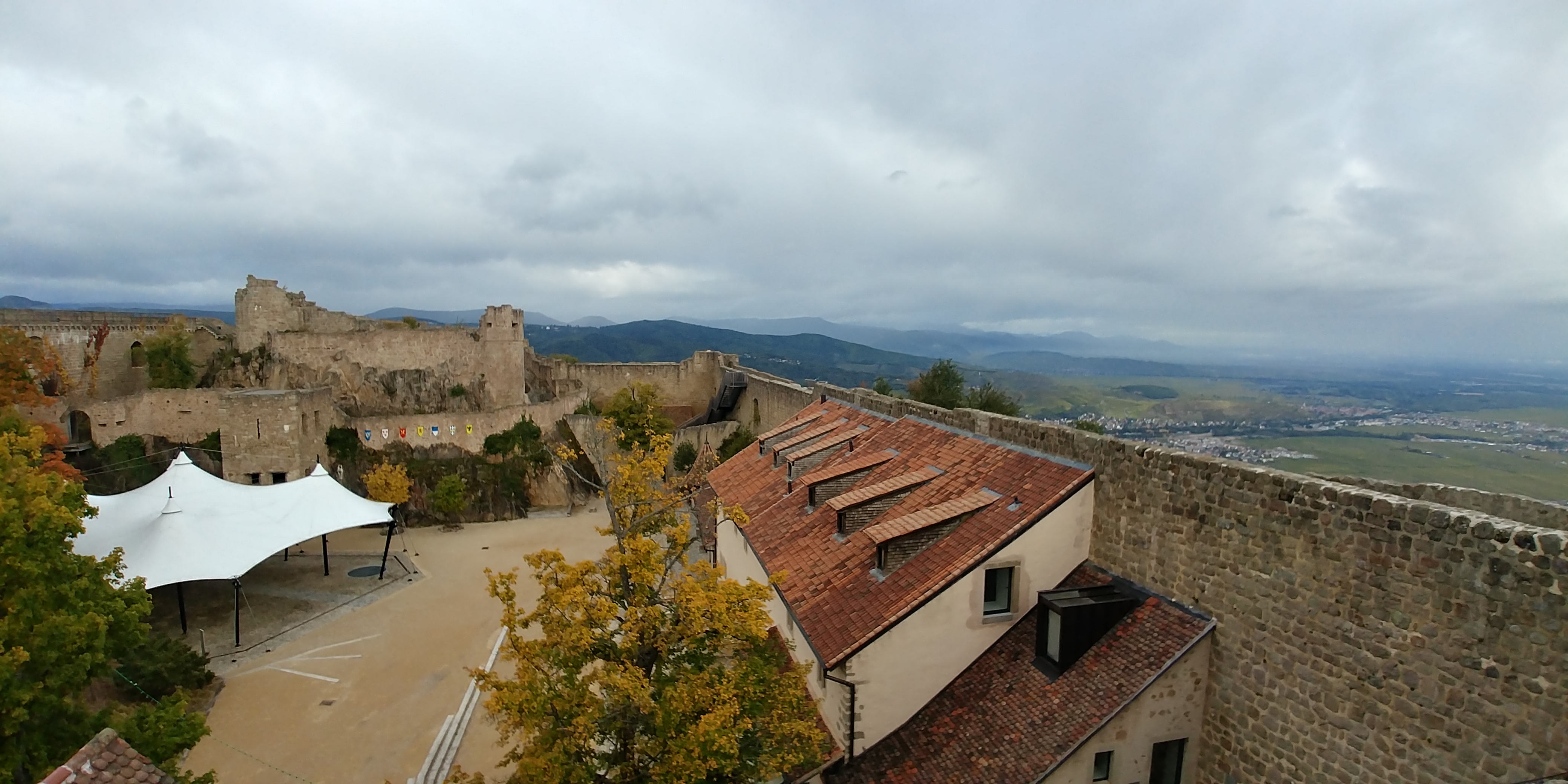 Très beau point de vue à 360°, plaine d'Alsace, la fôret noire, les Vosges ... Le château en lui même, est sympa mais sans plus, il n'y a pas grand chose à visiter, mais avec une visite guidée, ça permet d'en apprendre plus. Et surtout les animations faîtes sur les lieux sont bien, on a eu droit à un ours et 5 loups ...