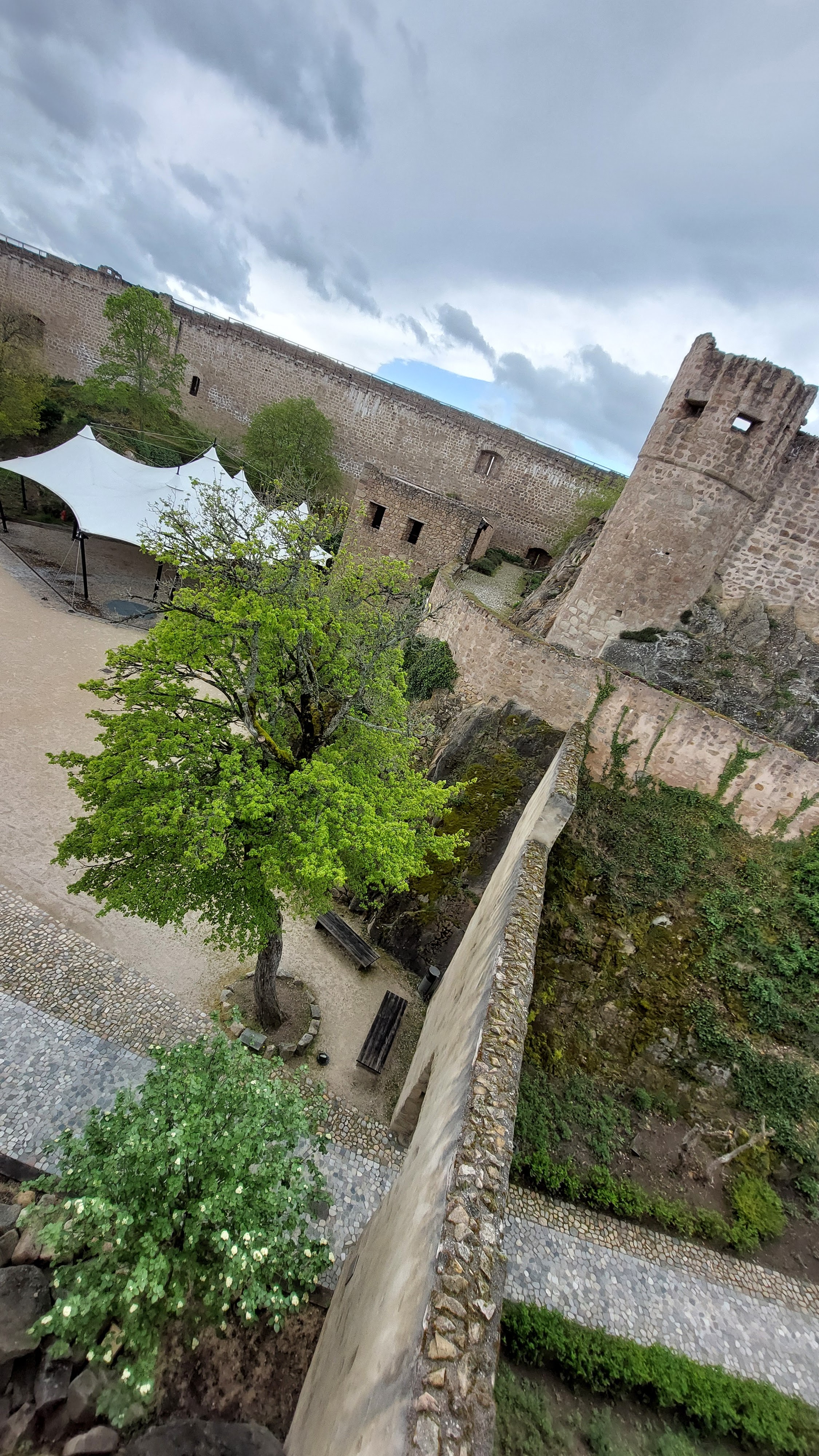 10 avril, il pleut, on se décide qd même à aller au Château! Plus on monte, plus le brouillard est important. On est à 2 doigts de faire marche arrière lorsqu'on arrive sur le dernier parking (il reste encore une belle pente à monter avant d'arriver au château). Là, l'accueil est chaleureux. Pr le tour des remparts, on n'a pas vu grand-chose ms par une belle journée, la vue doit y être magnifique! Ensuite deux charmants guides nous ont apporté pas mal de précision sur le site et la vie du site! On reviendra!