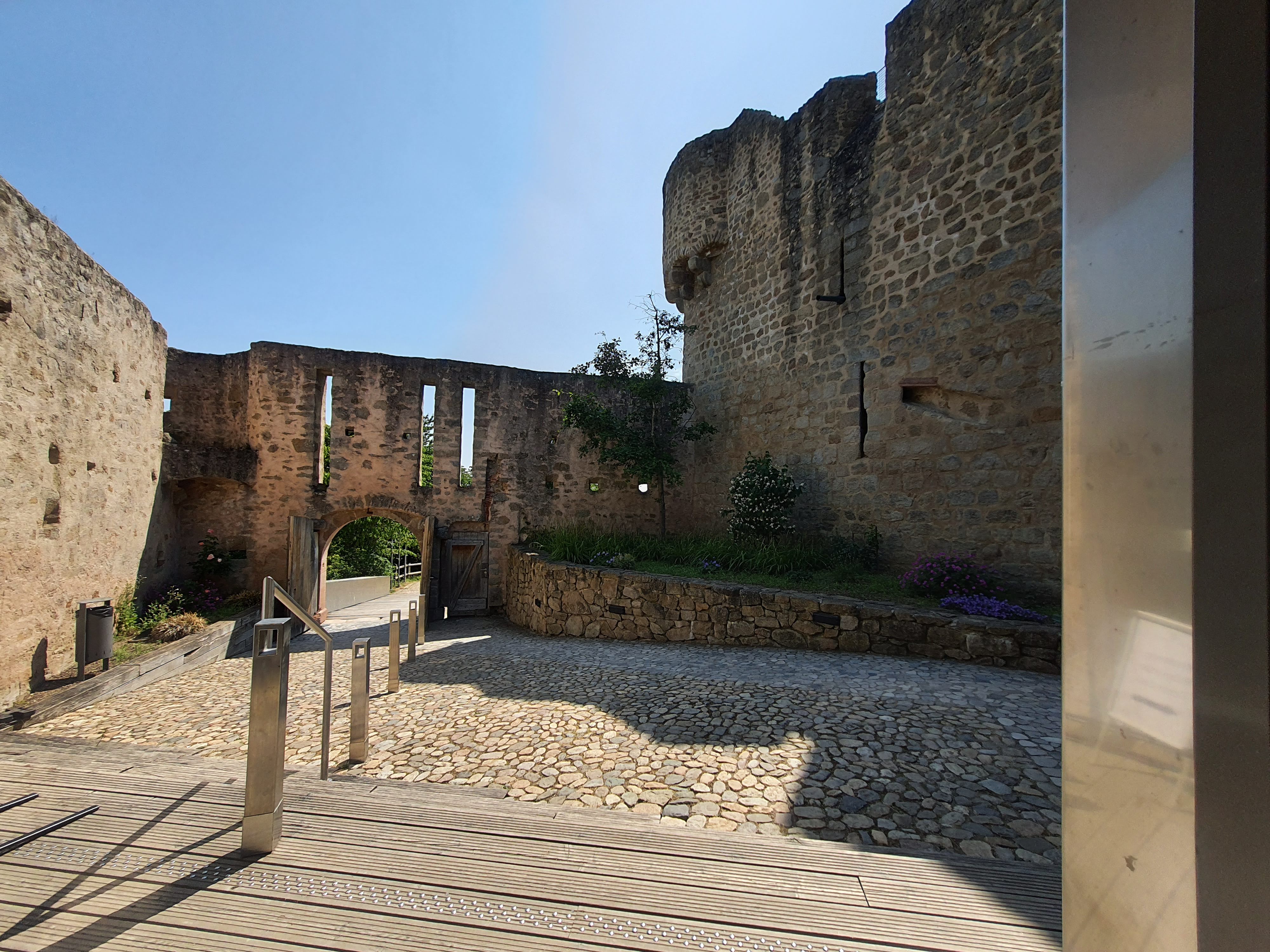 Très beau château, même s il ne reste principalement que le chemin de ronde et la base du château lui même. Les lieux sont très bien aménagés, offrant de multiples possibilités : expositions, salle de jeux, ateliers divers, brasserie... un espace extérieur est dédié aux expositions temporaires ou manifestations ponctuelles. C est très propre. Il faut être plutôt en bonne forme physique pour accéder au chemin de ronde, attention aux rambardes , pas très sécurisées (tenir les jeunes enfants par la main). Je recommande, surtout qu on peut faire de nombreuses randonnées, autour du château, bien balisées.