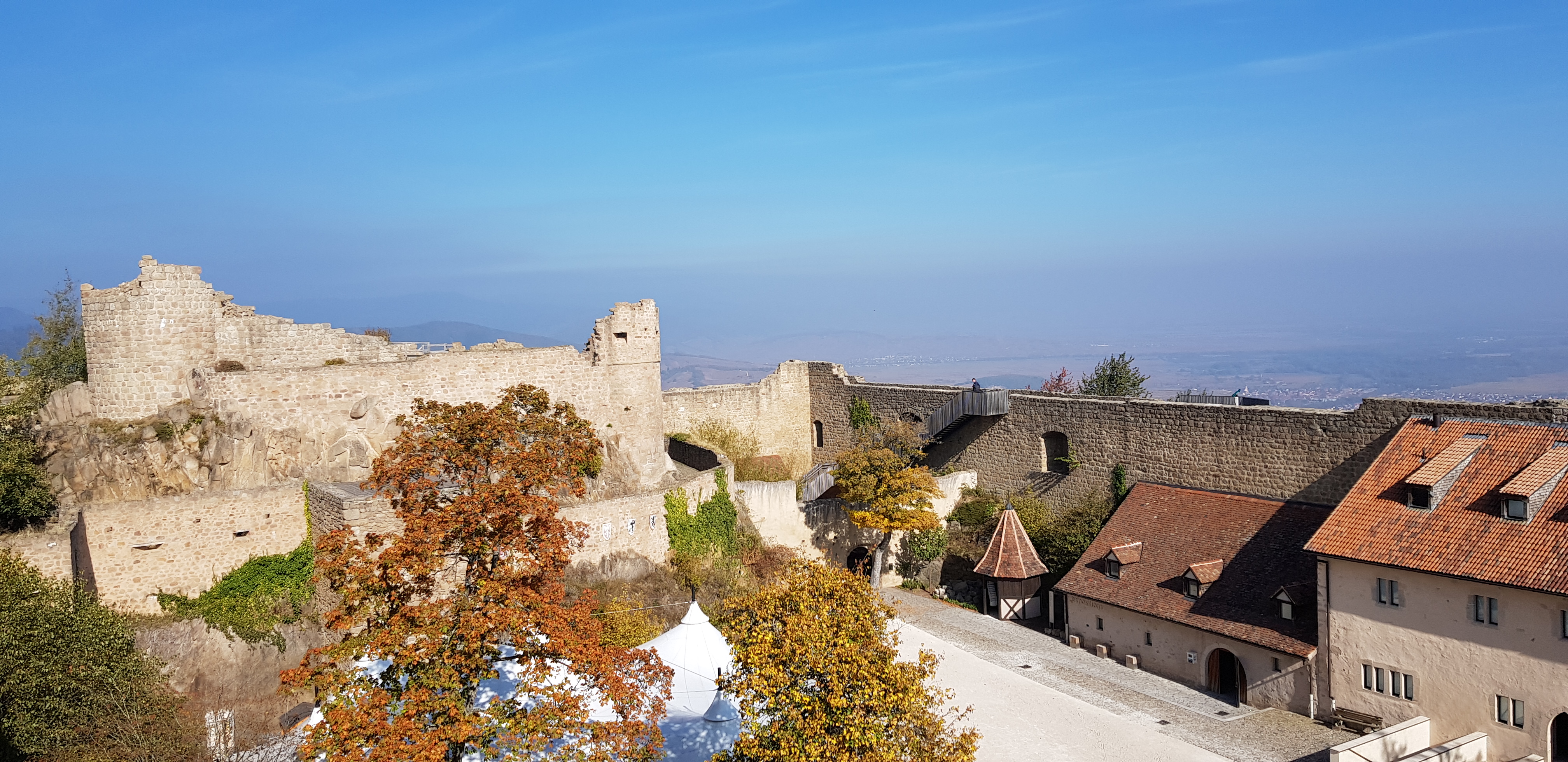 Petit château offrant une superbe vue sur la plaine d' alsace, la forêt noir et la Suisse par beau temps. Les guides sont tops et passionnés