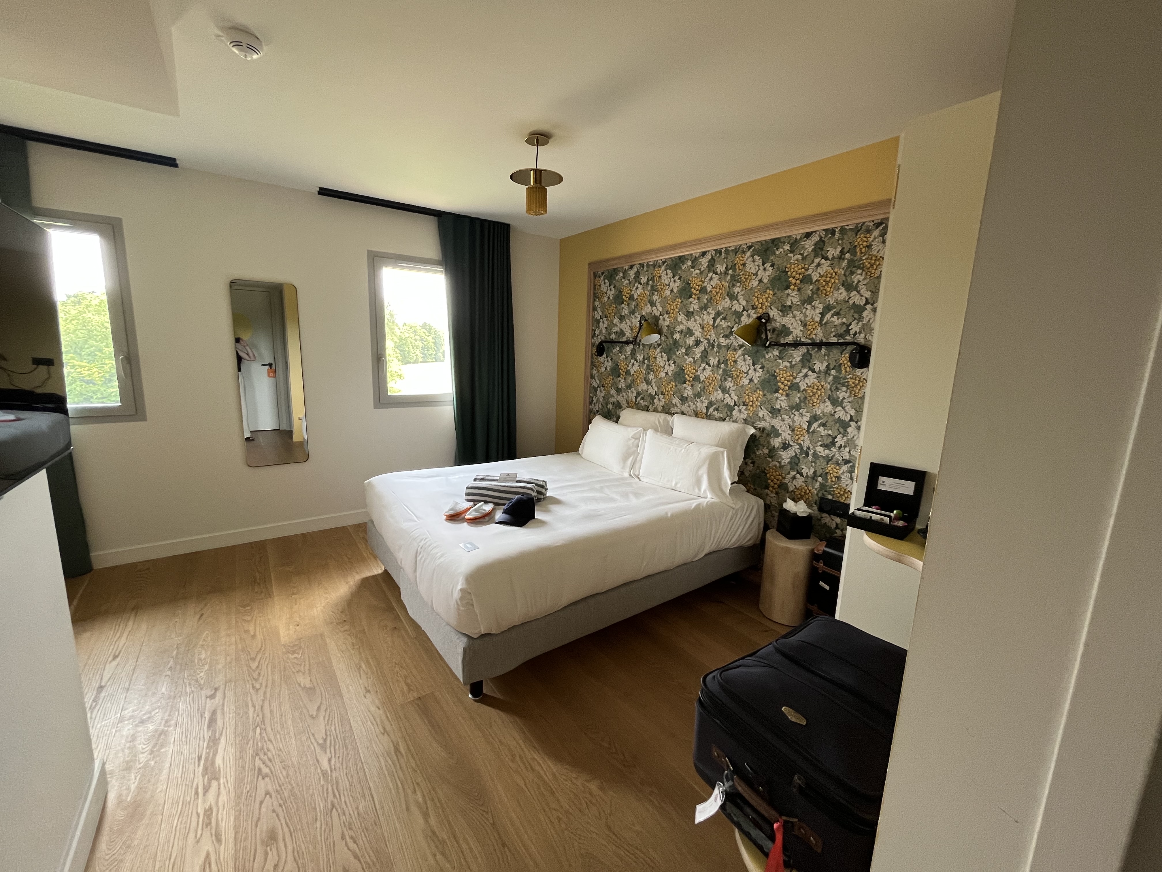 Endroit très calme et magnifique pas trop loin de Bordeaux. Bornes de recharge électriques pour voitures, belle piscine extérieure chauffée et chambres bien aménagées. Le personnel était superbe et très accueillant. Je le recommande vivement pour une courte pause détente. Il ne manquait qu'une étoile car nous y sommes restés un dimanche et un lundi soir, donc aucun restaurant n'était disponible, ce qui signifiait que nous devions aller ailleurs, sinon nous serions probablement restés sur place ! Cependant, nous avons déjeuné le dernier jour et c'était délicieux pour 20 EUR par personne plus les boissons.