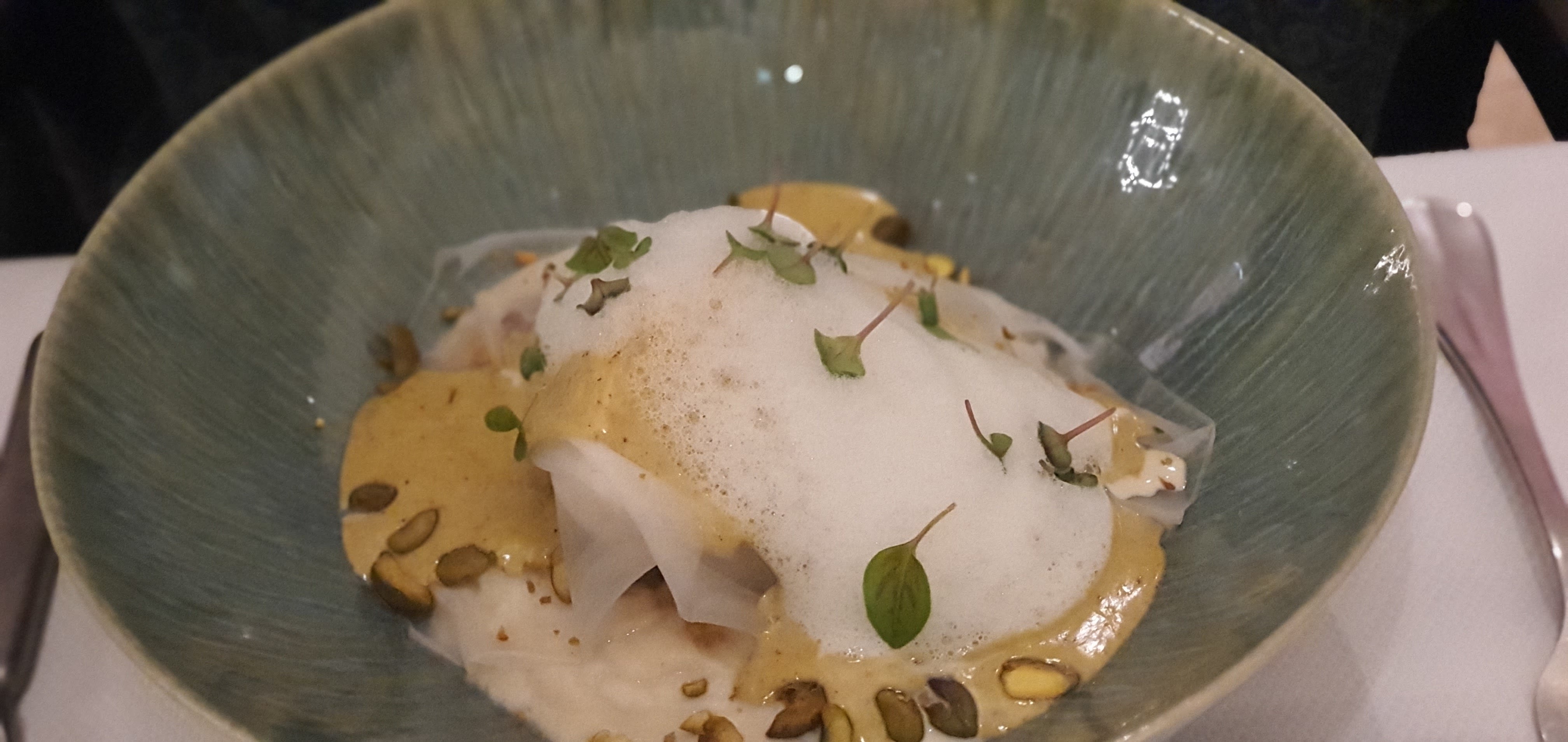 Tout d'abord, le cadre est magnifique. On accede au restaurant en passant par une très belle terrasse. La salle quand à elle, est spacieuse et décorée avec goût. Le service est tout simplement parfait, le personnel est aux petits soins tout en restant discret. Les plats sont excellents, élaborés avec des produits de qualité. Nous avons pris le menu Origines, nous nous sommes régalés. Je ne peux que recommander ce restaurant dans lequel j'ai passé une très bonne soirée et où je reviendrai avec grand plaisir.