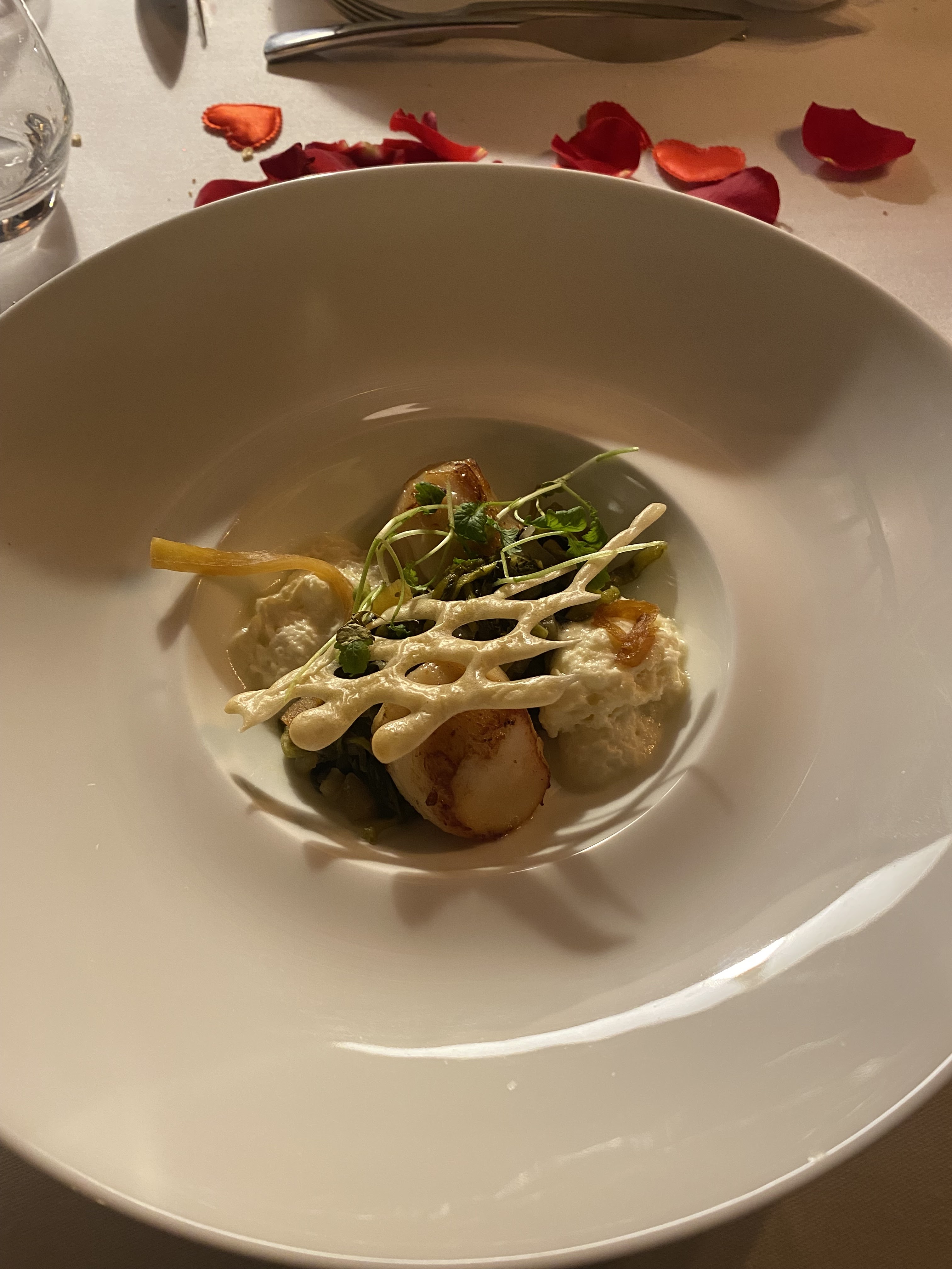 Hotel très bien mais restaurant décevant 2 bougies chauffe plat pour éclairé notre table ...impossible de profiter visuellement des plats..dessert à la truffe étrange.