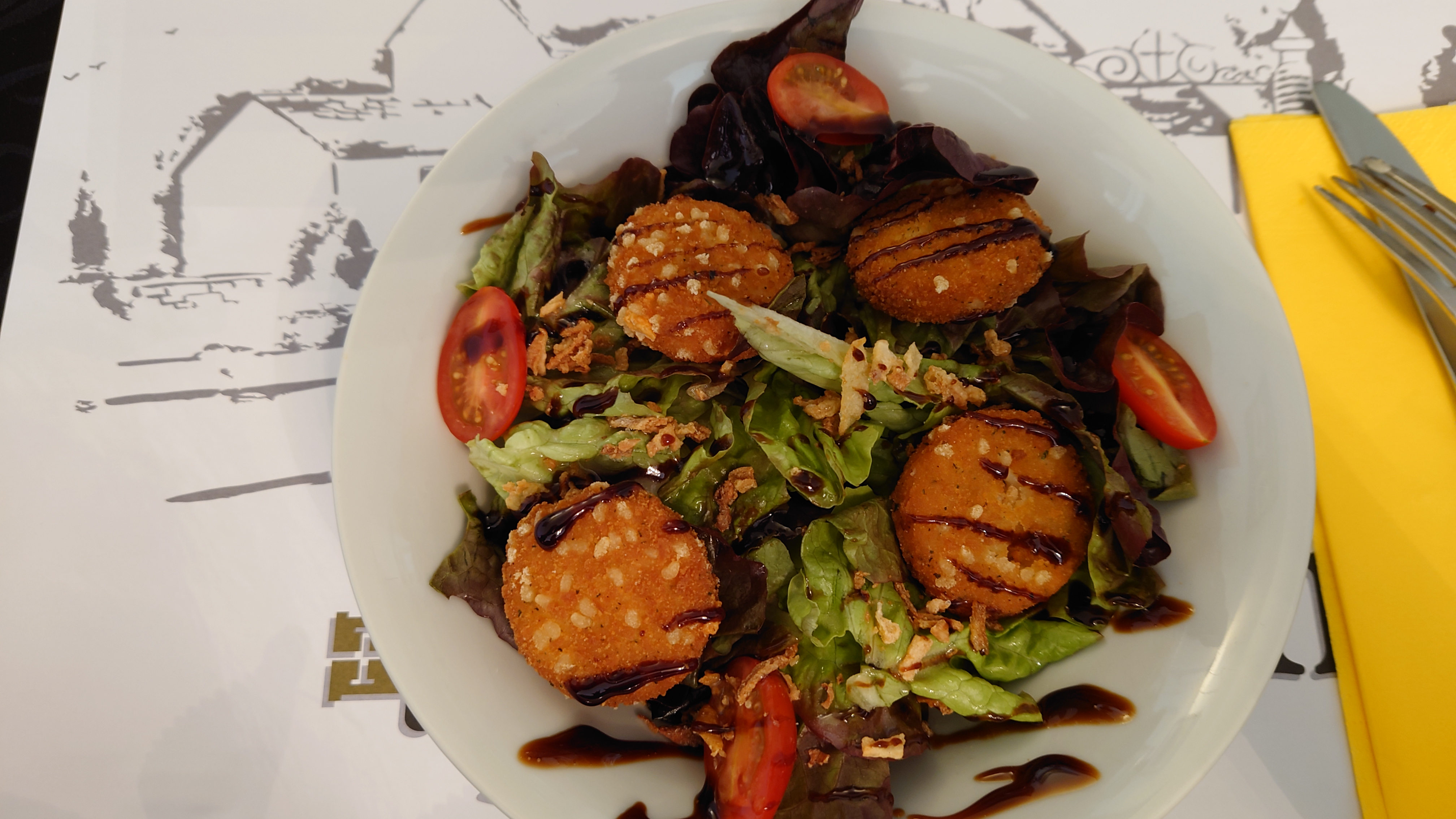 Repas très commun pris dans une salle où il ne faisait pas plus de 17/18 degrés, heureusement que j'avais un plaid dans la voiture pour me couvrir