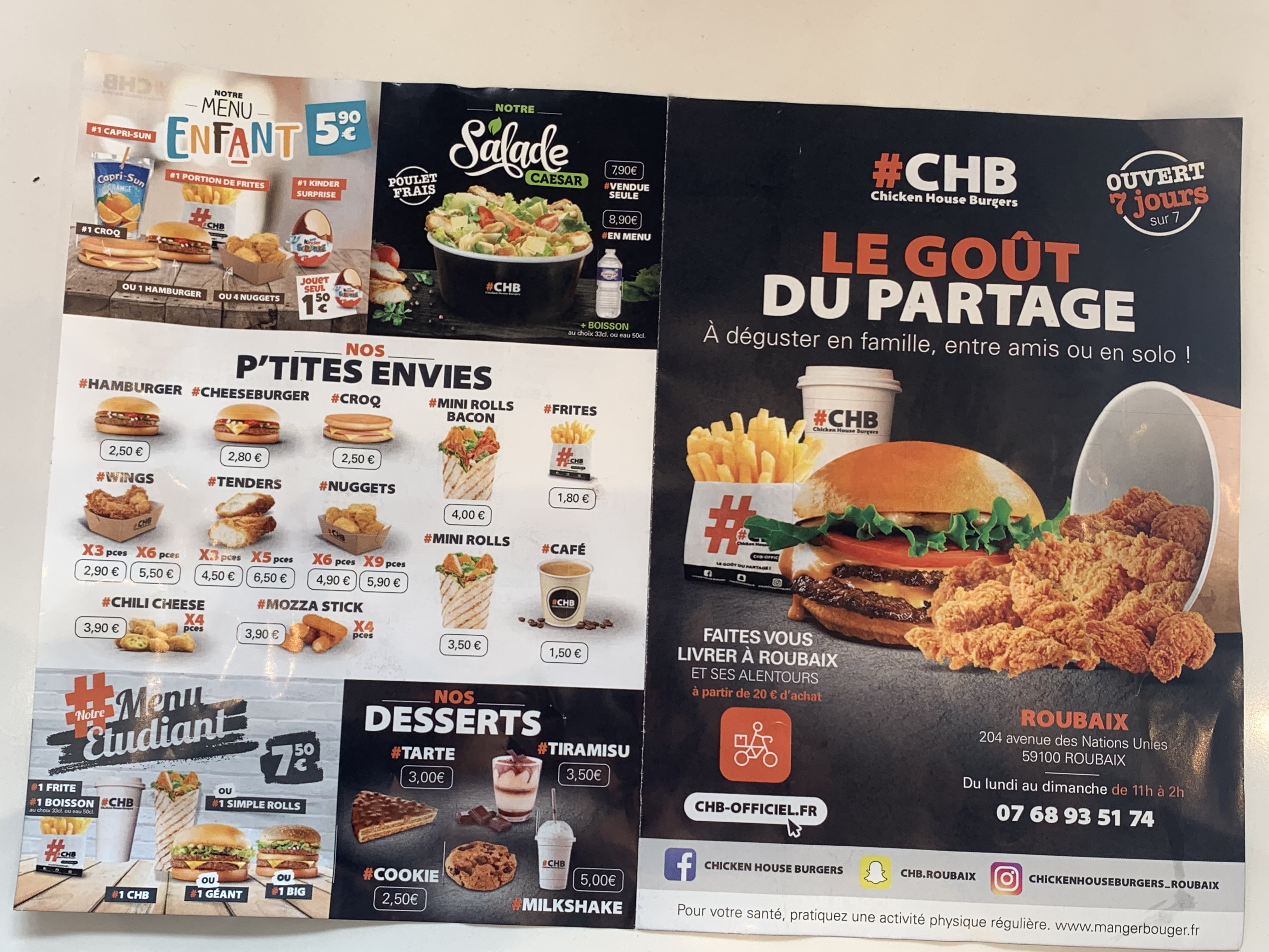 Plusieurs fois que je mange au CHB et je trouve que c’est le meilleur snack de Roubaix ! Lieux très propres, personnel très respectueux et souriant. Je recommande !