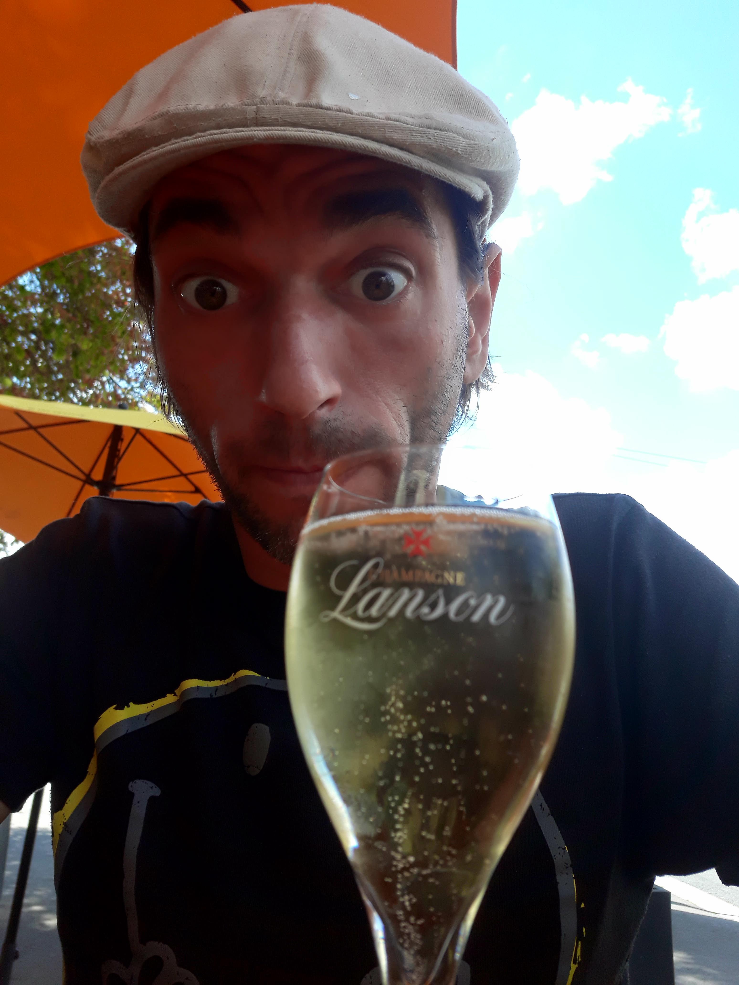 Voyageant seul sac au dos et parcourant la France en stop, je ne pouvais pas quitter Reims sans prendre une coupe de champagne!! Installé seul en terrasse il a fallut attendre près de 10minutes pour qu' un serveur s occupe de moi... Je me suis dis c est mal barré pour la note Mais... quand le serveur est arrivé avec son grand sourire et son accent argentin... il m a premièrement remercié d avoir attendu et ensuite c est excusé au moins 3 fois pour l attente car je suis arrivé en plein coup de feu!! Et pour cause le restaurant était remplis!! Aujourd'hui je regrette juste de ne pas avoir mangé là!! Les assiettes avaient l air copieuse et appétissante!!!
